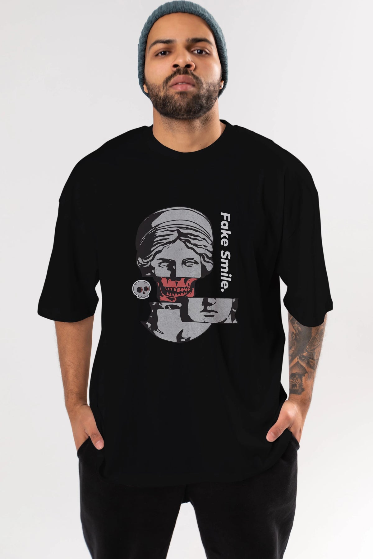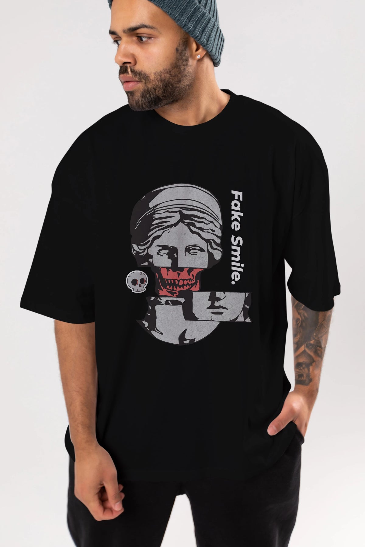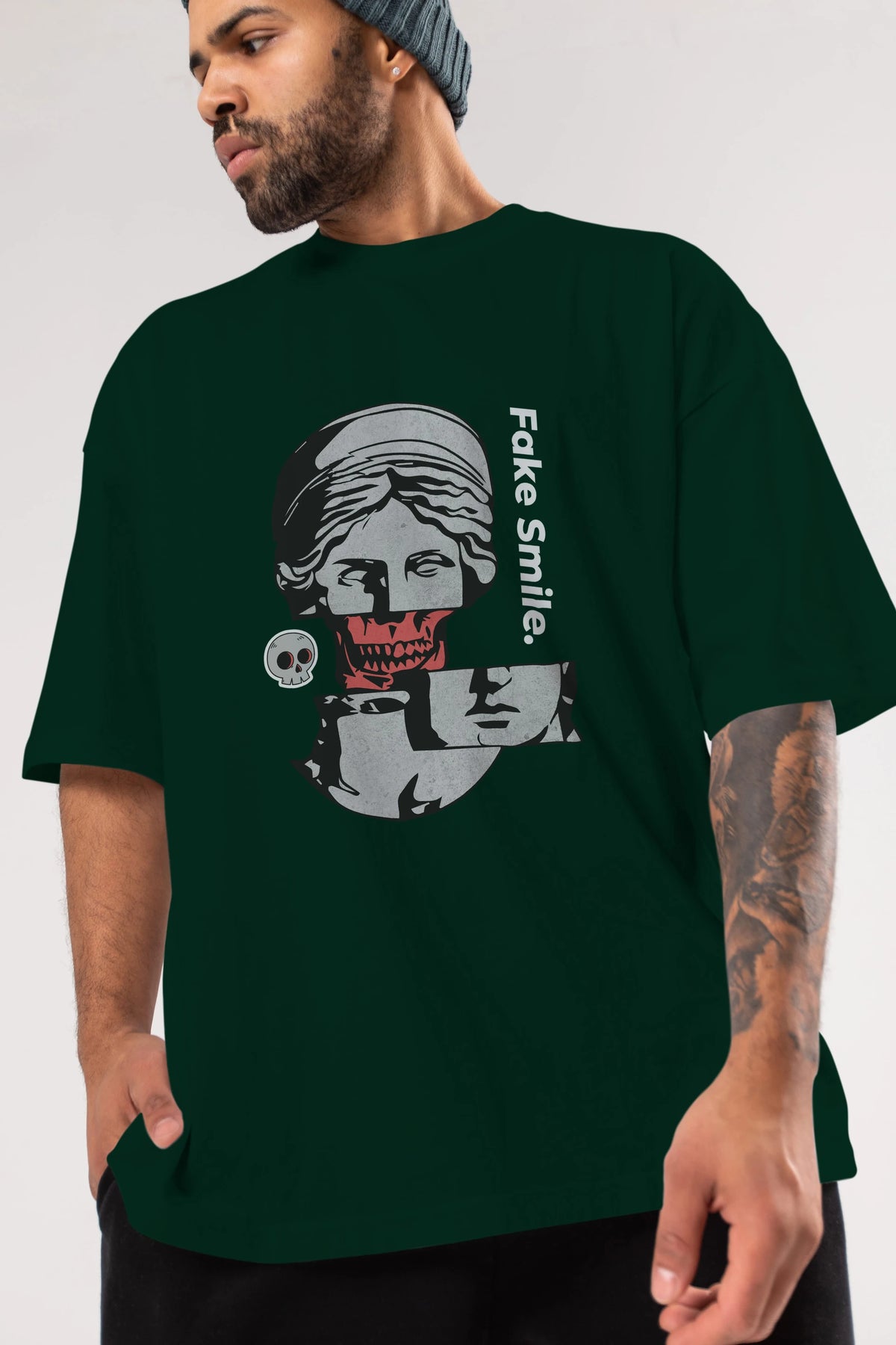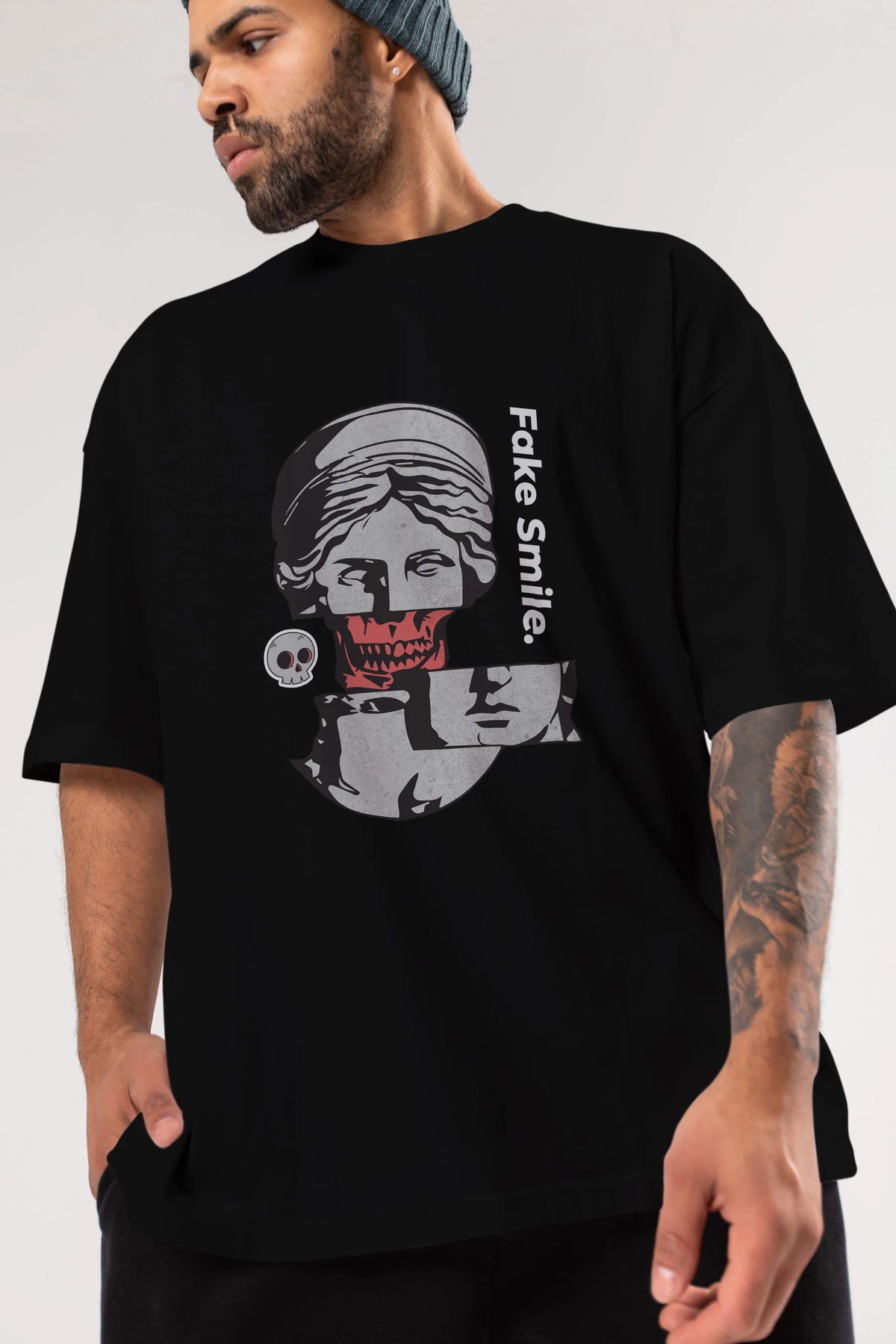 Fake Smile Yazılı Ön Baskılı Oversize t-shirt Erkek Kadın Unisex