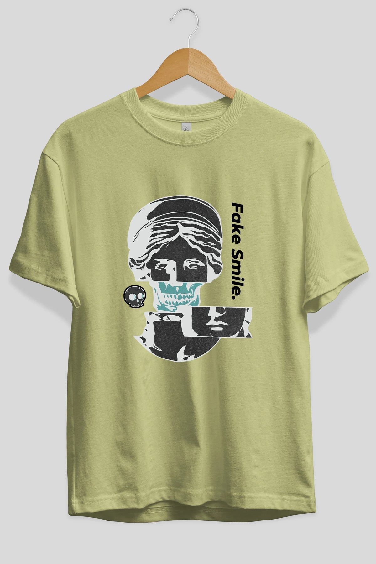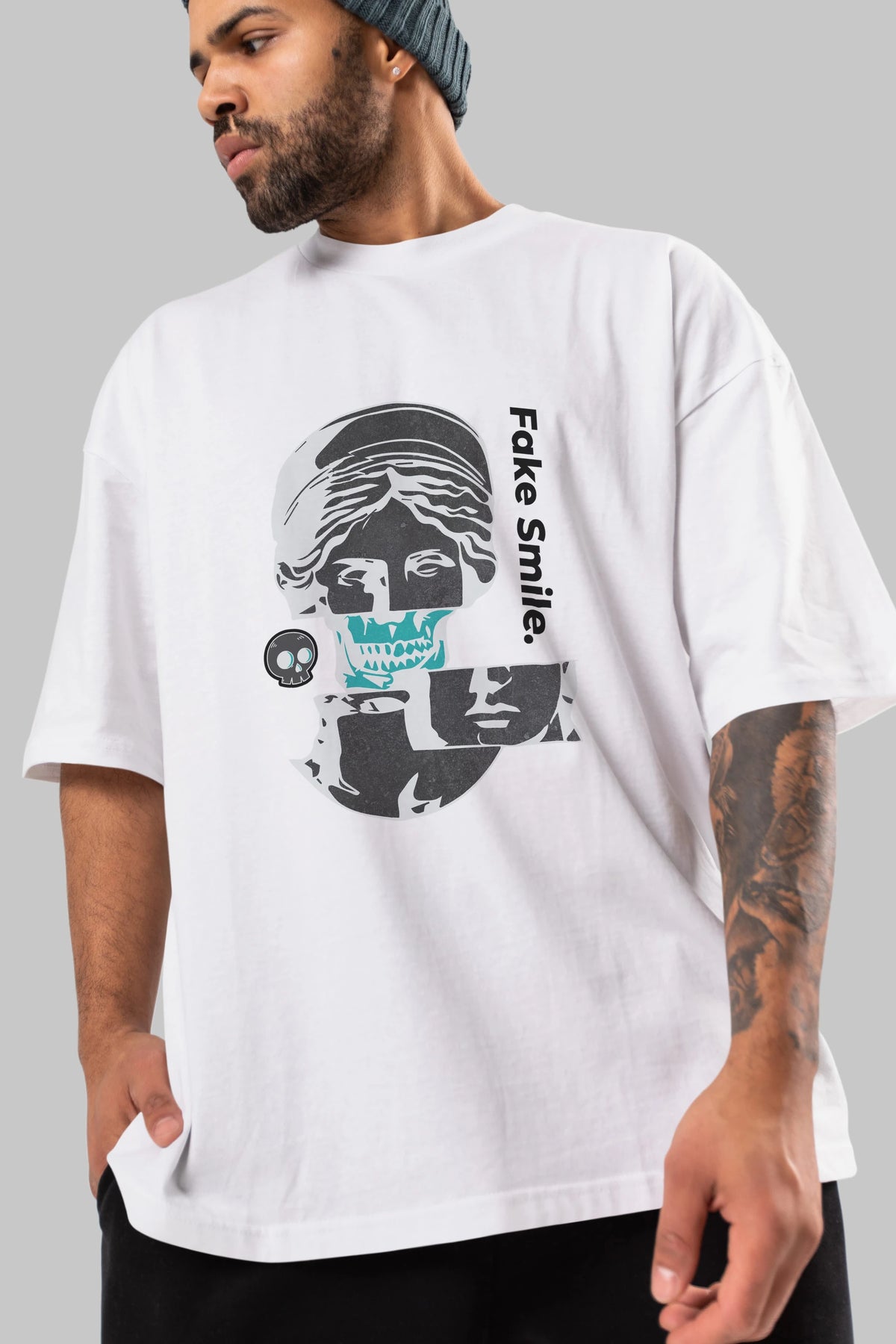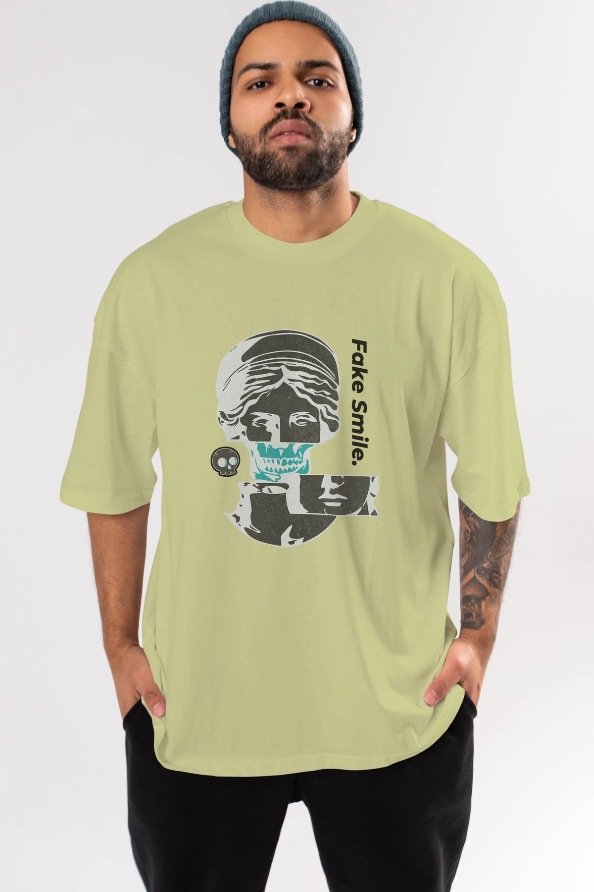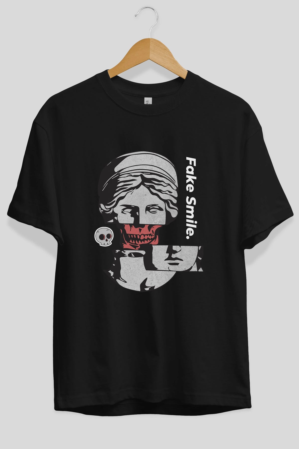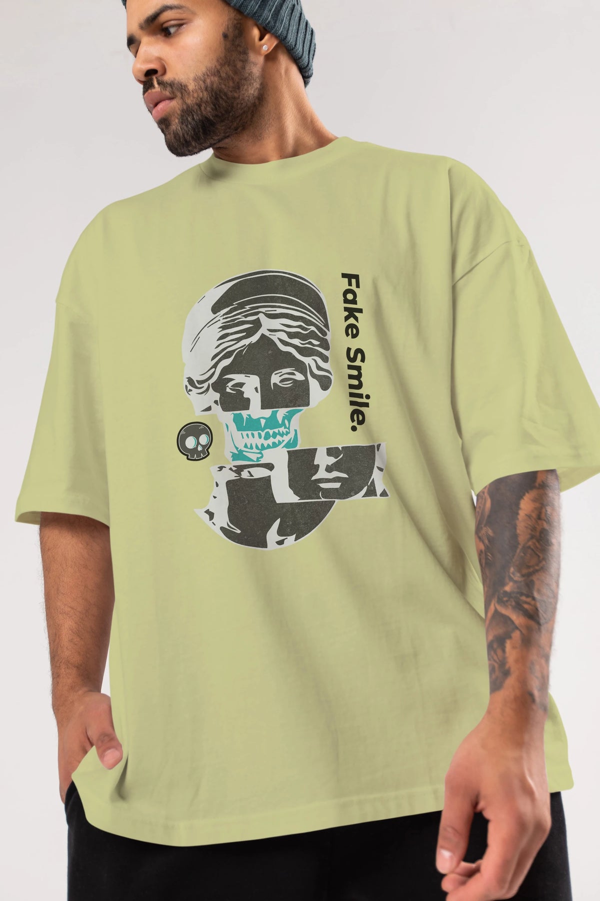 Fake Smile Yazılı Ön Baskılı Oversize t-shirt Erkek Kadın Unisex