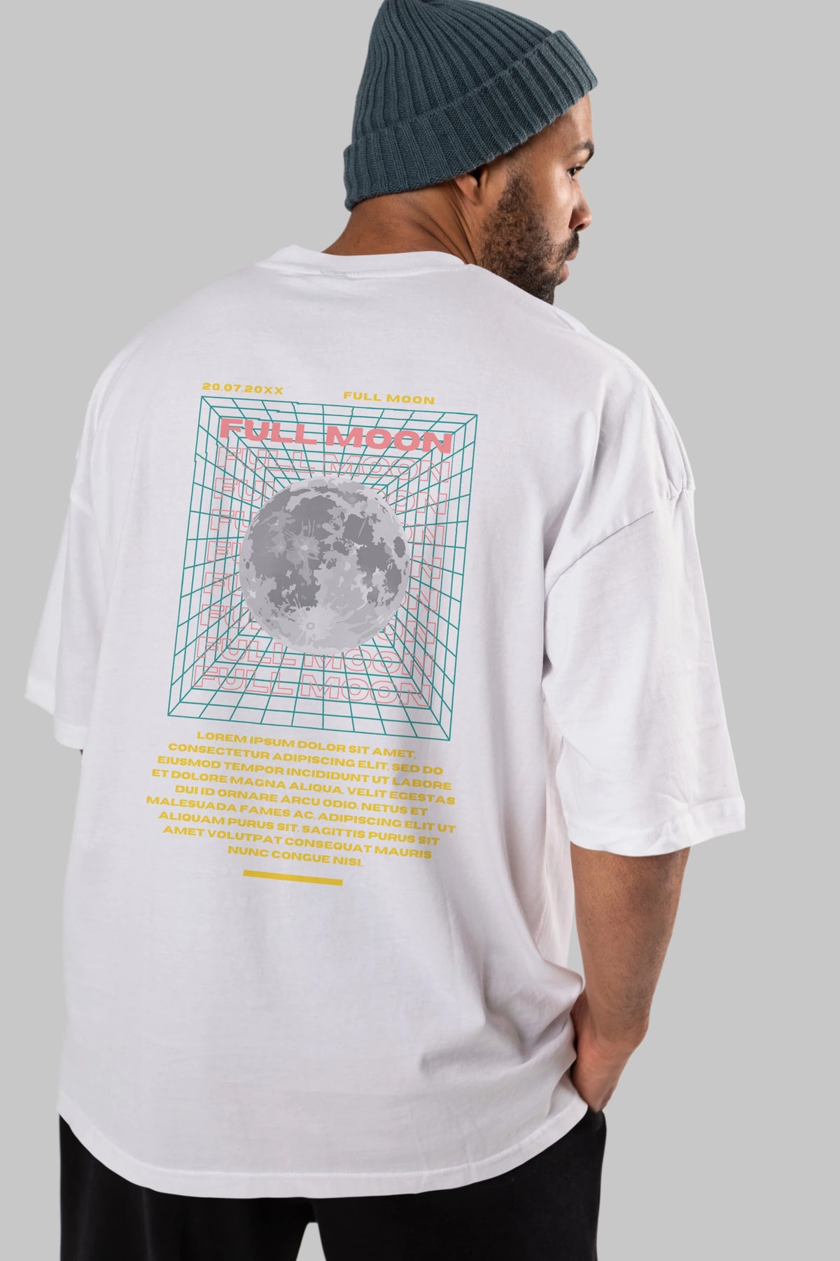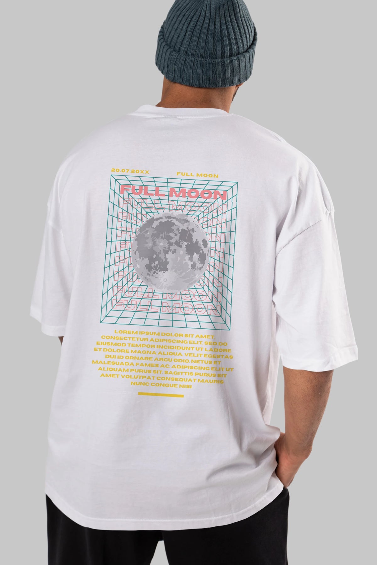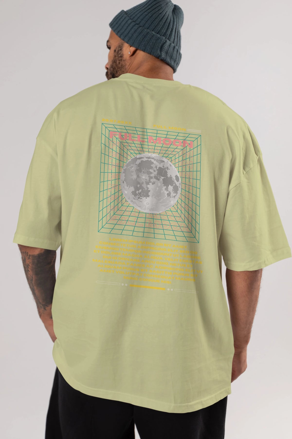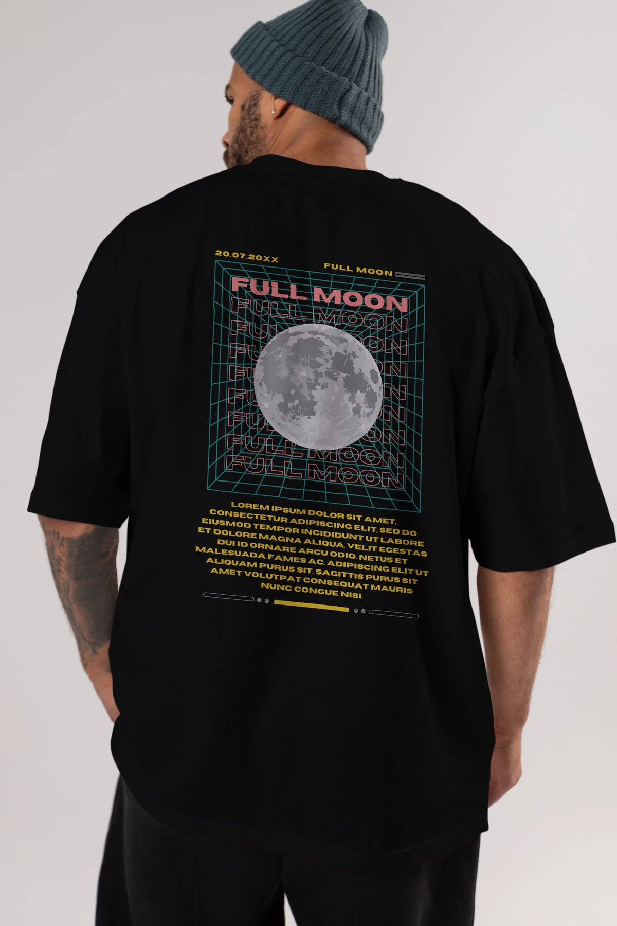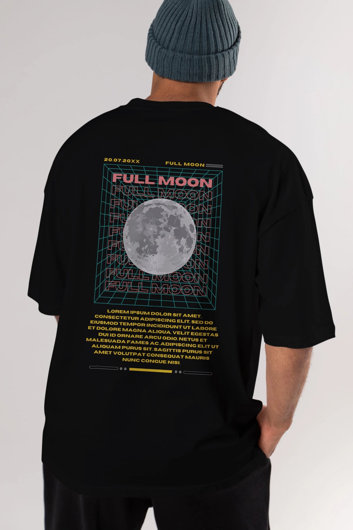 Full Moon Yazılı Arka Baskılı Oversize t-shirt Erkek Kadın Unisex