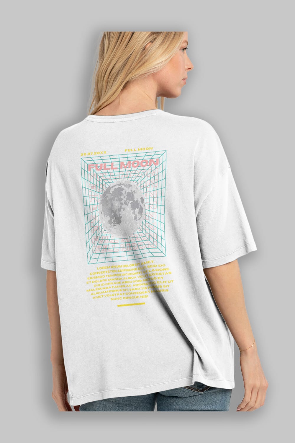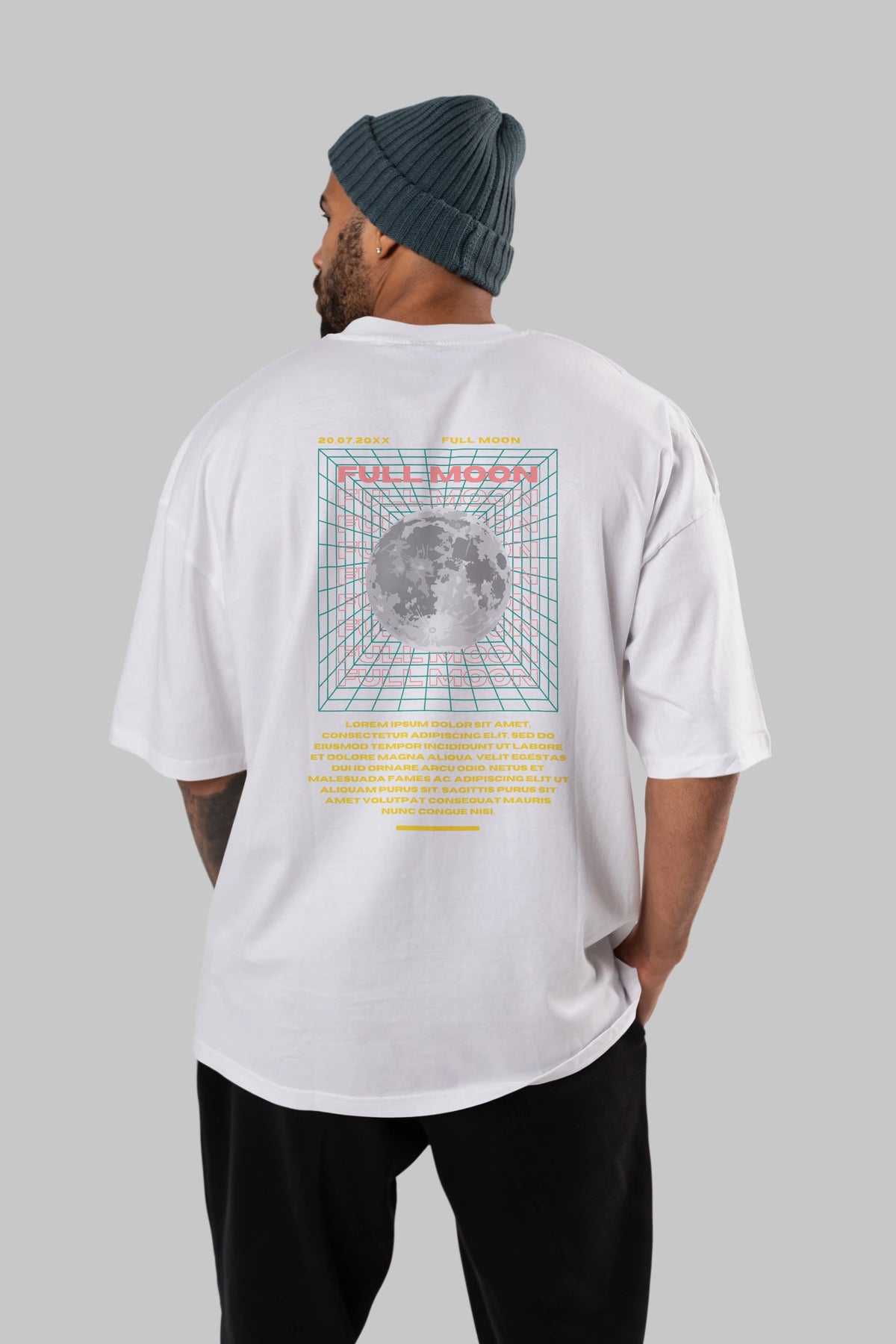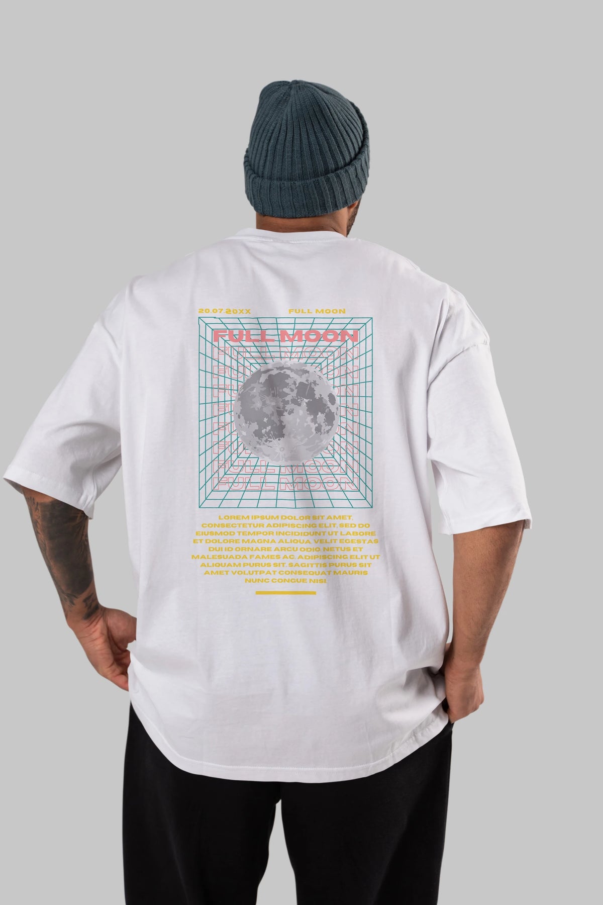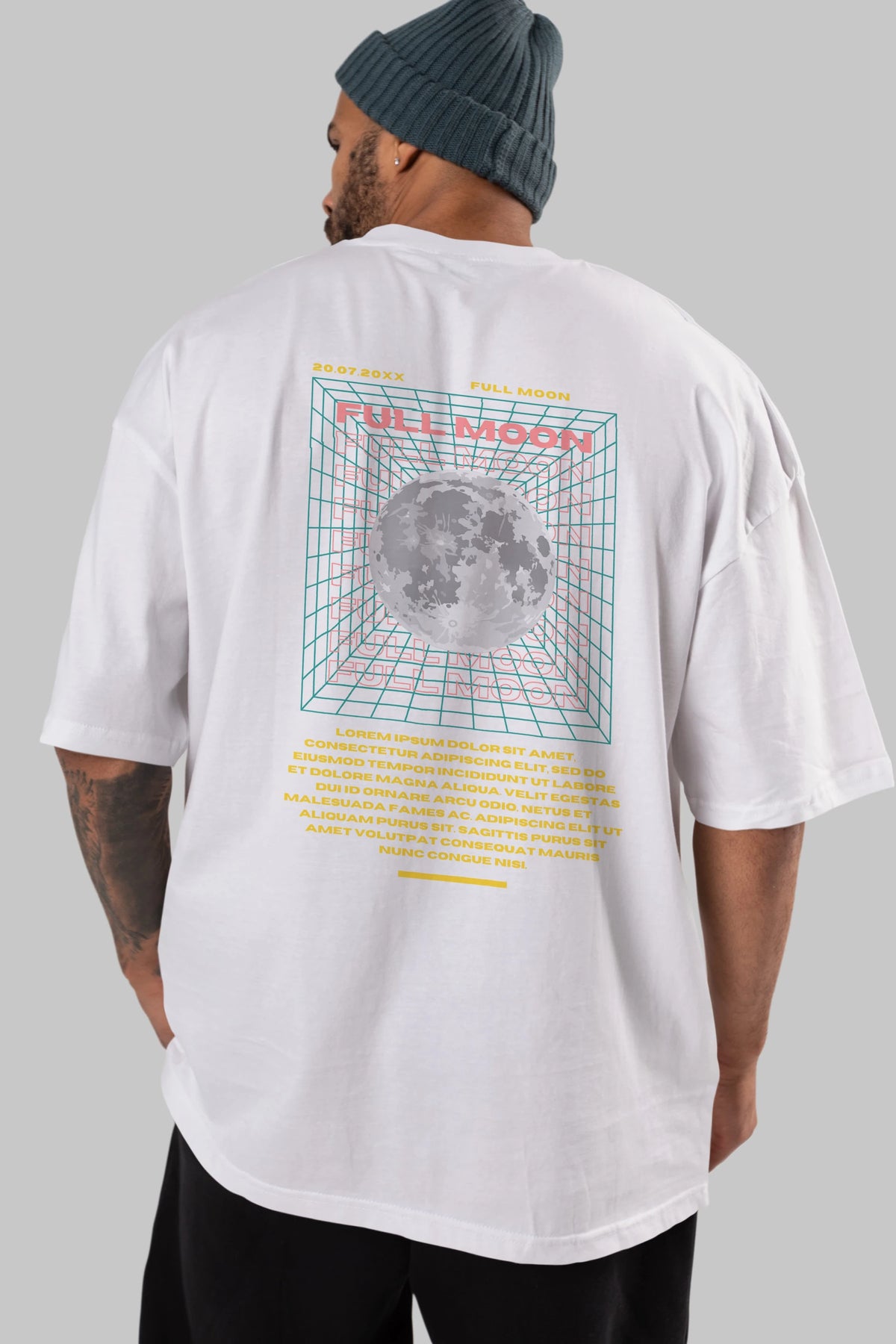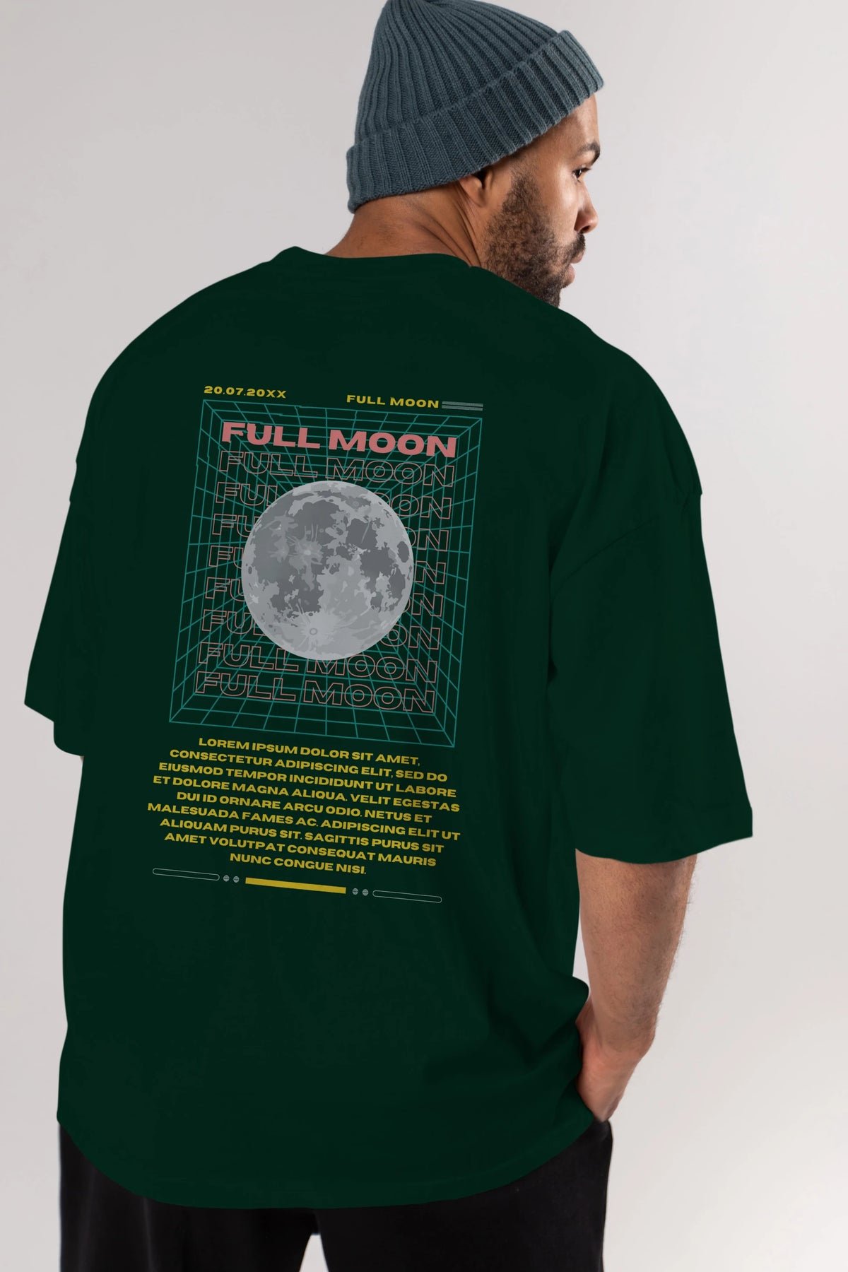 Full Moon Yazılı Arka Baskılı Oversize t-shirt Erkek Kadın Unisex