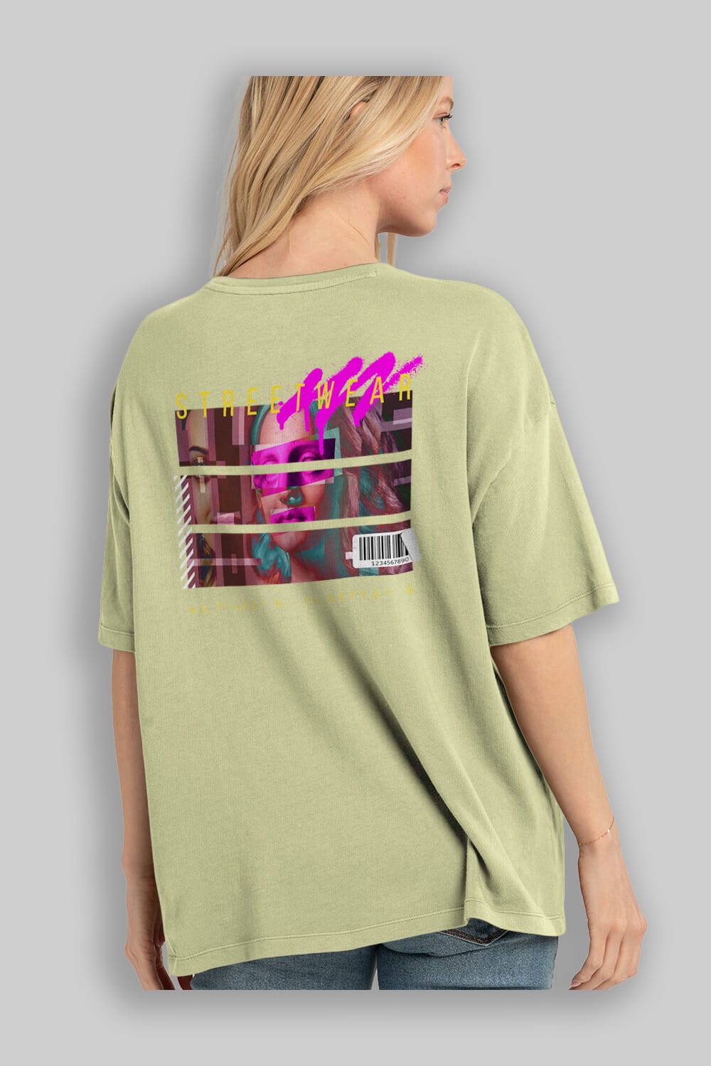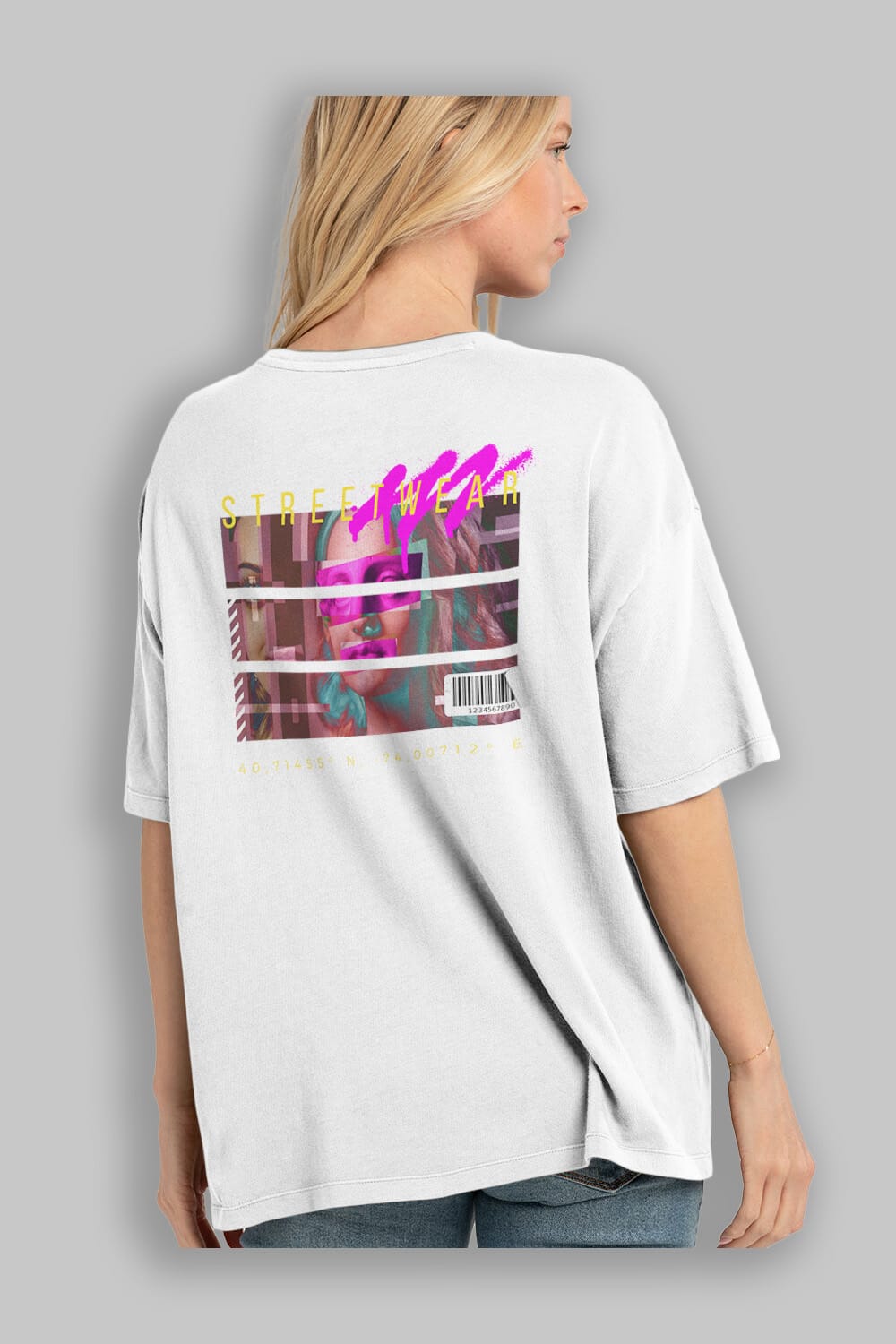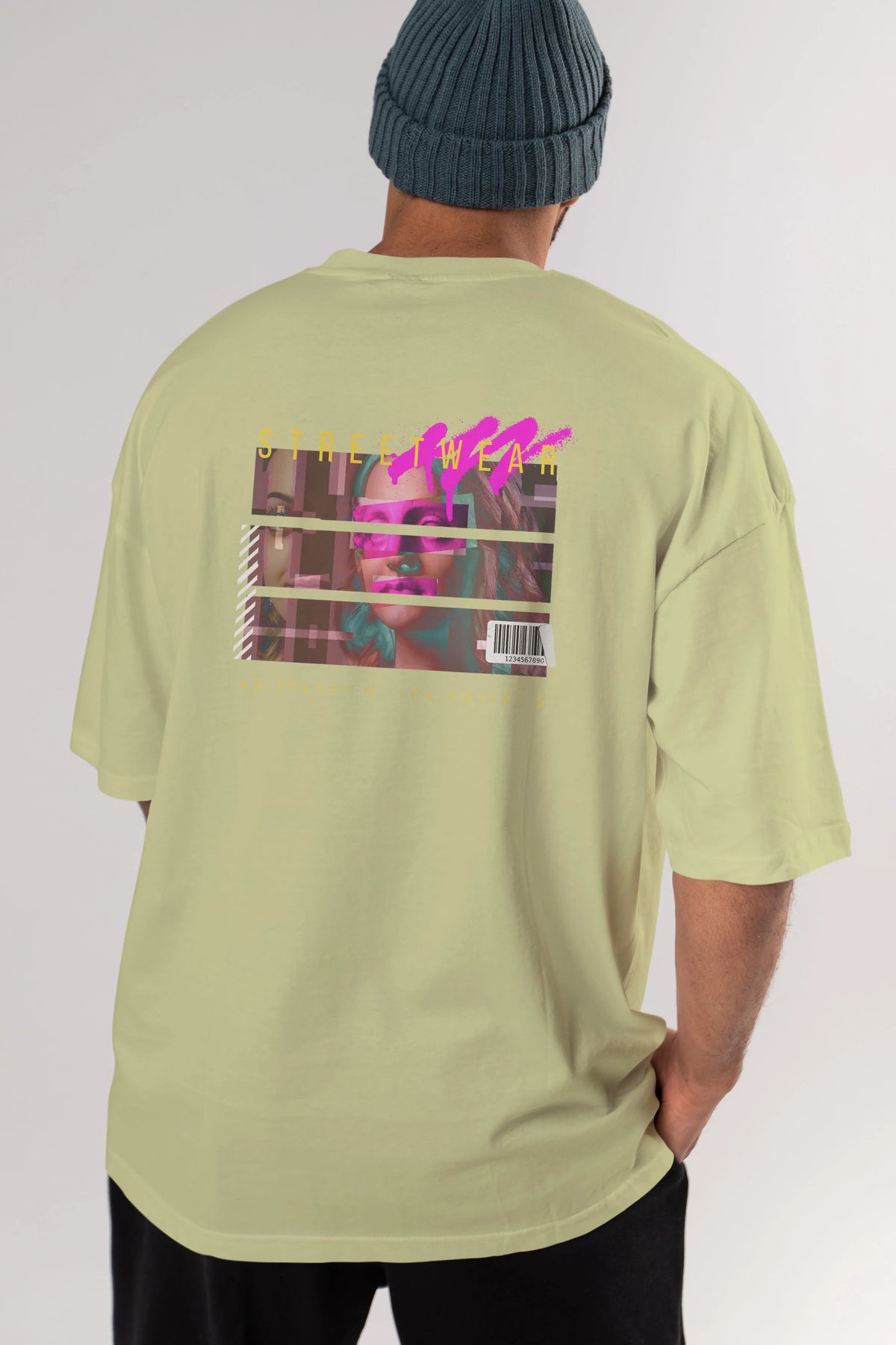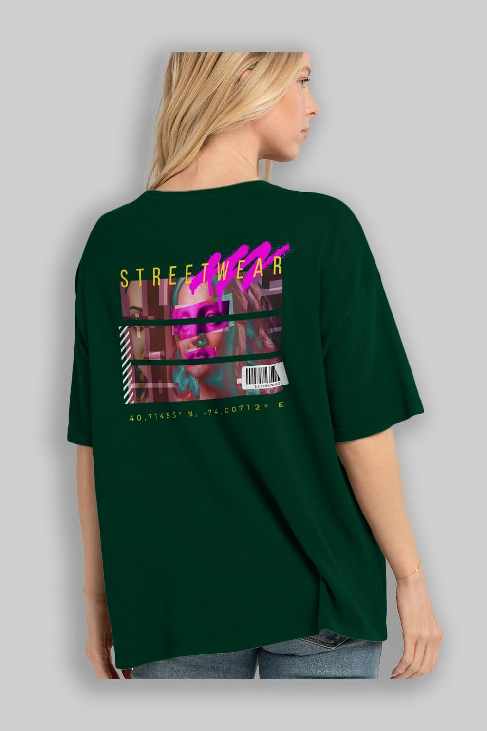 Hem erkekler hem de kadınlar için uygun, taze, modern bir baskıya sahip baskılı oversize t-shirt.