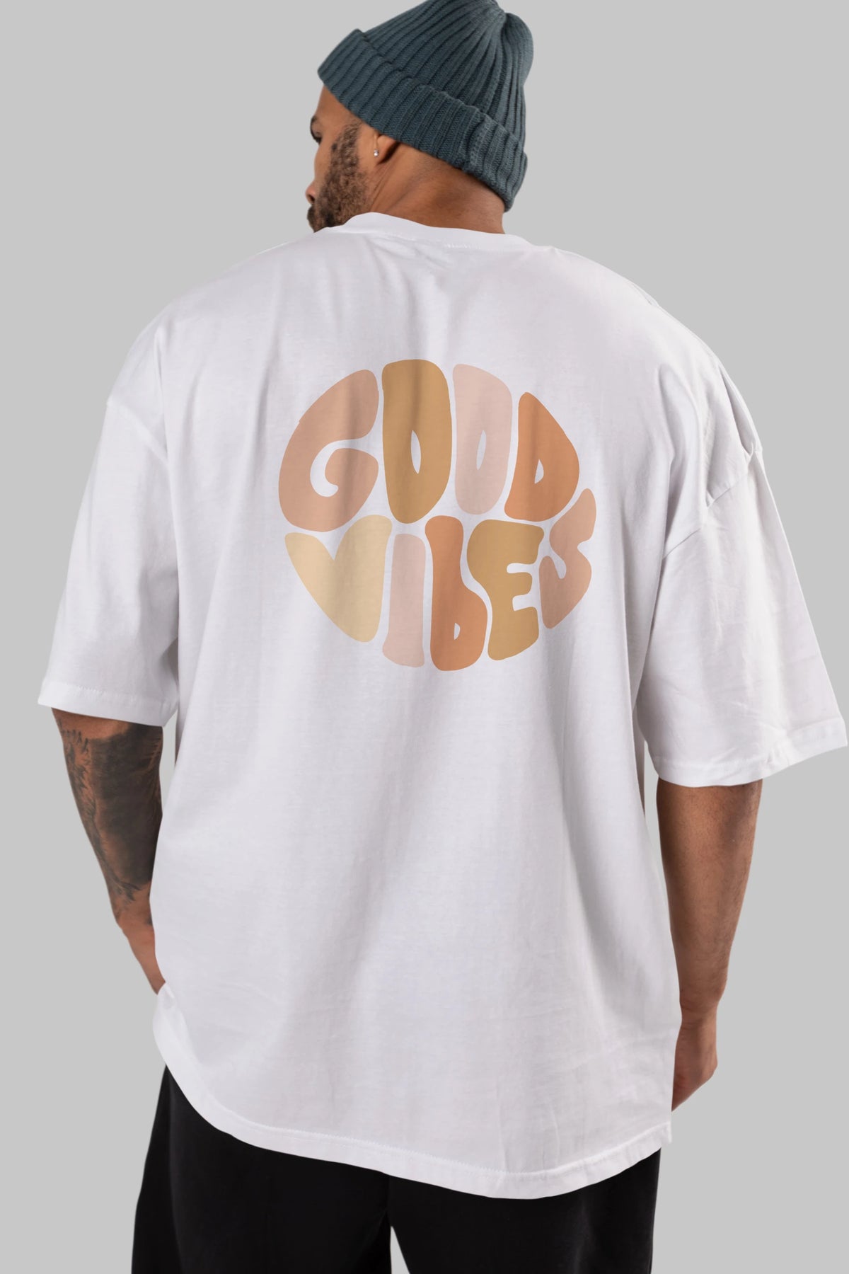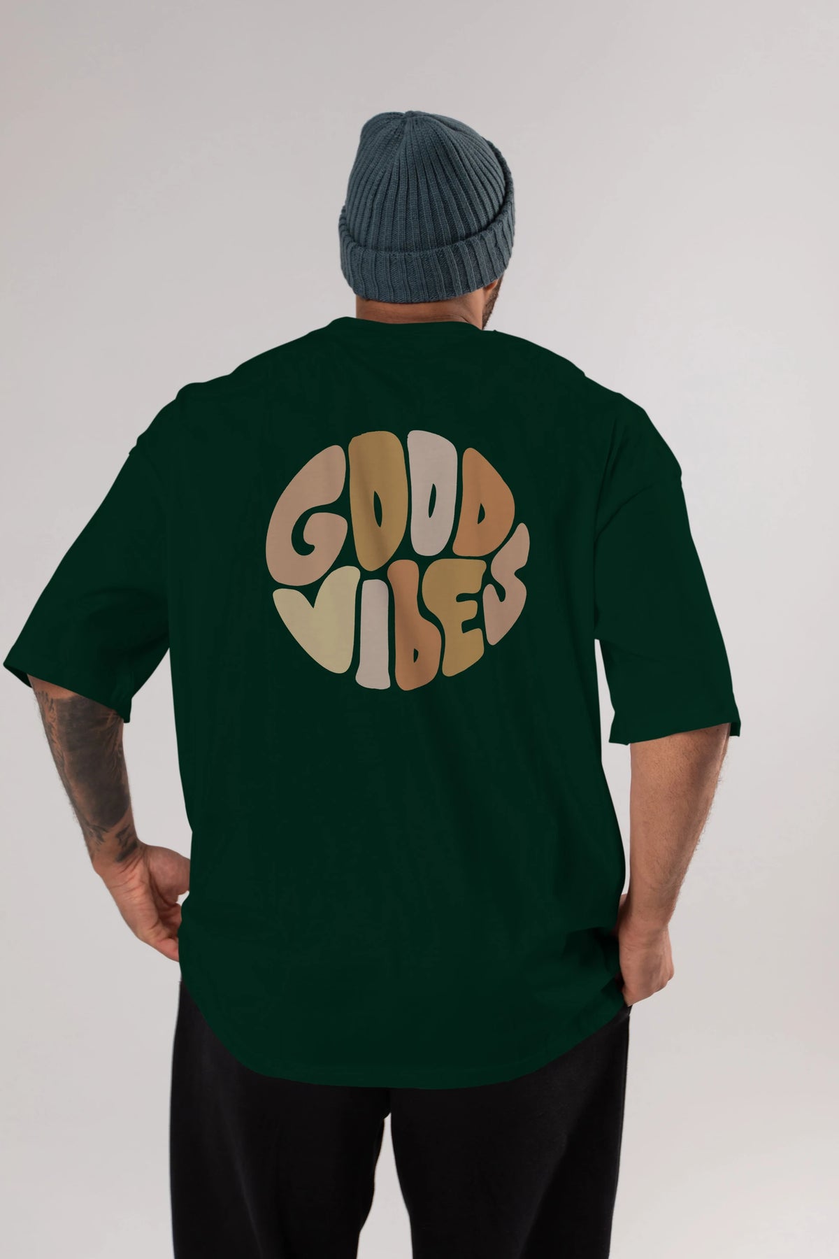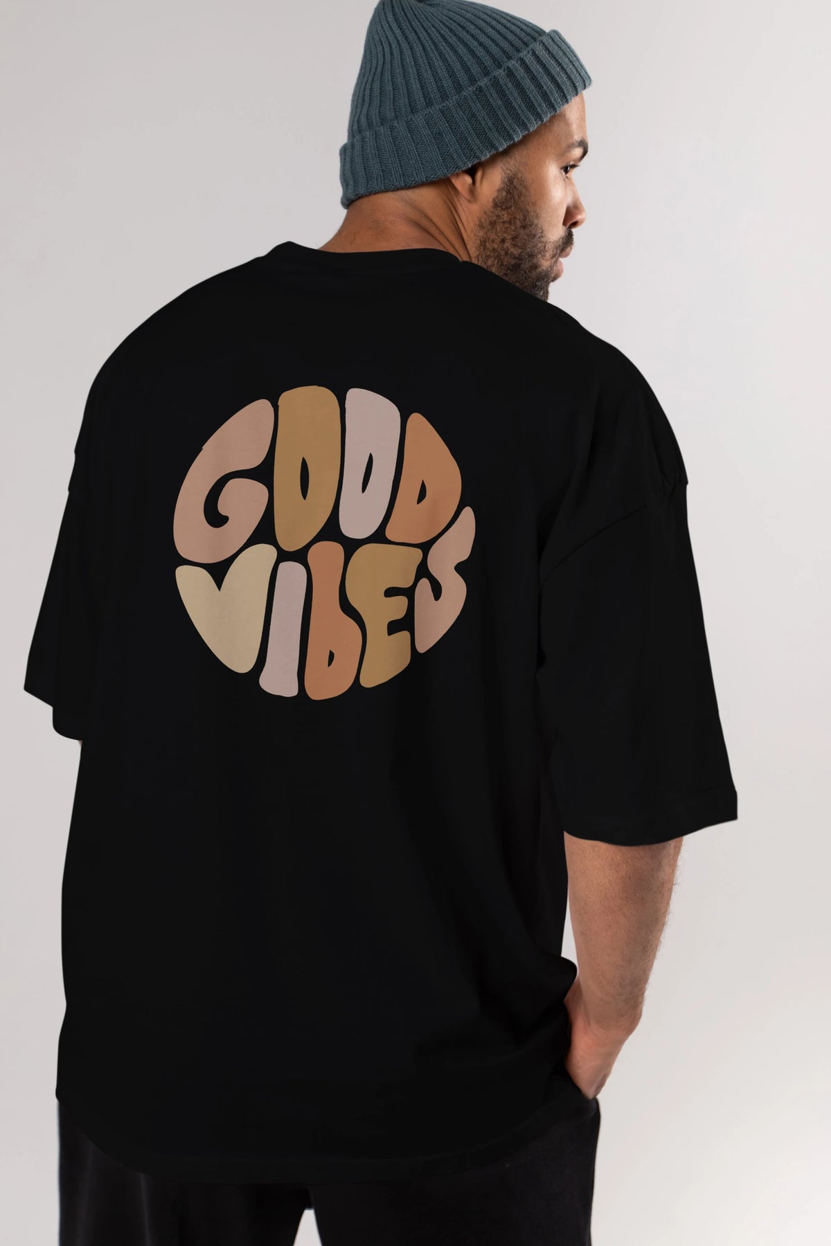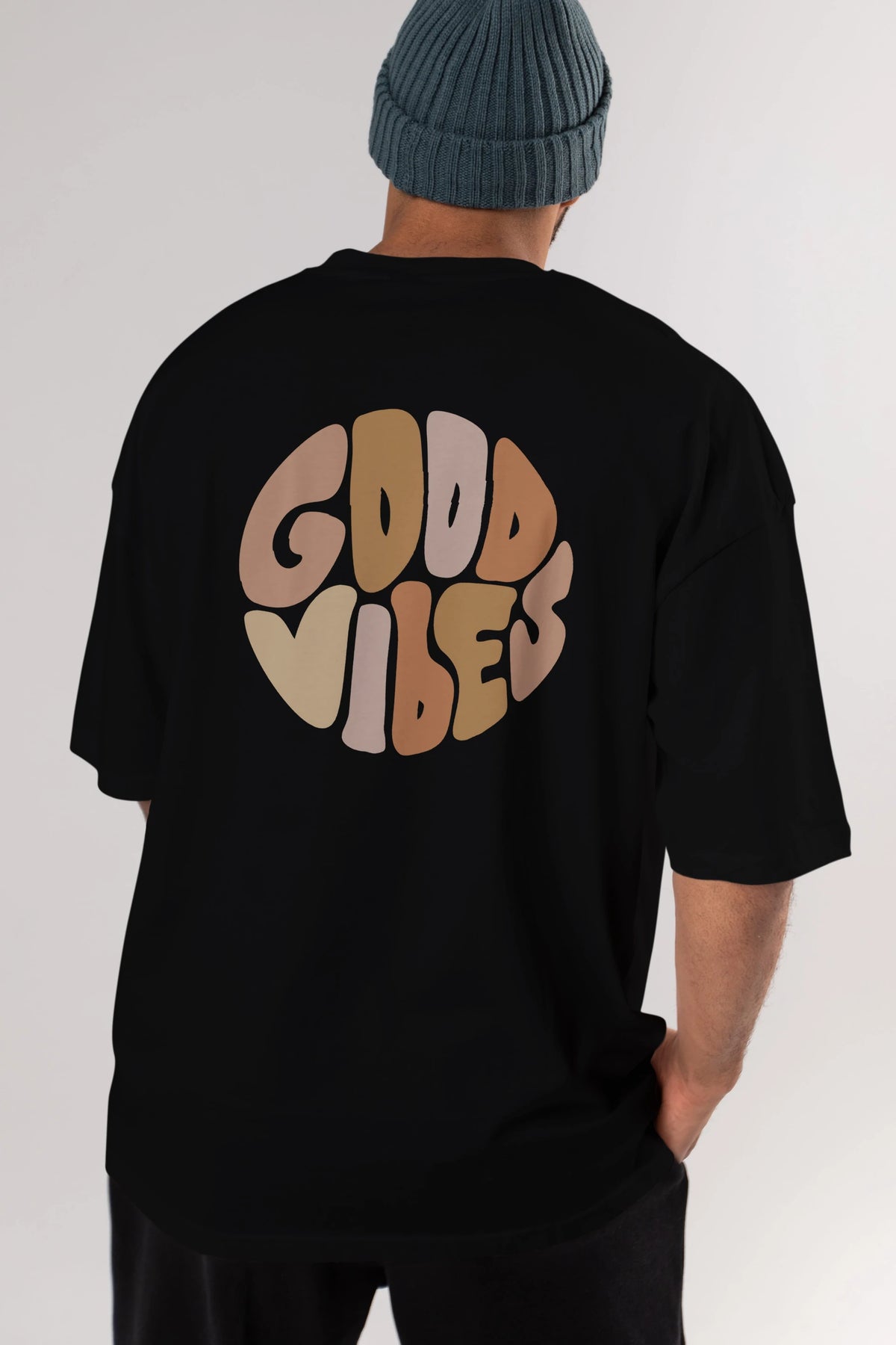 Good Vibes Yazılı 3 Arka Baskılı Oversize t-shirt Erkek Kadın Unisex