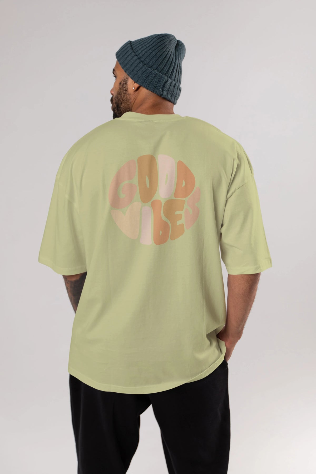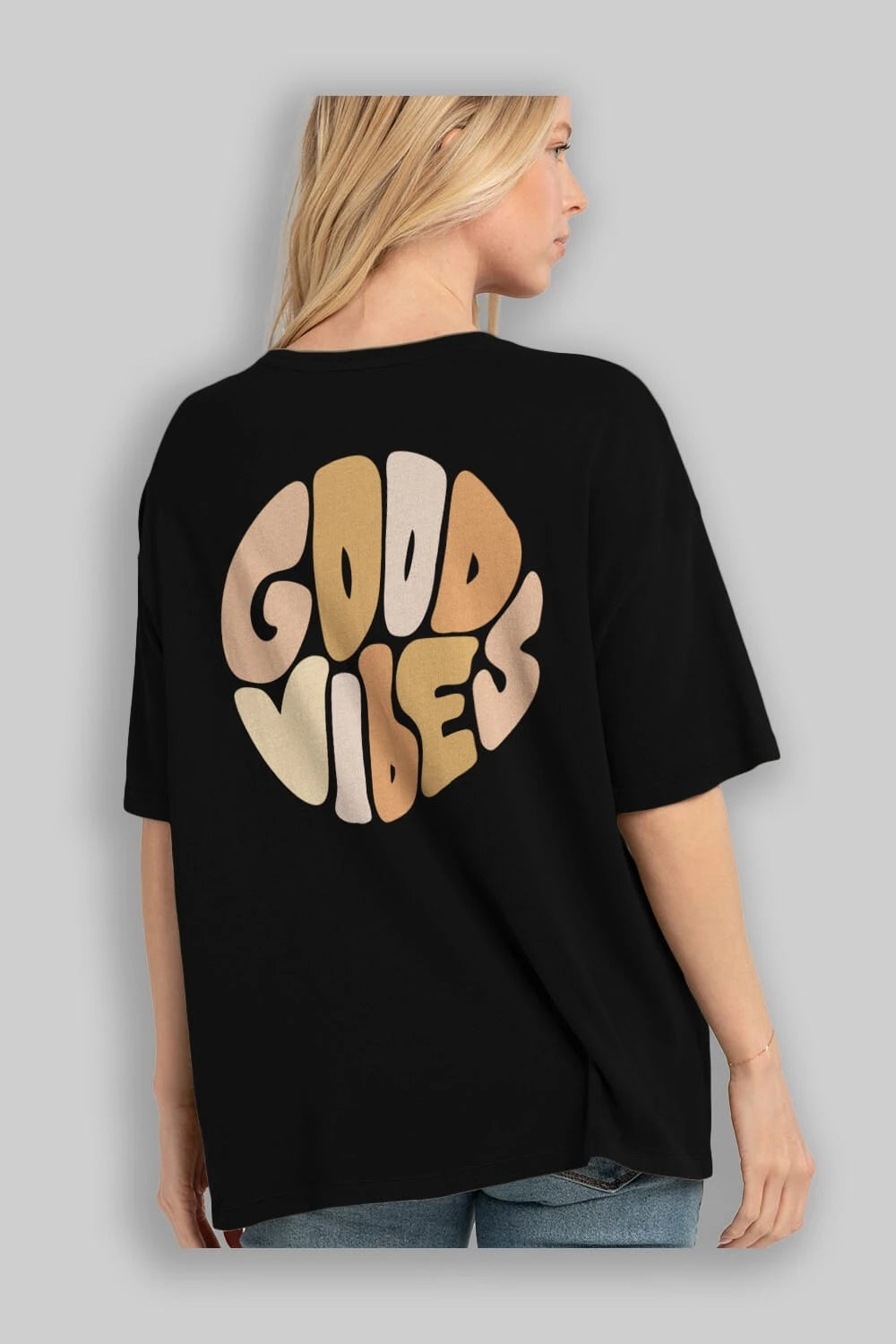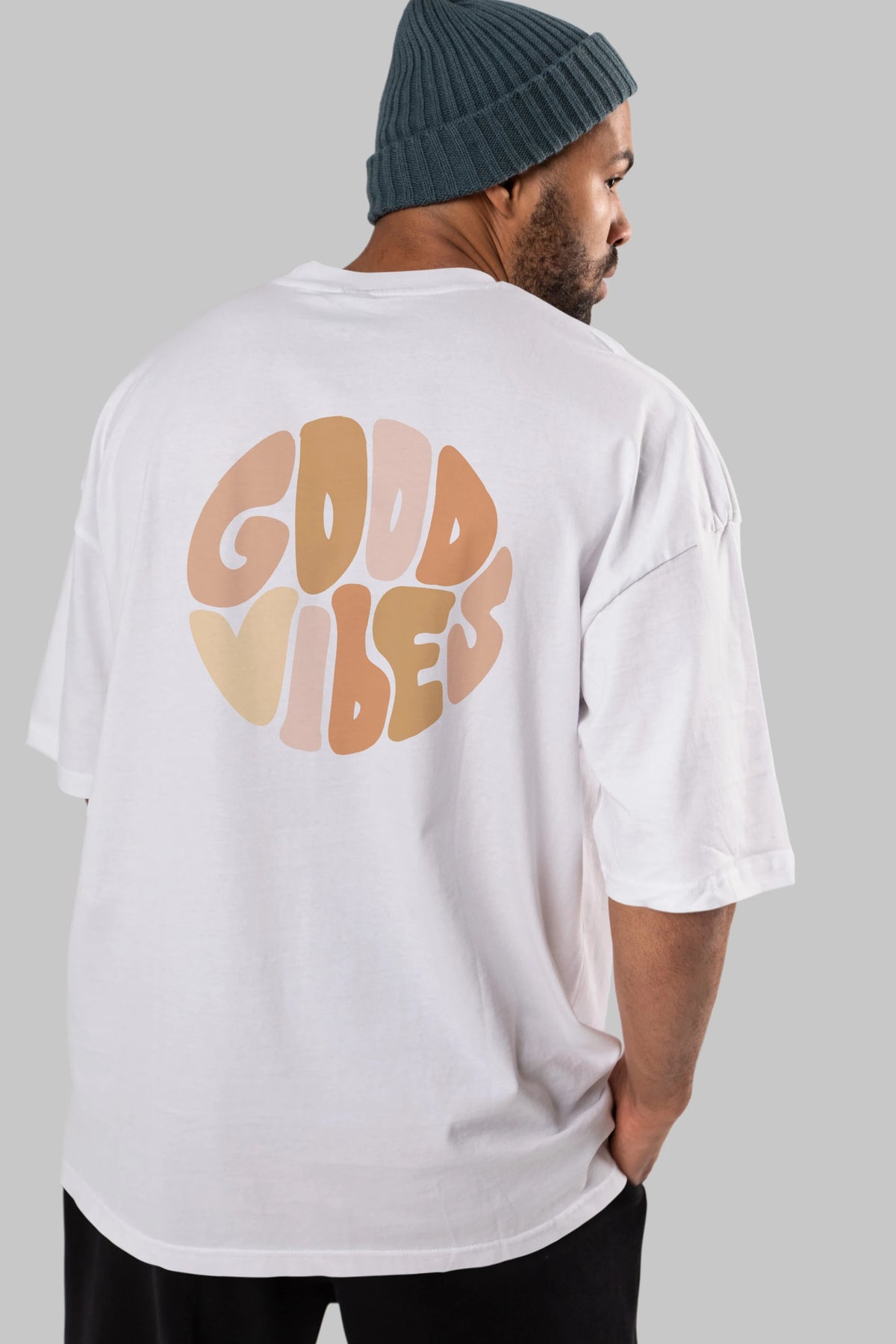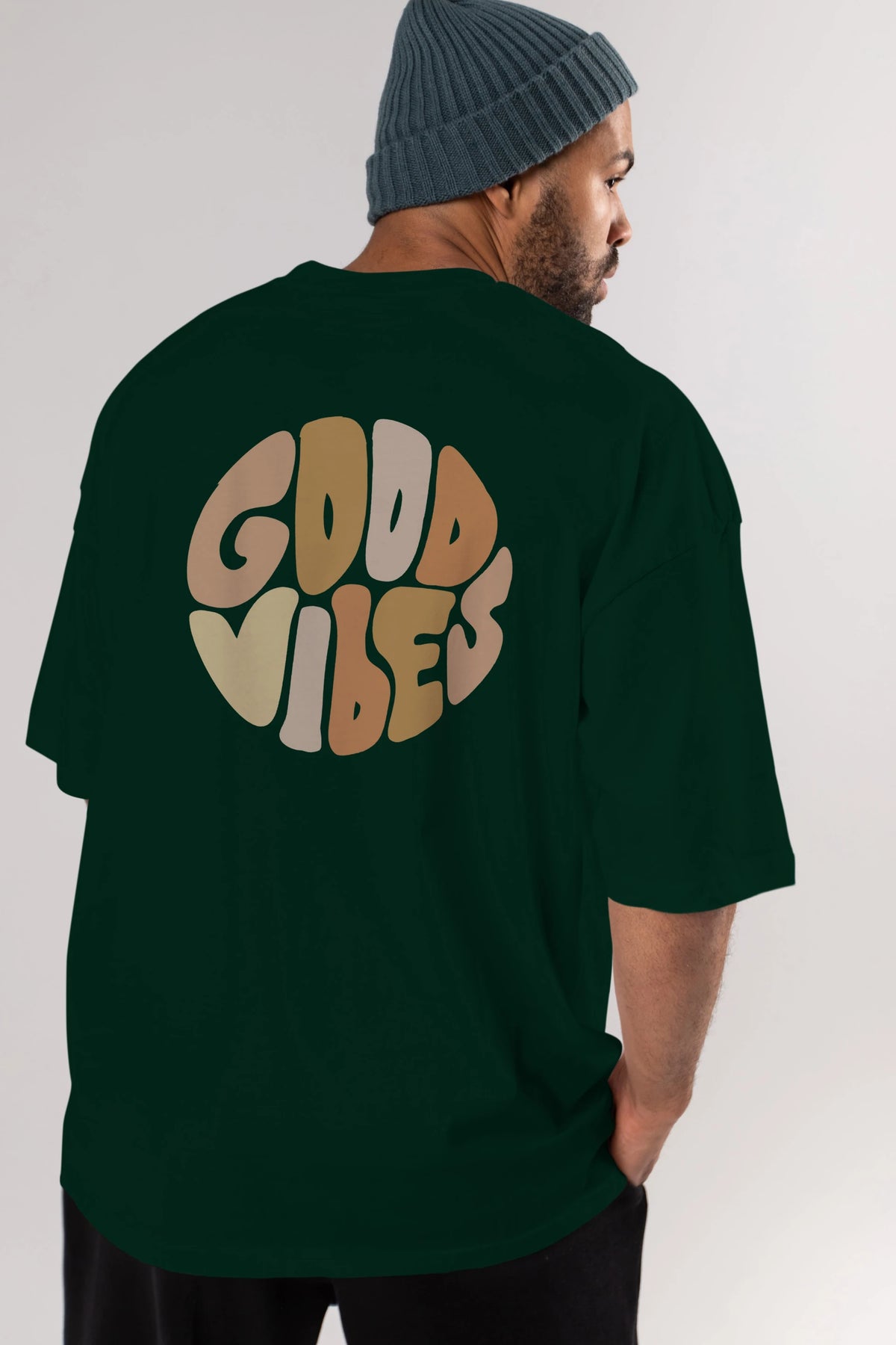Good Vibes Yazılı 3 Arka Baskılı Oversize t-shirt Erkek Kadın Unisex