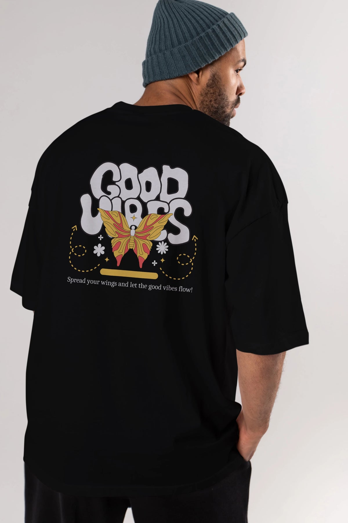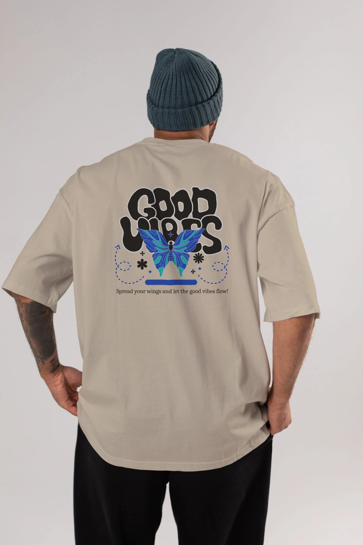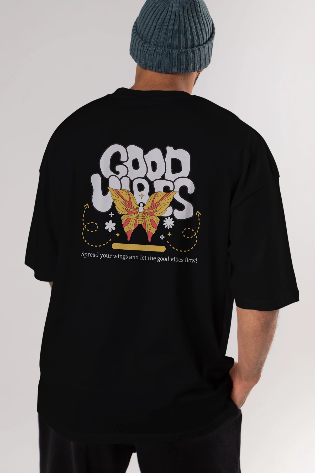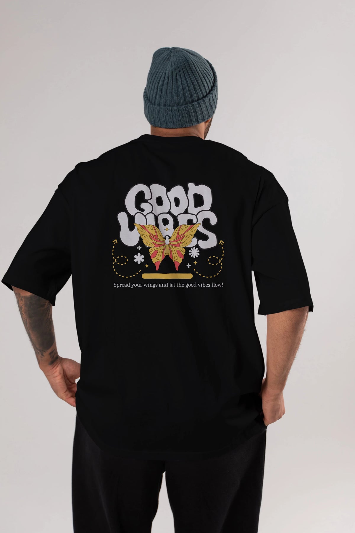 Good Vibes Yazılı 4 Arka Baskılı Oversize t-shirt Erkek Kadın Unisex
