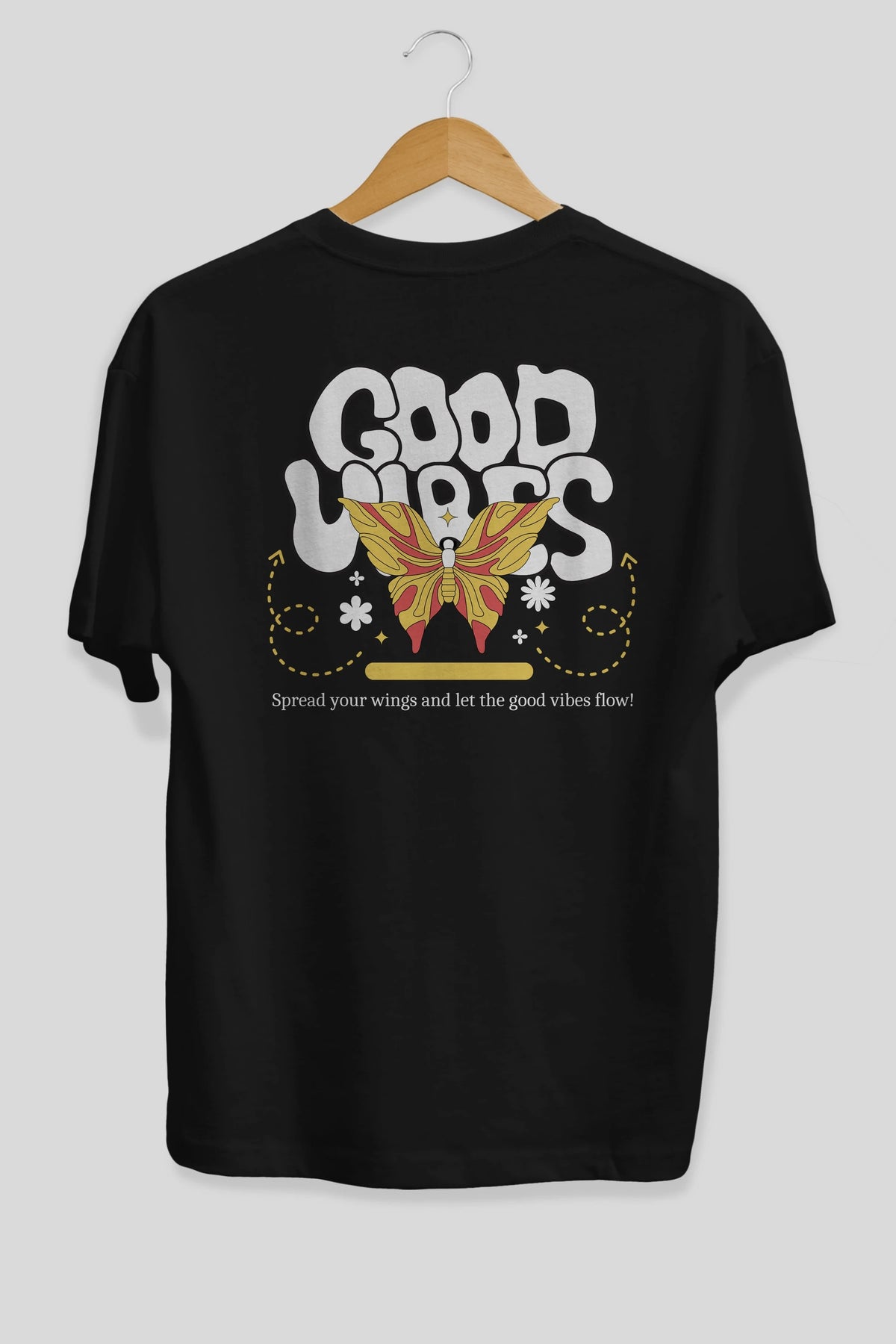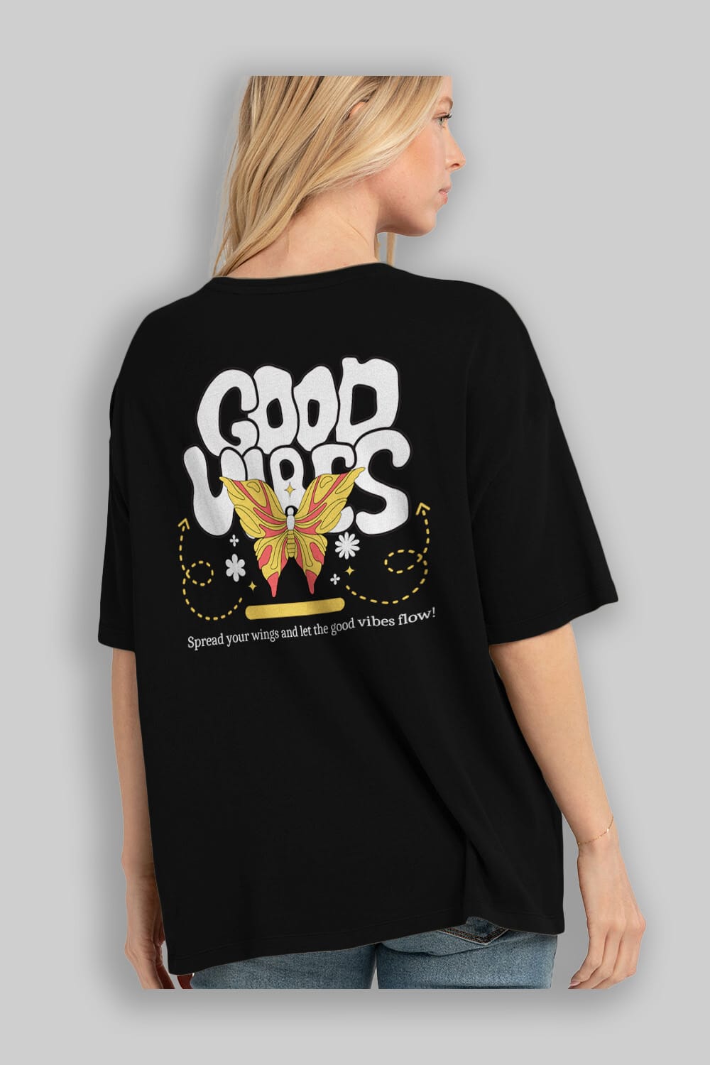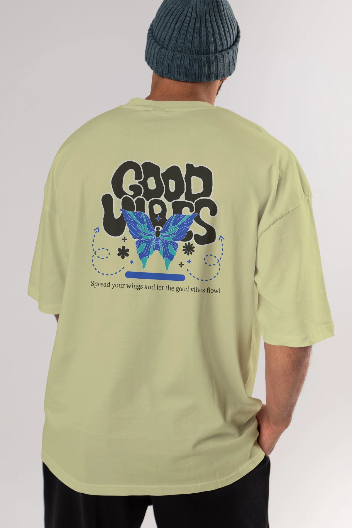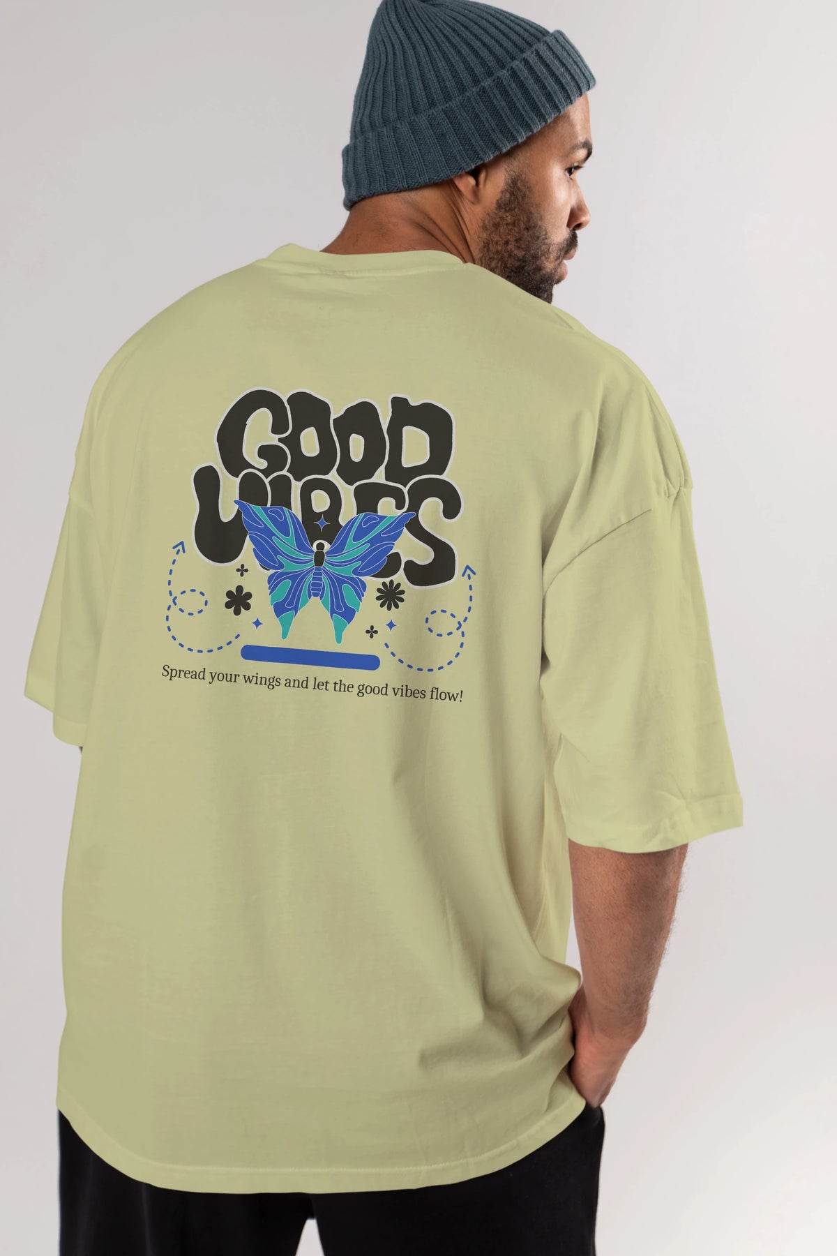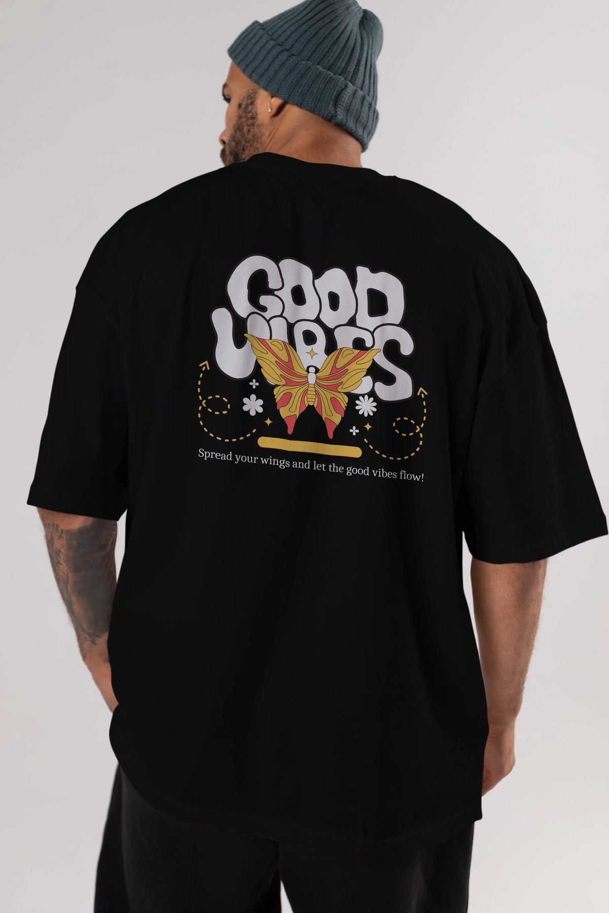 Good Vibes Yazılı 4 Arka Baskılı Oversize t-shirt Erkek Kadın Unisex