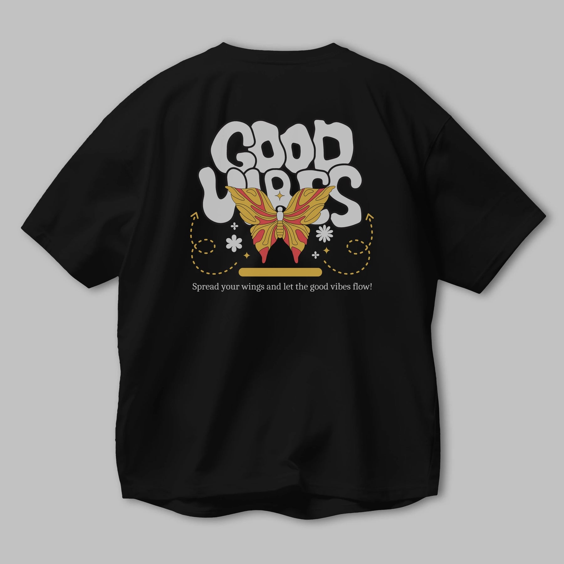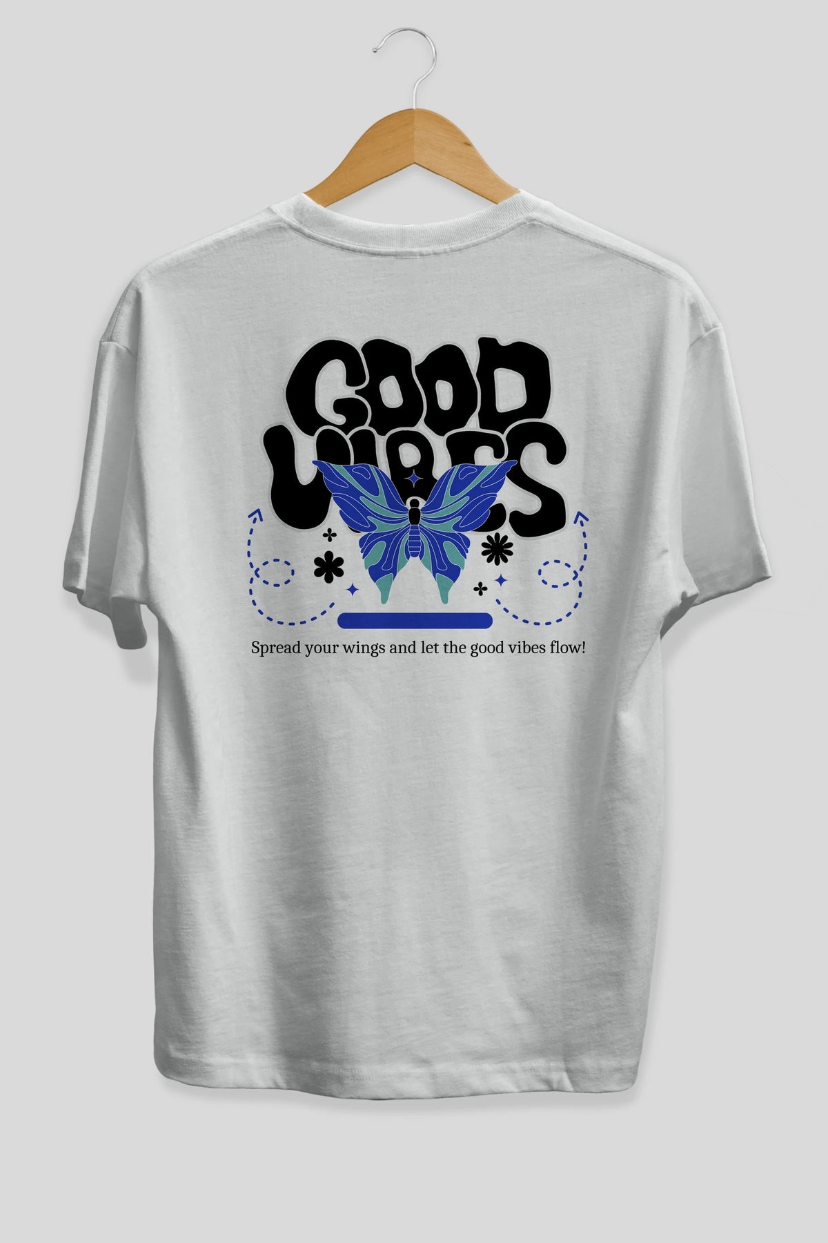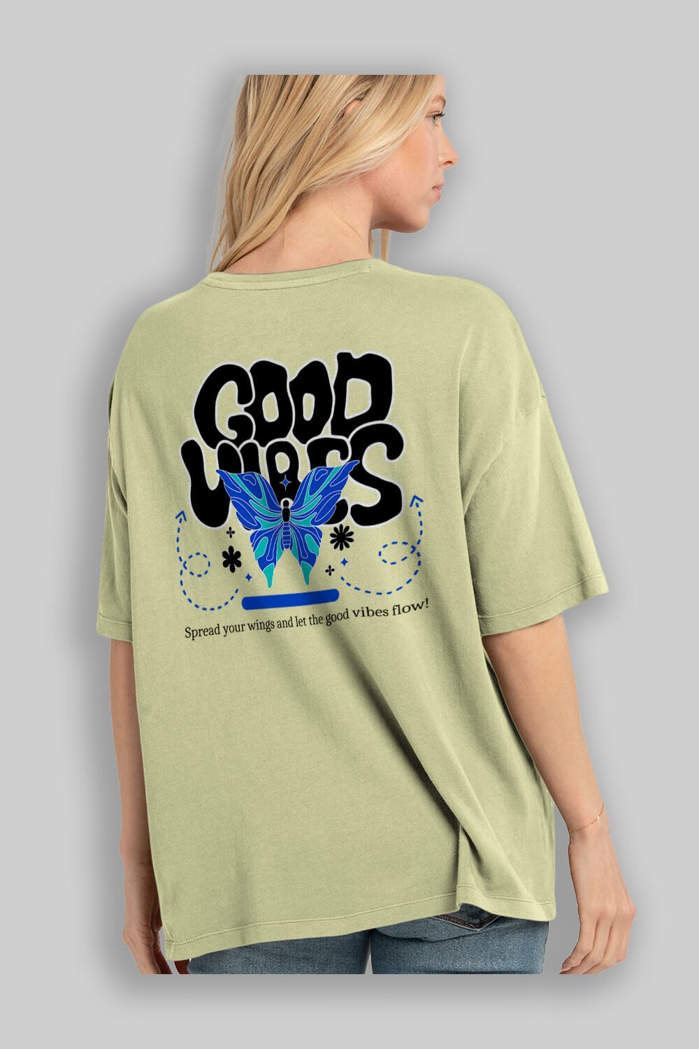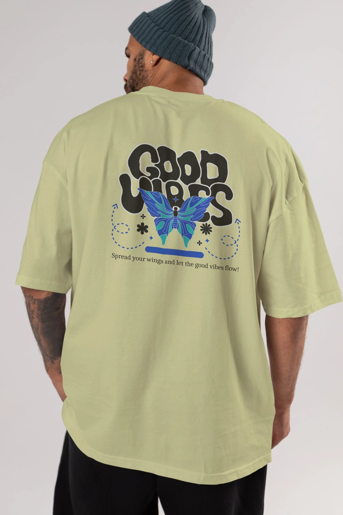Good Vibes Yazılı 4 Arka Baskılı Oversize t-shirt Erkek Kadın Unisex