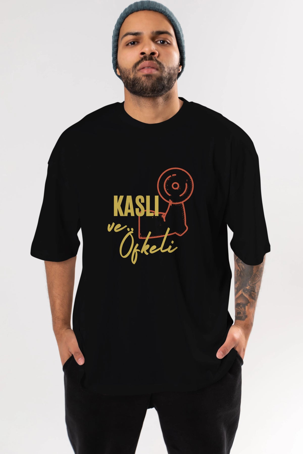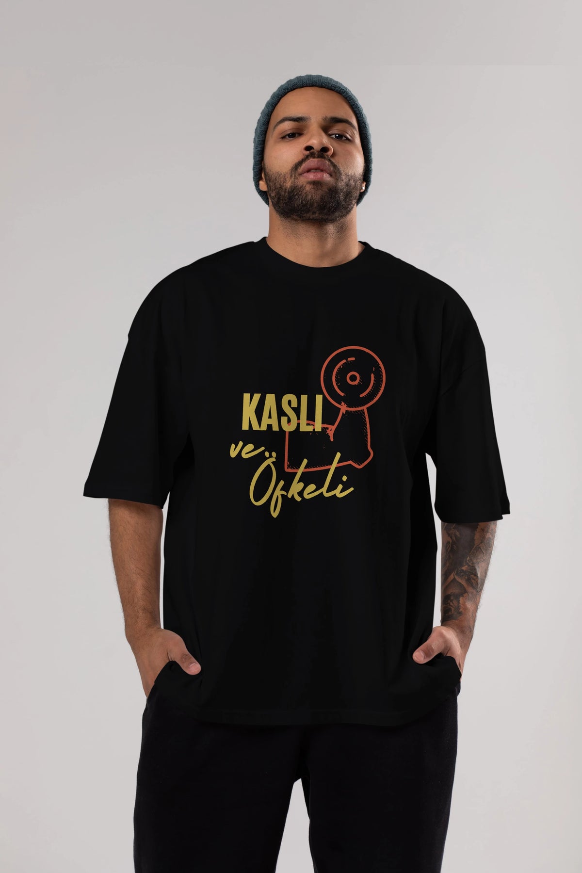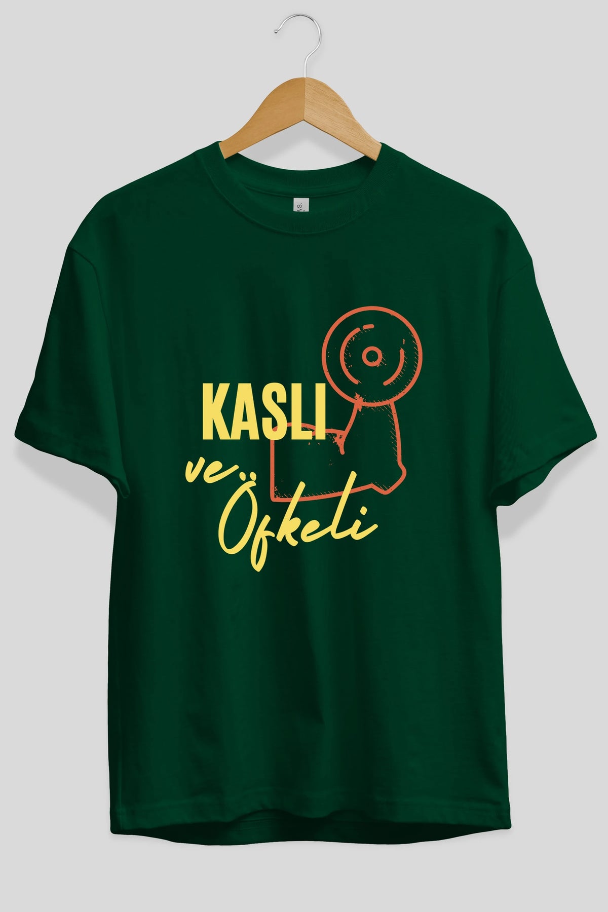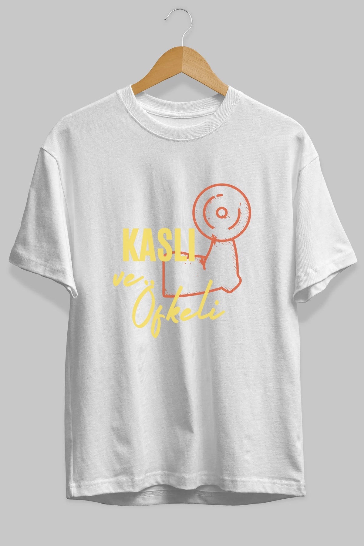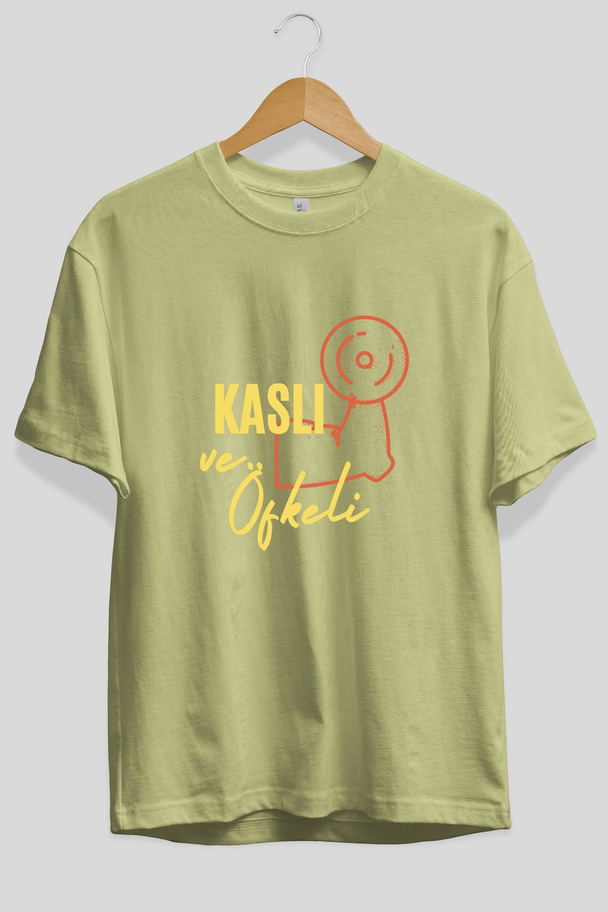 Kaslı ve Öfkeli Yazılı Ön Baskılı Oversize t-shirt Erkek Kadın Unisex