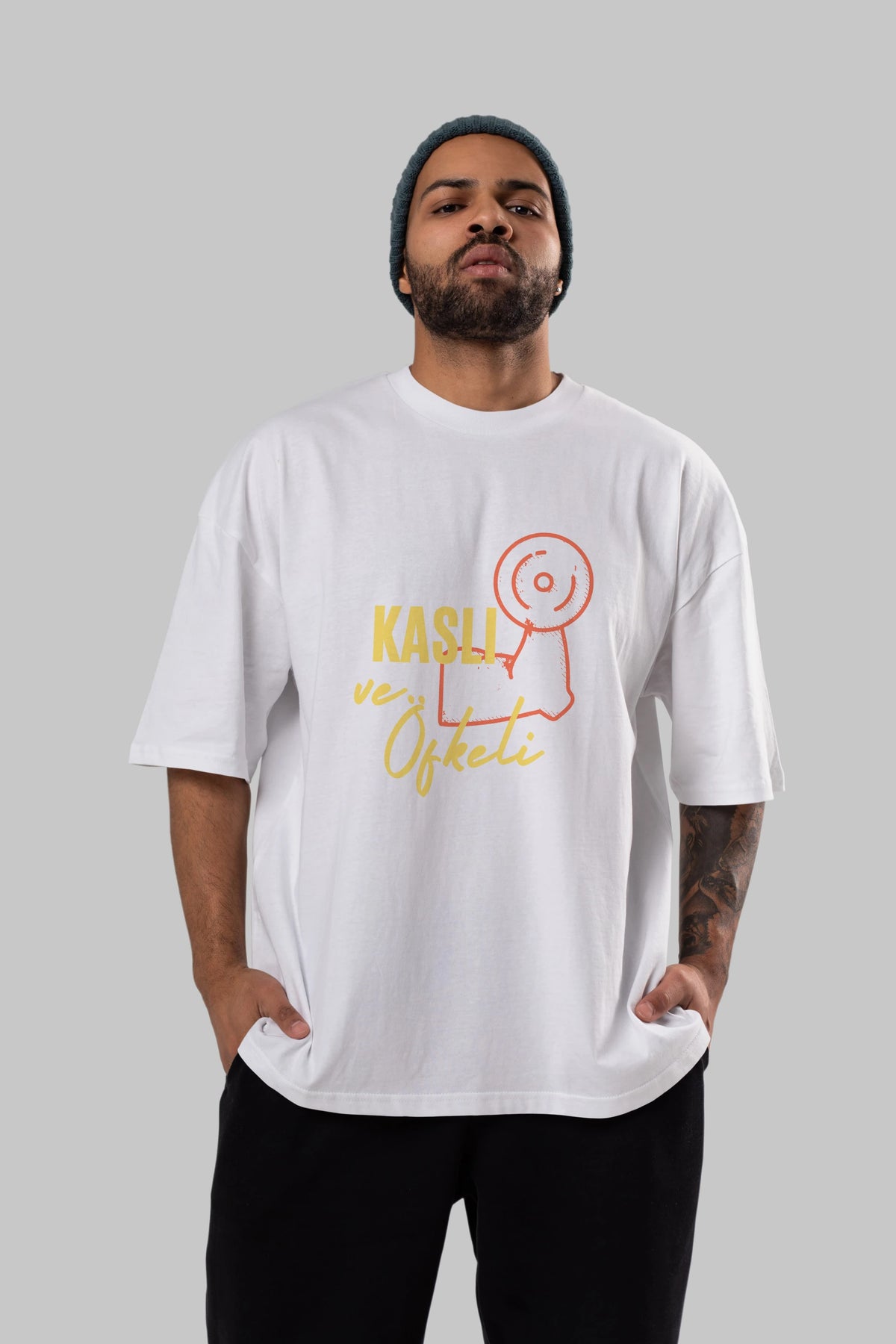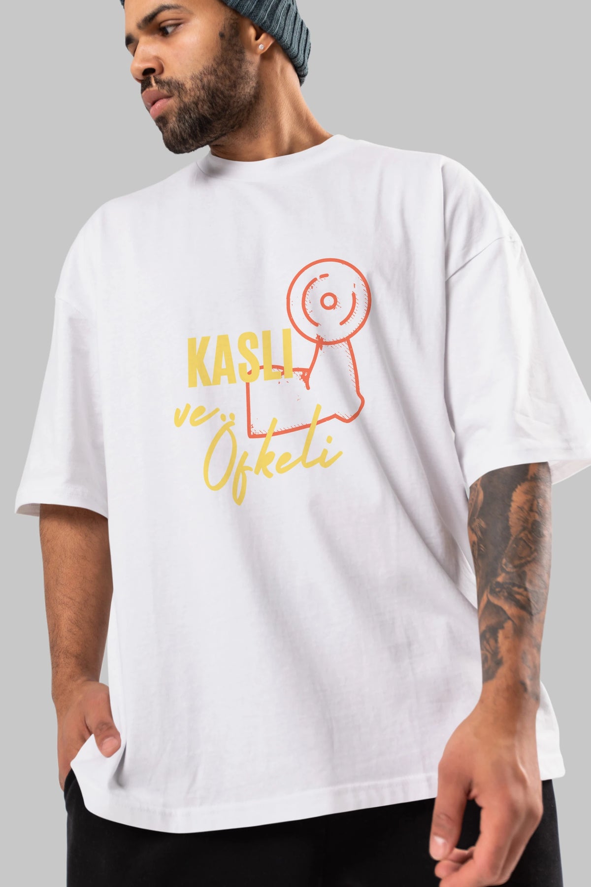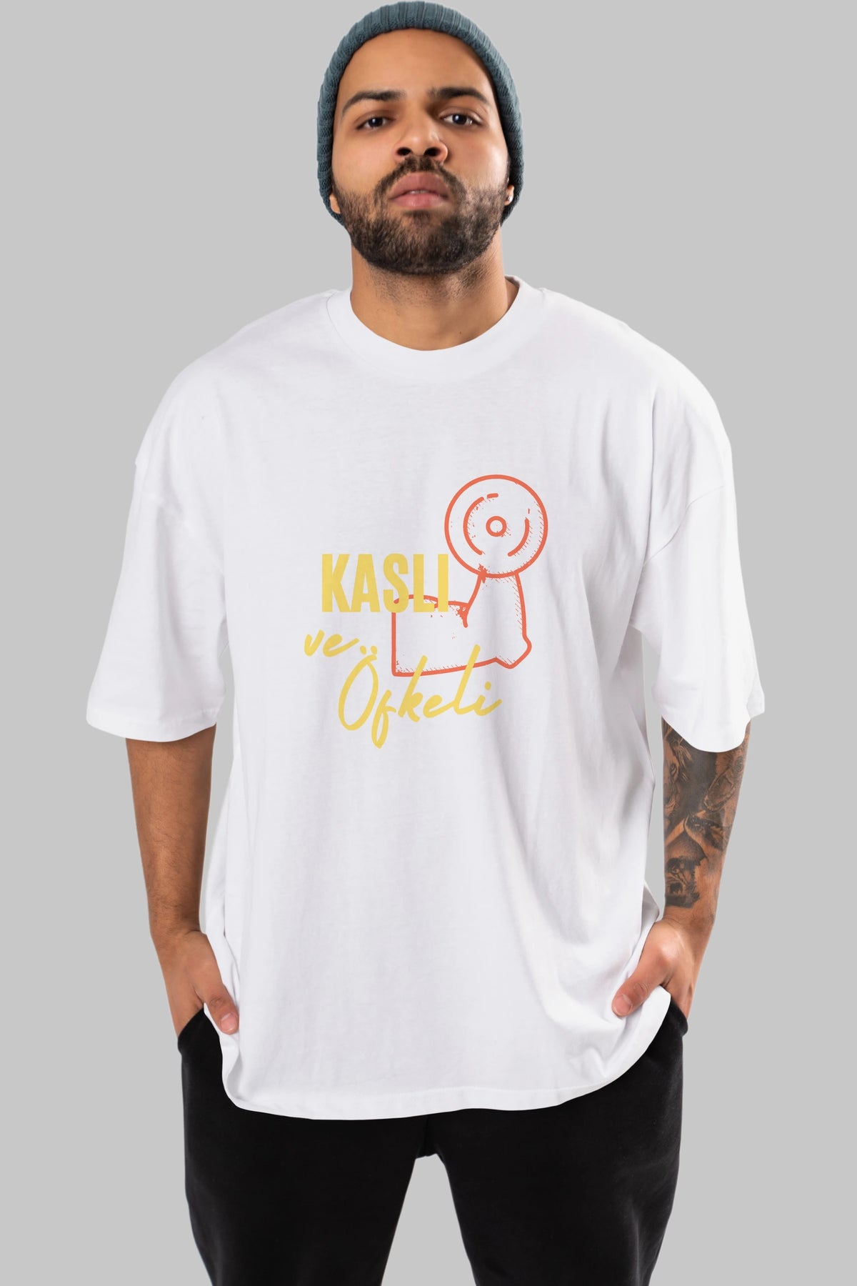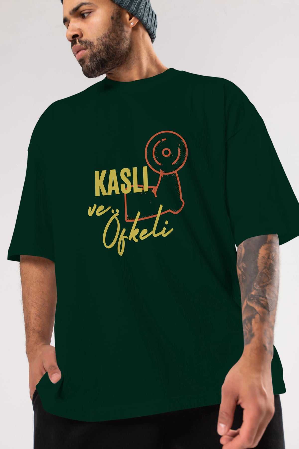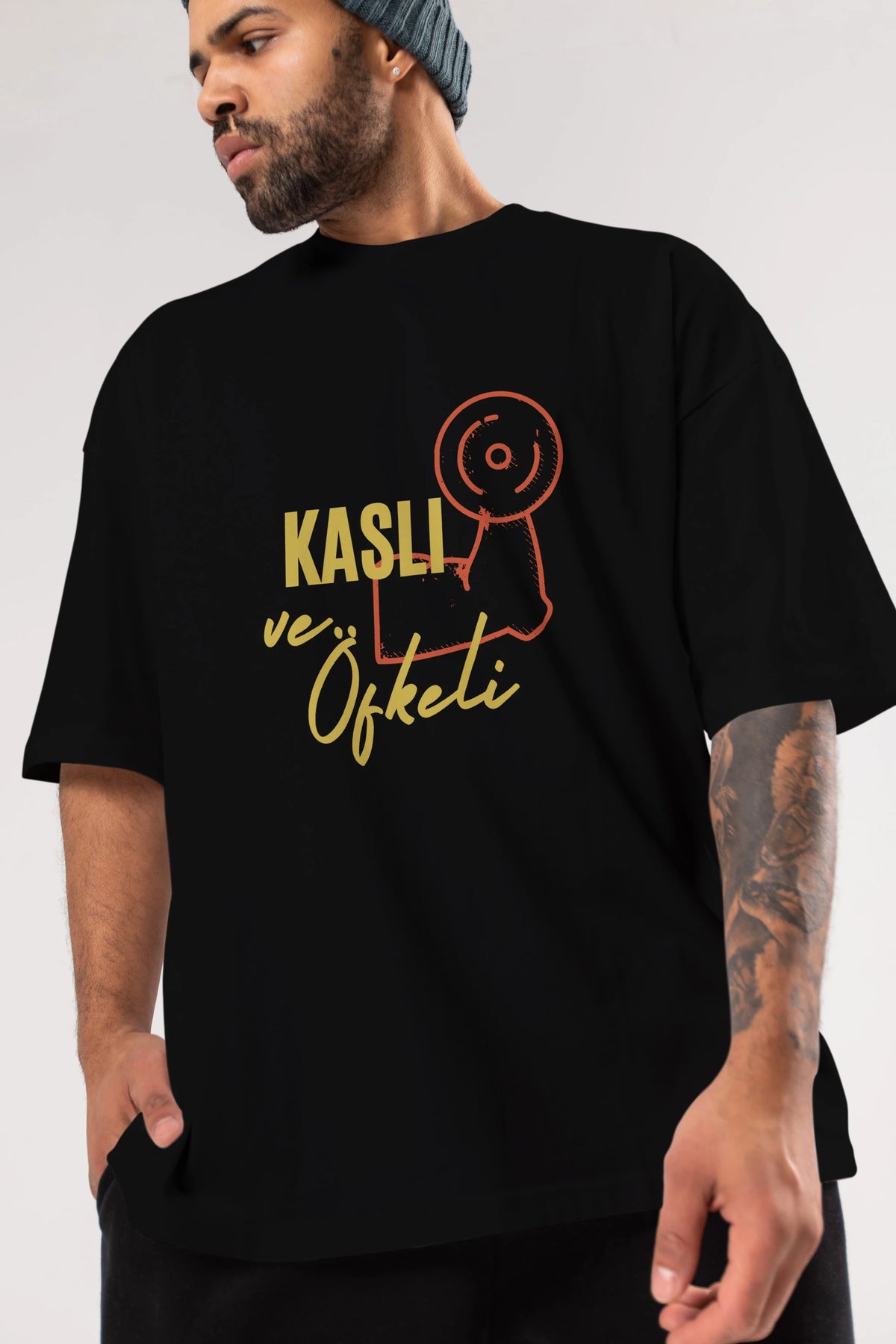 Kaslı ve Öfkeli Yazılı Ön Baskılı Oversize t-shirt Erkek Kadın Unisex