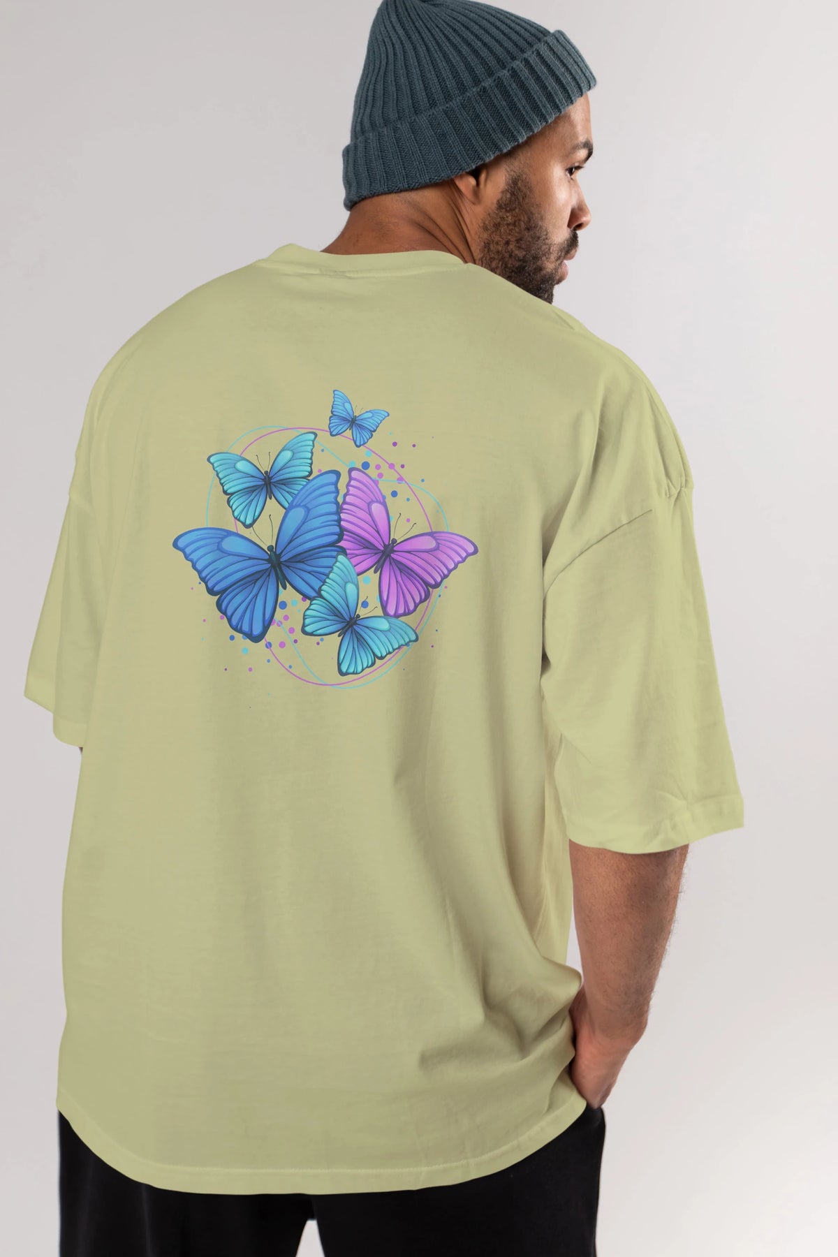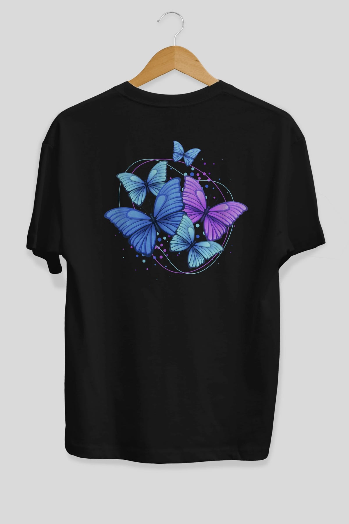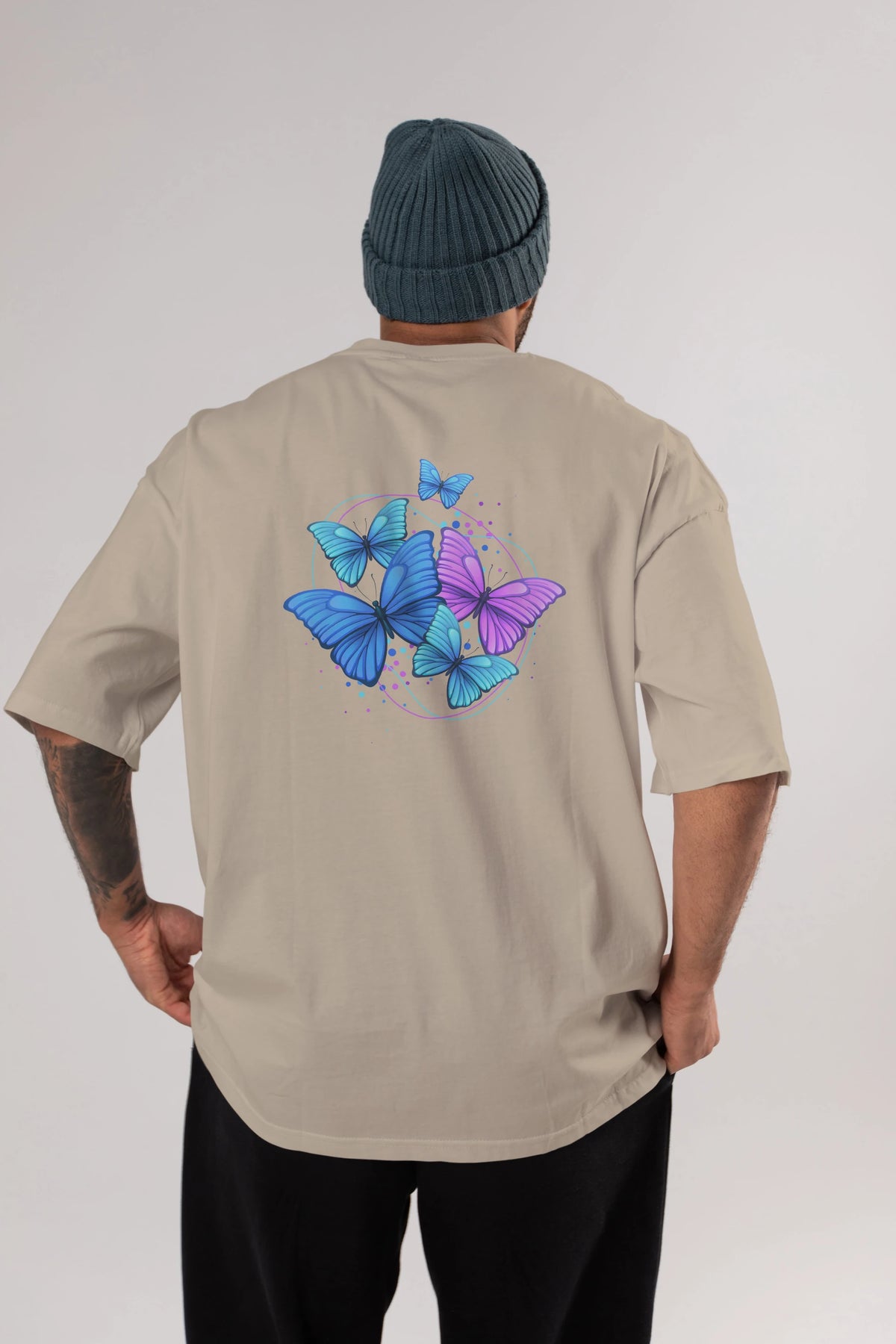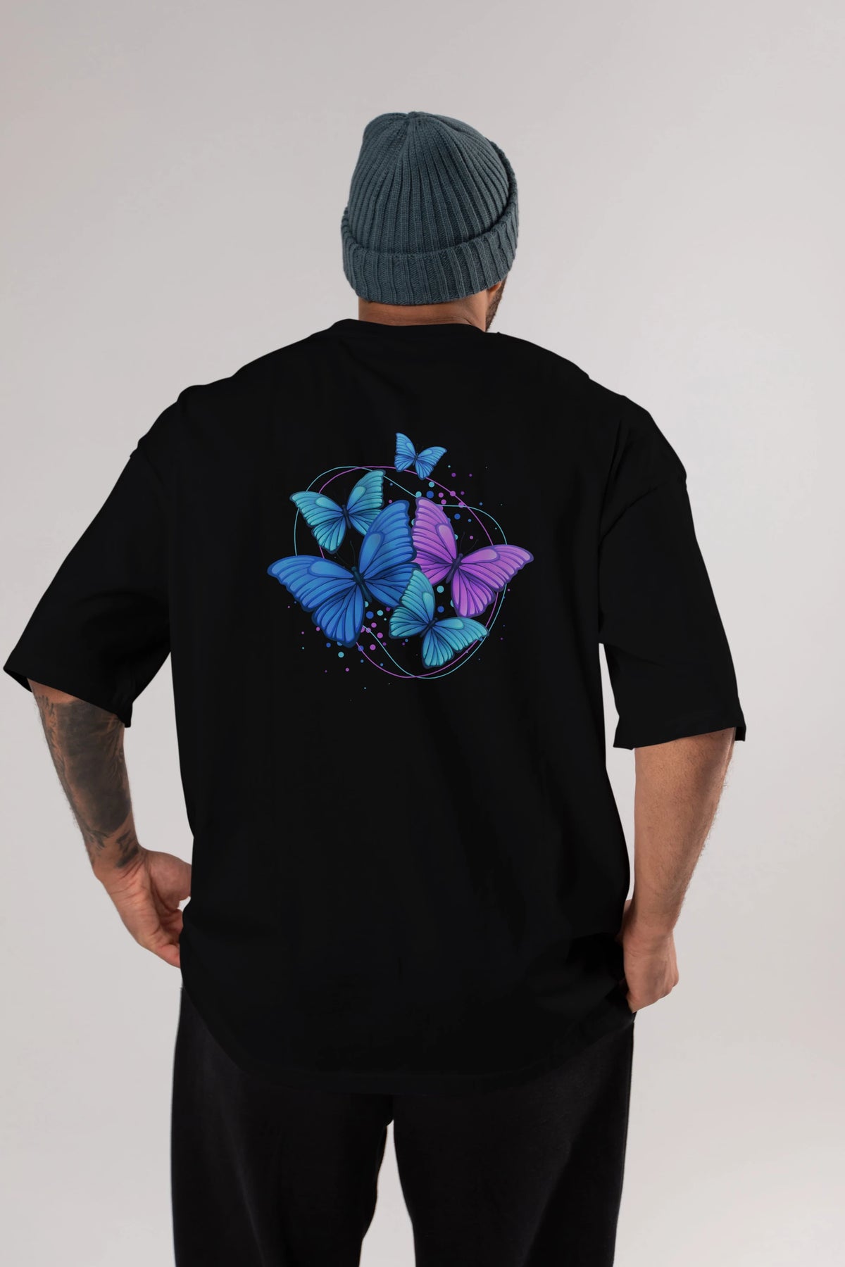Kelebek Arka Baskılı Oversize t-shirt Erkek Kadın Unisex