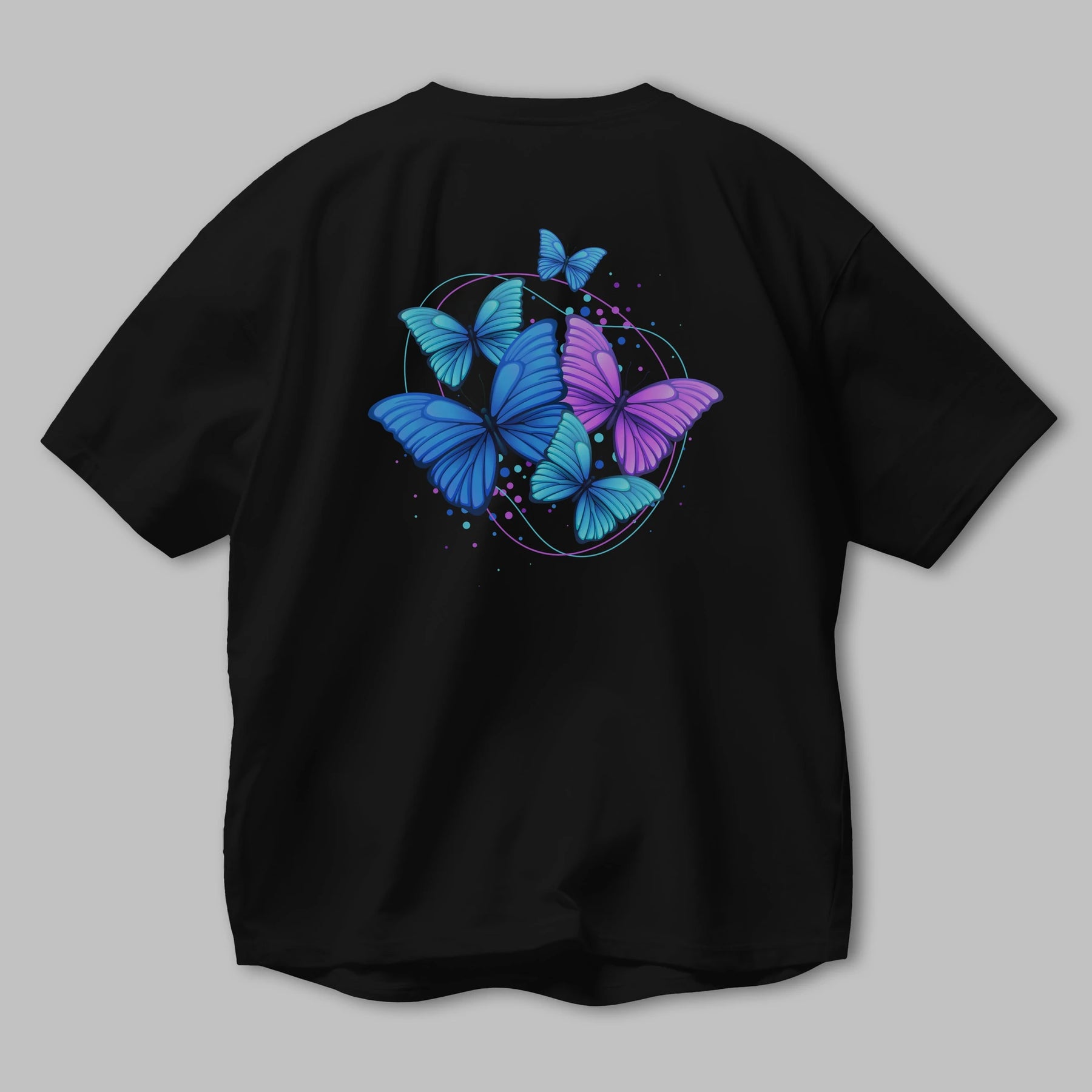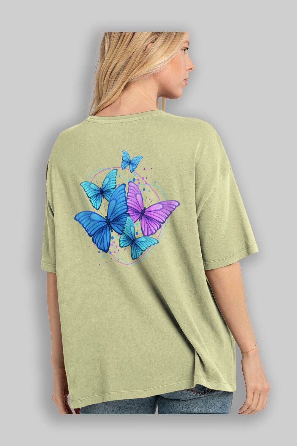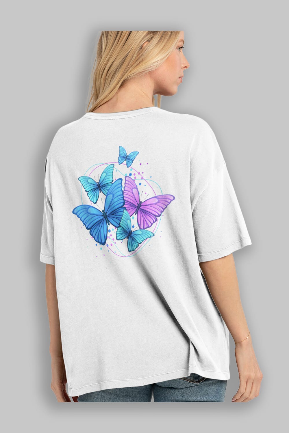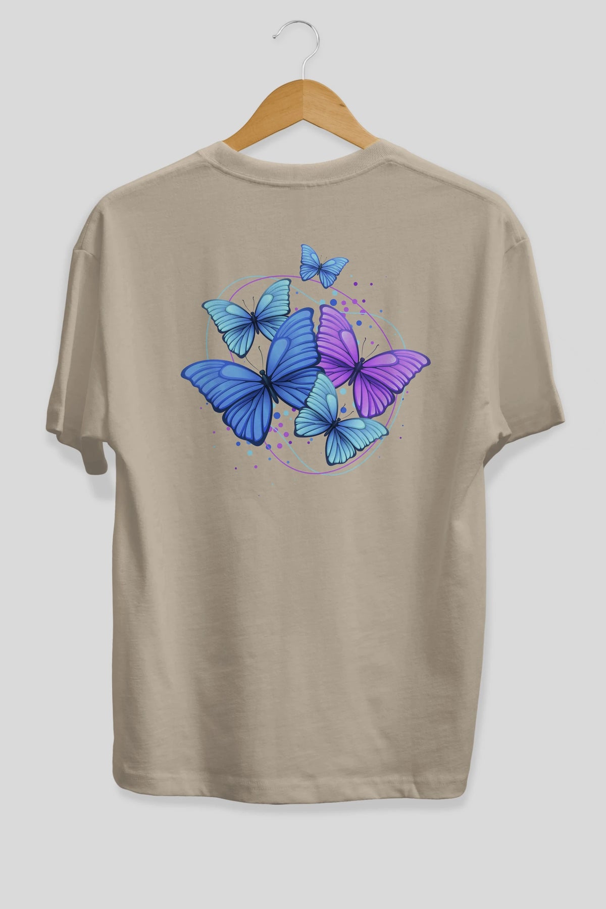 Kelebek Arka Baskılı Oversize t-shirt Erkek Kadın Unisex