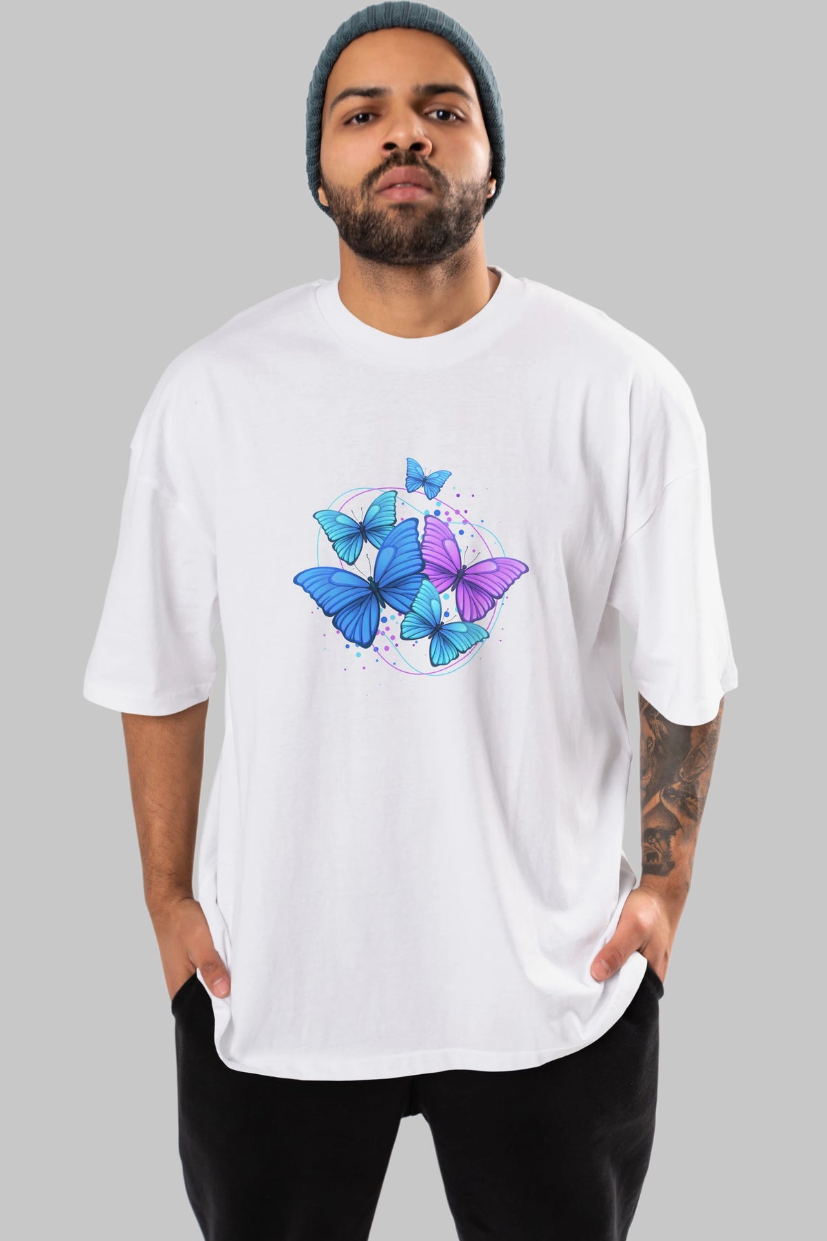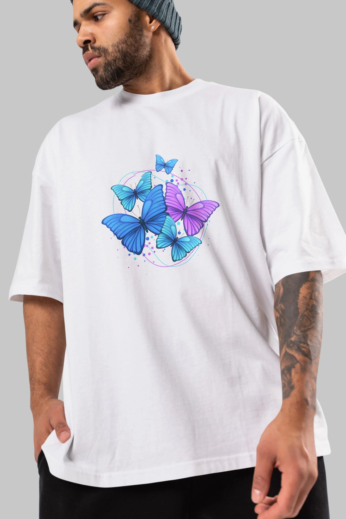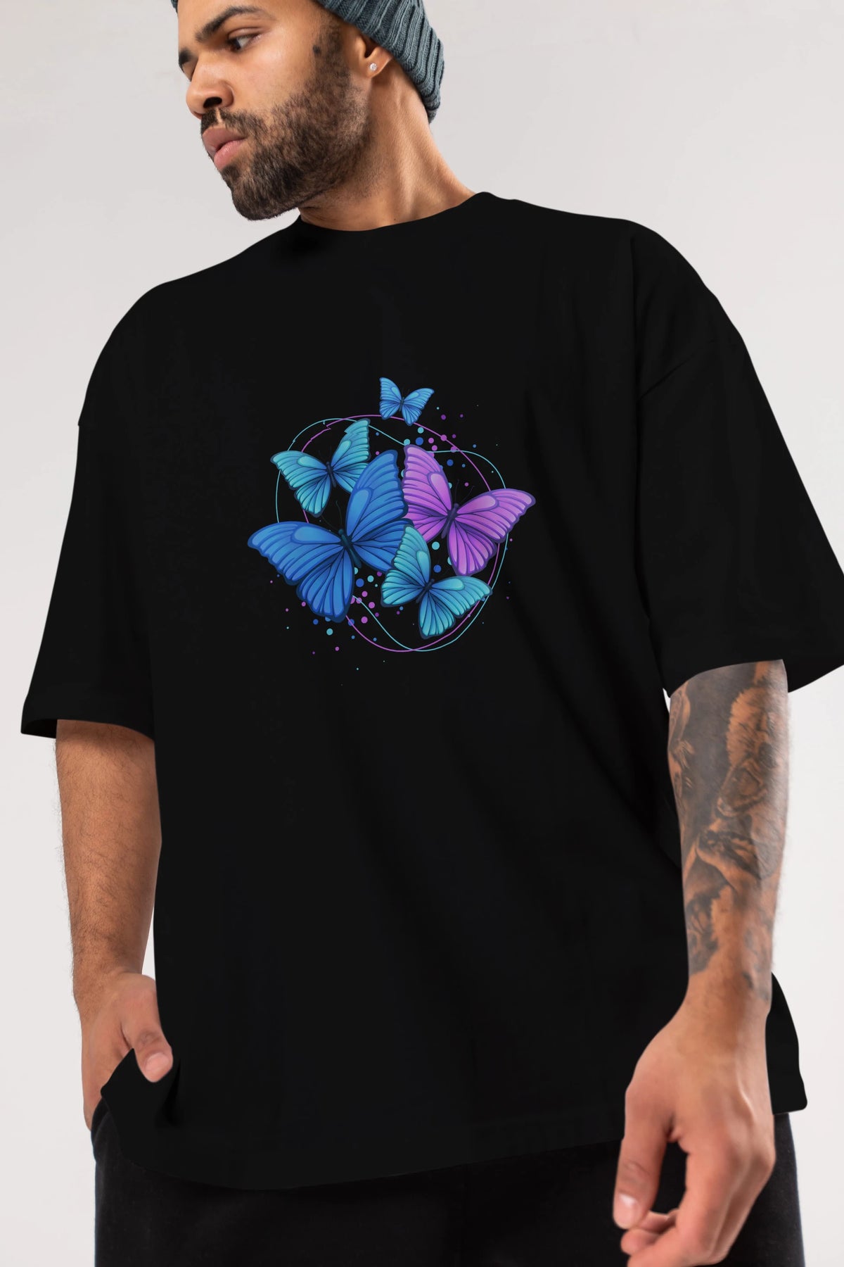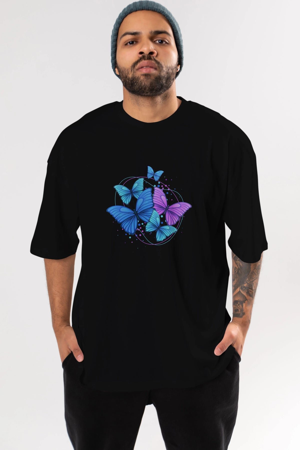 Kelebek Ön Baskılı Oversize t-shirt Erkek Kadın Unisex