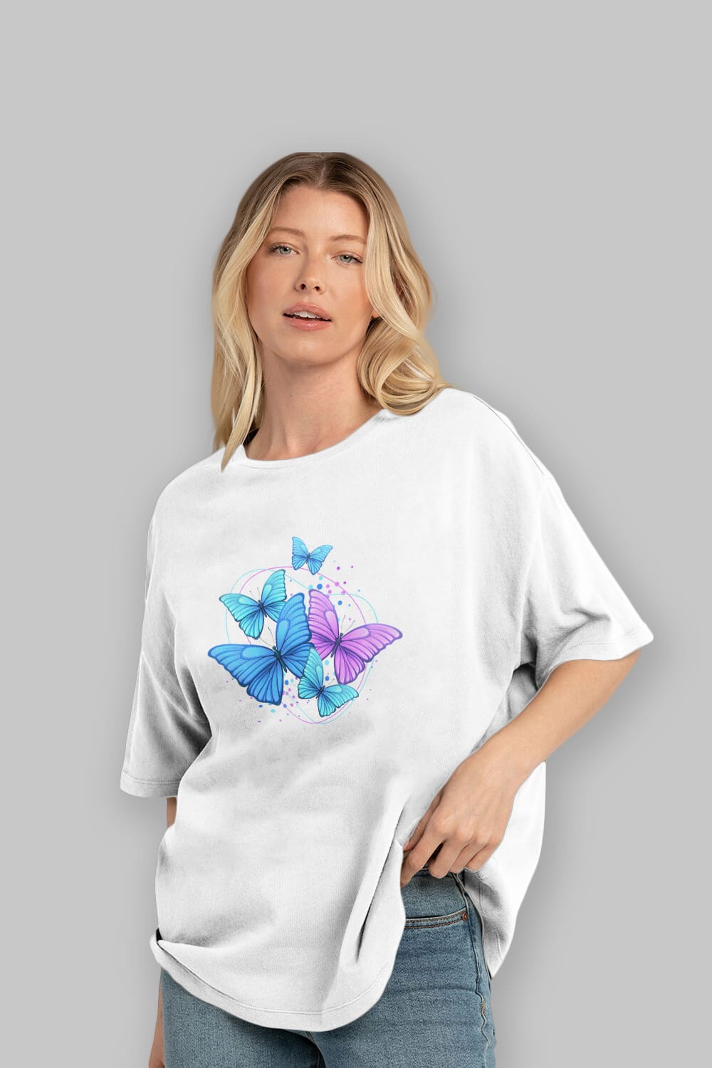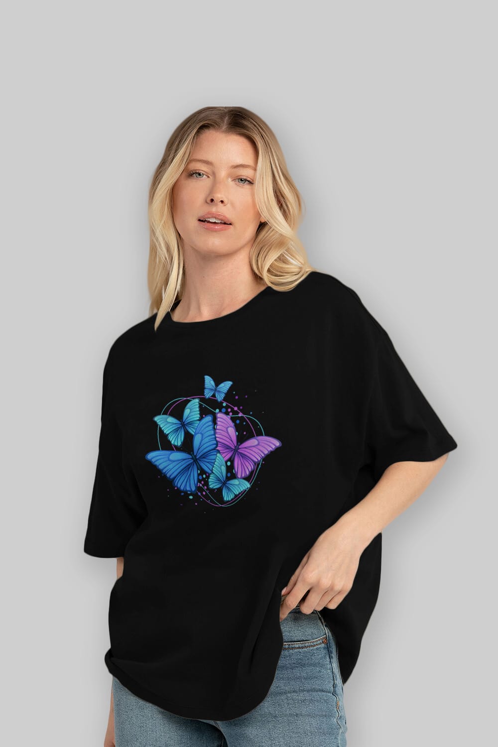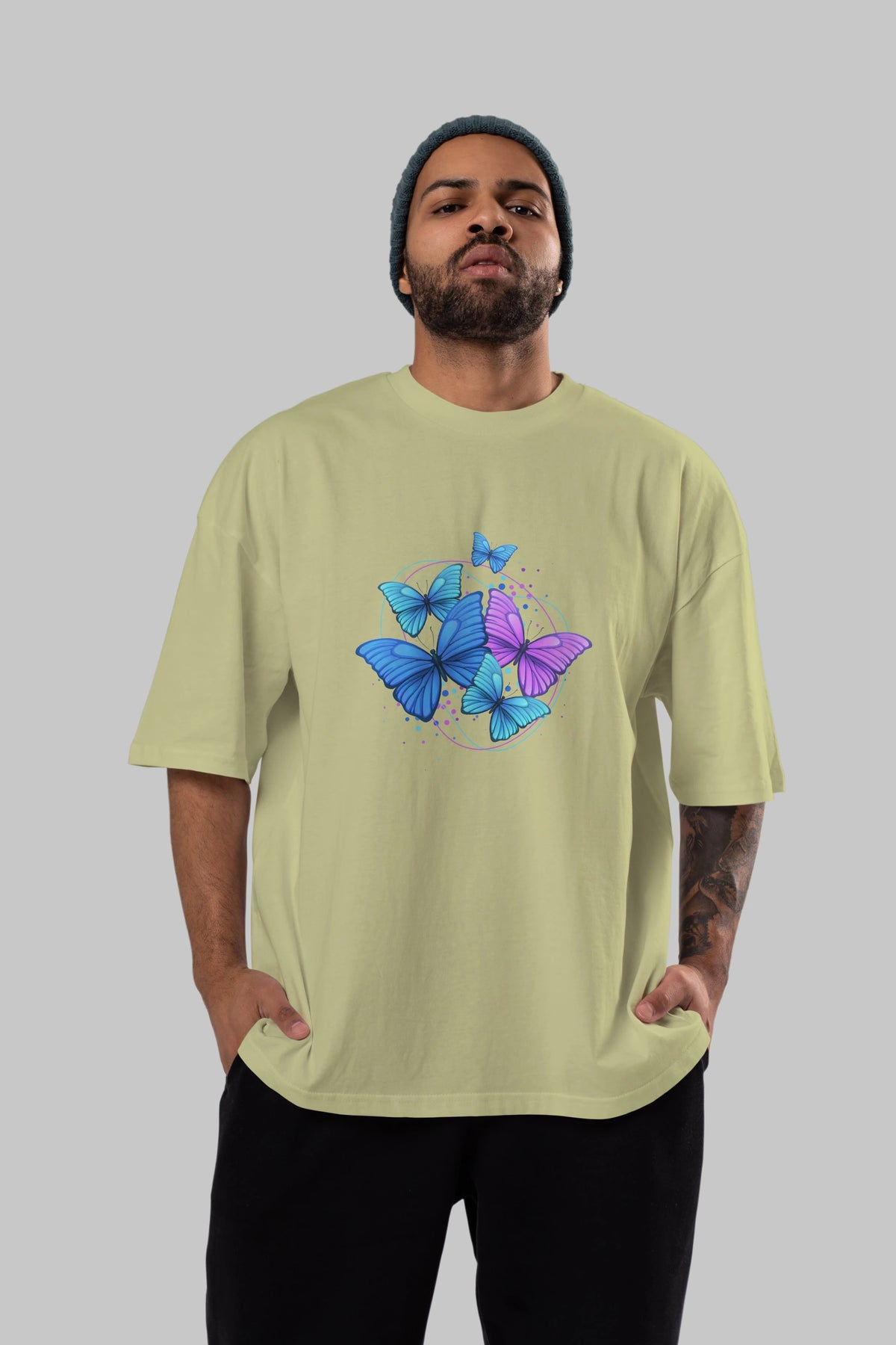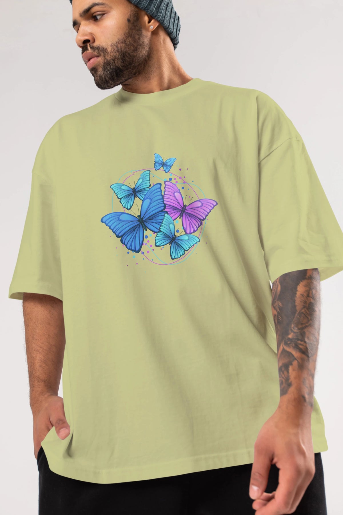 Kelebek Ön Baskılı Oversize t-shirt Erkek Kadın Unisex