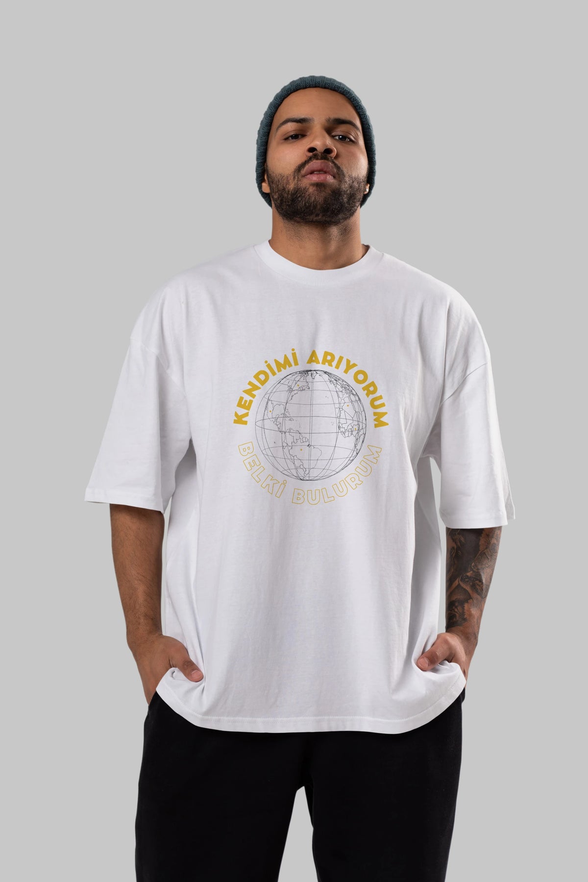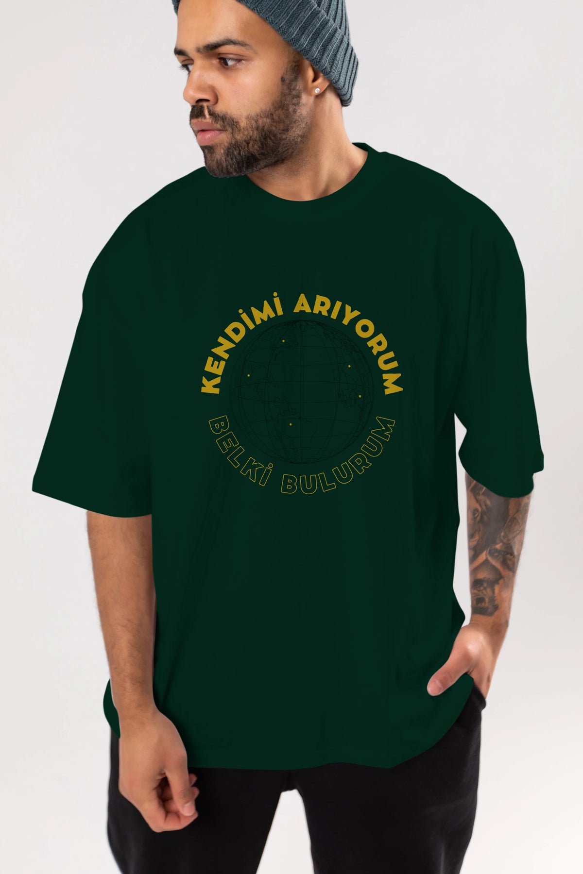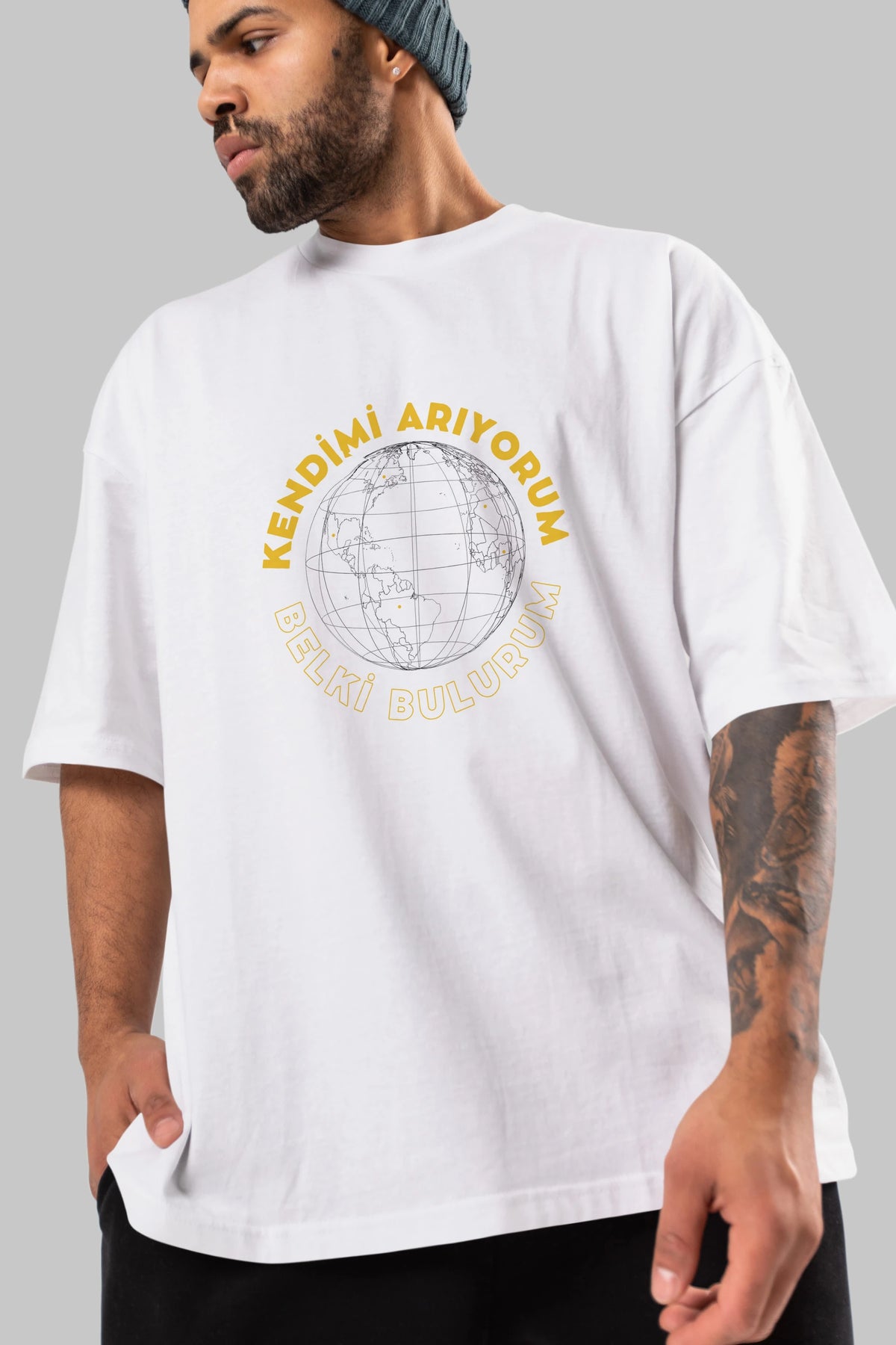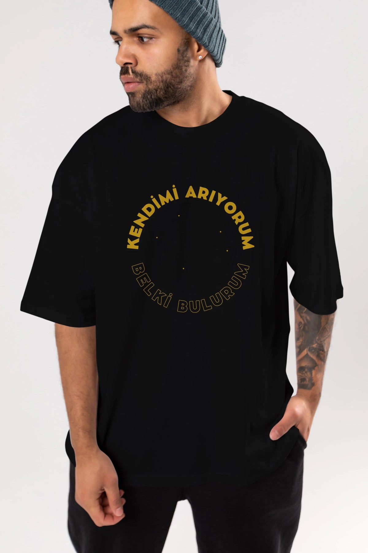 Kendimi Arıyorum Yazılı Ön Baskılı Oversize t-shirt Erkek Kadın Unisex