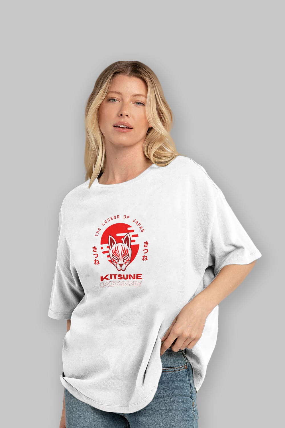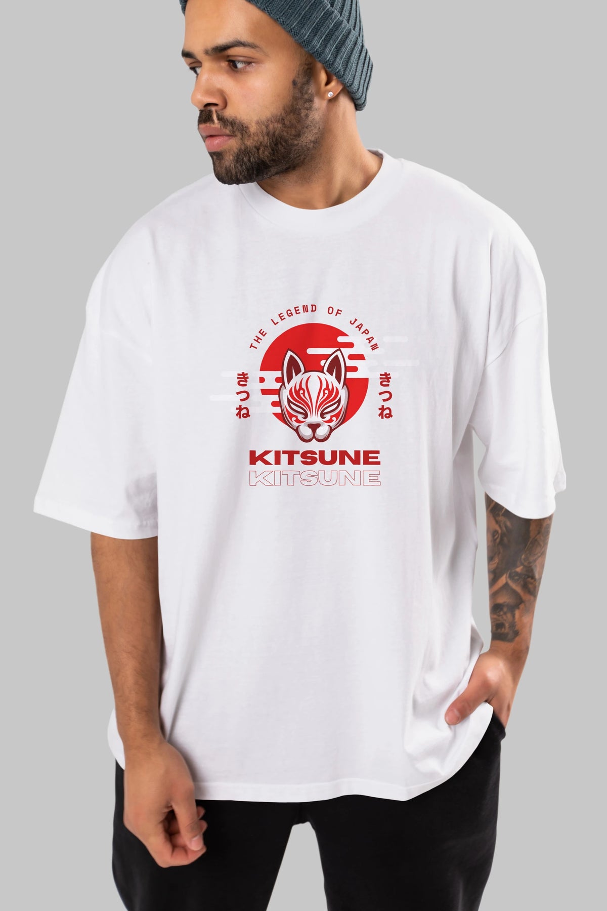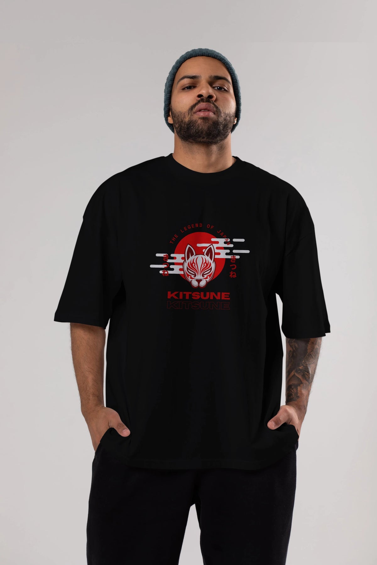 Kitsune Mask Ön Baskılı Oversize t-shirt Erkek Kadın Unisex