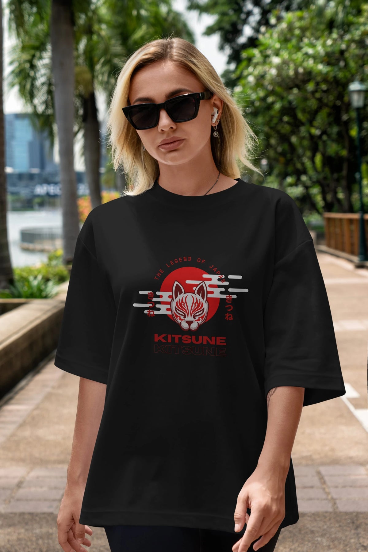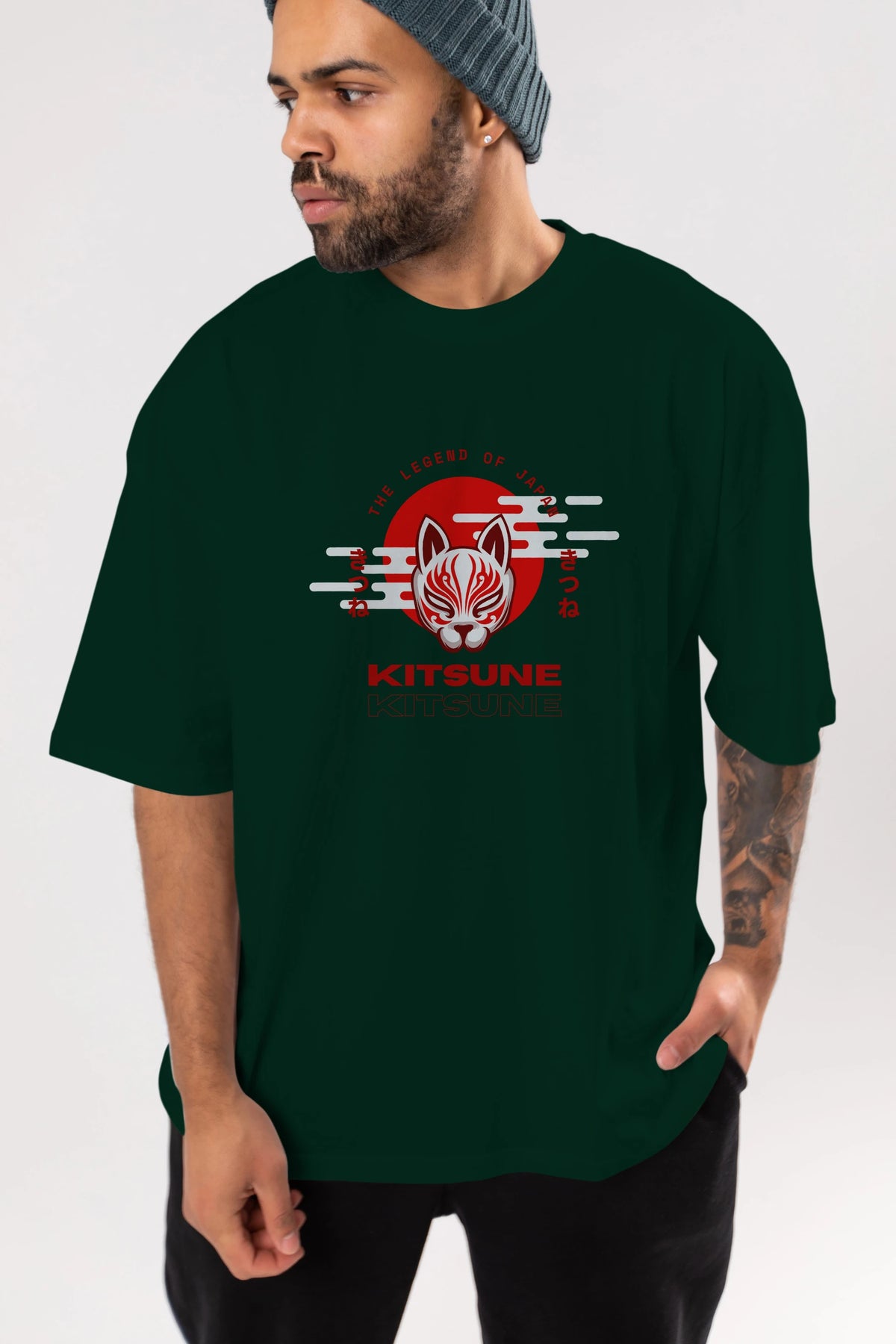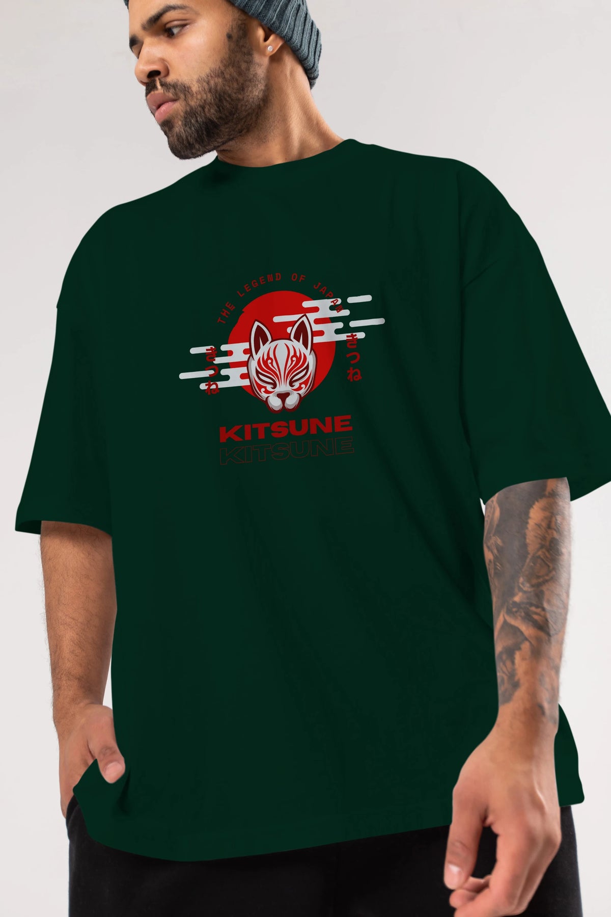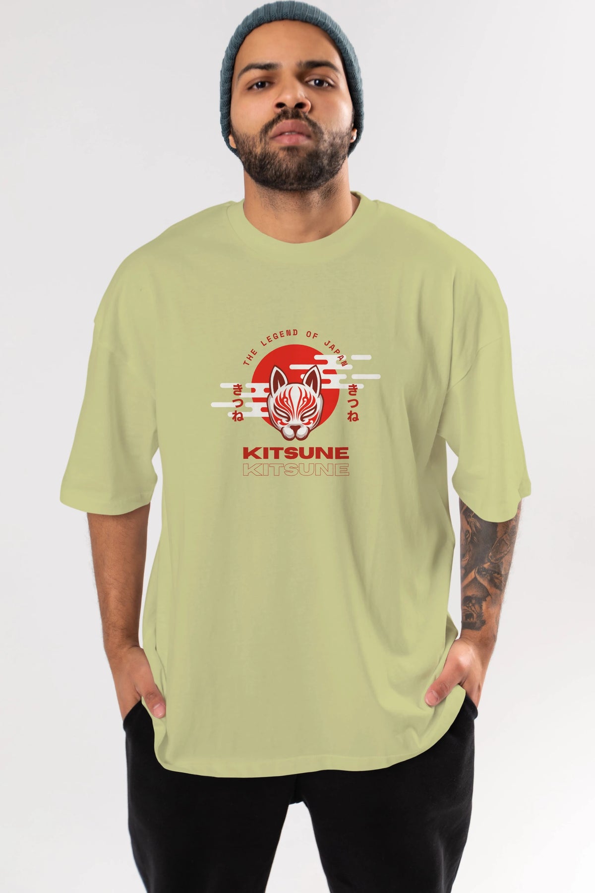 Kitsune Mask Ön Baskılı Oversize t-shirt Erkek Kadın Unisex