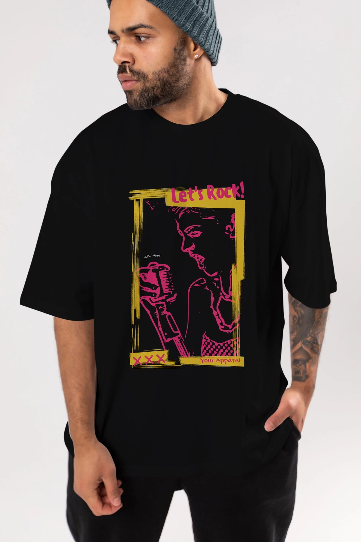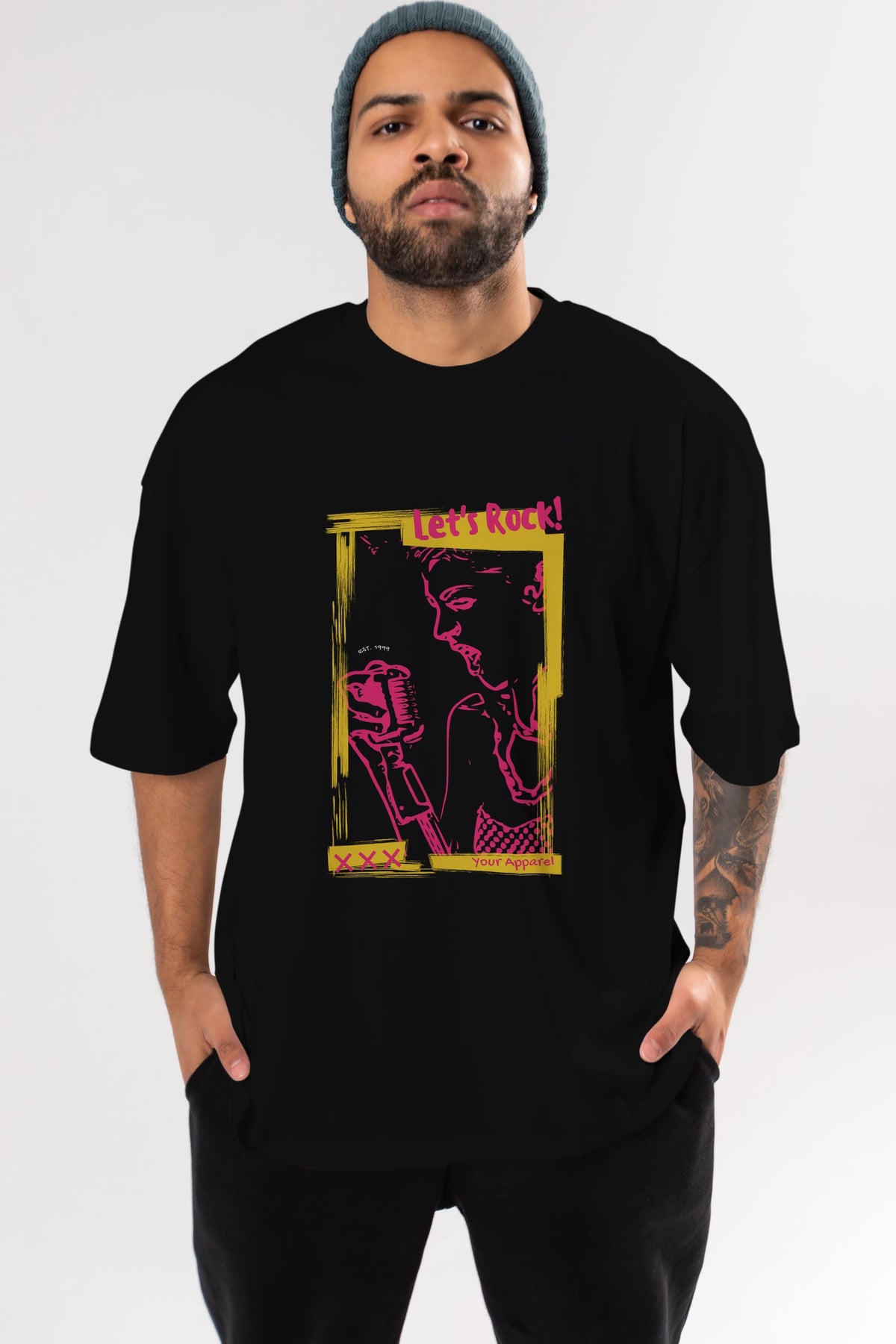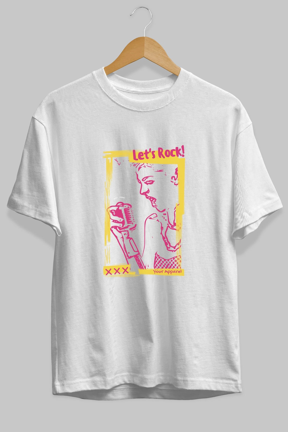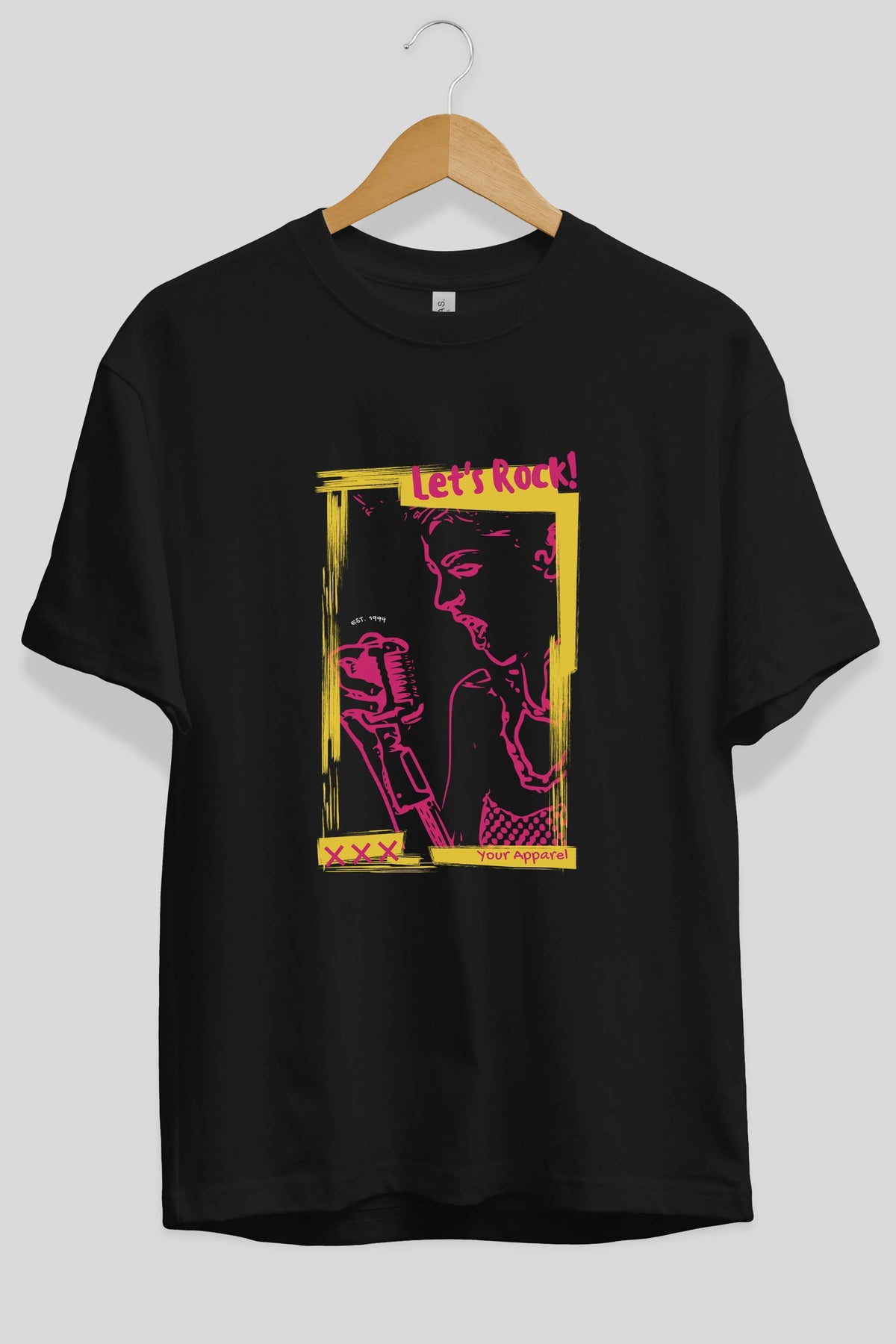 Let's Rock Yazılı Ön Baskılı Oversize t-shirt Erkek Kadın Unisex