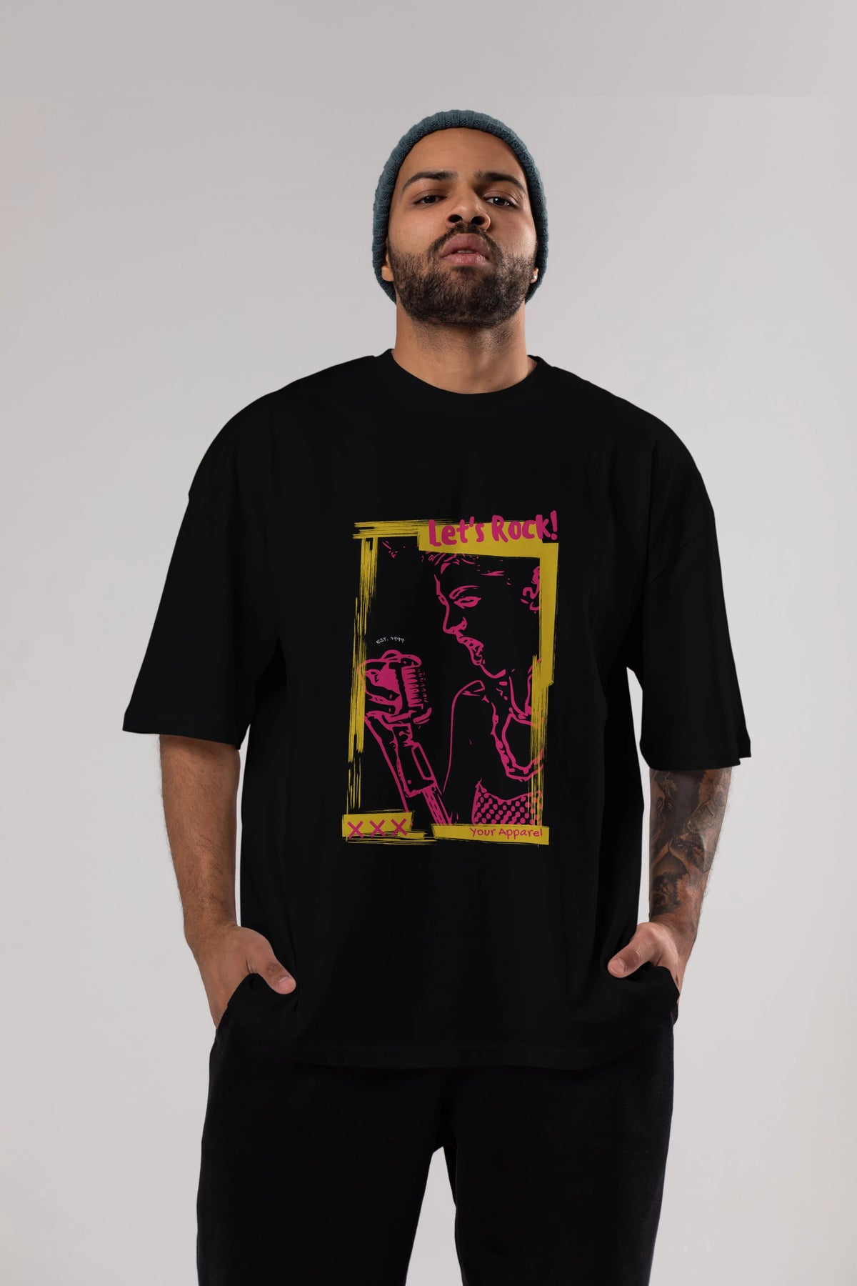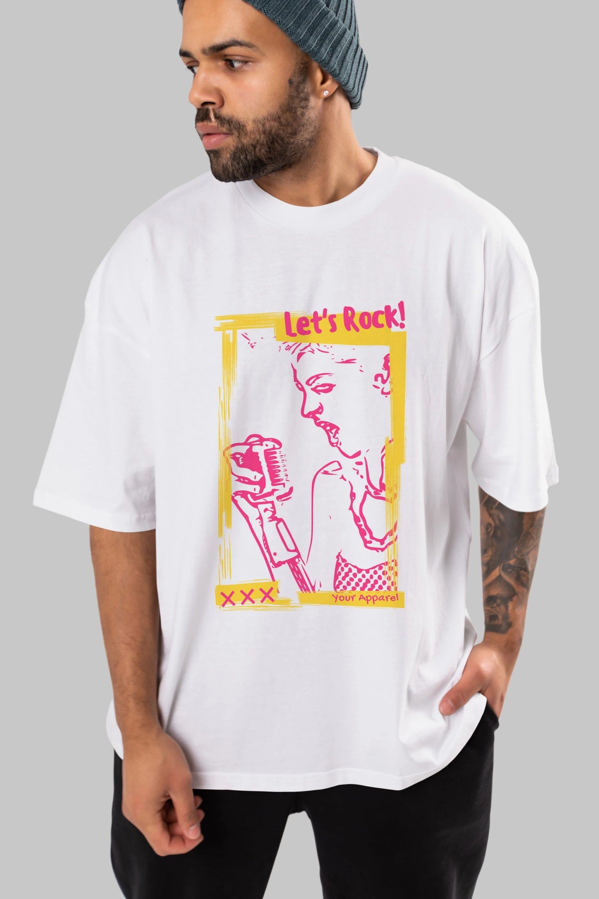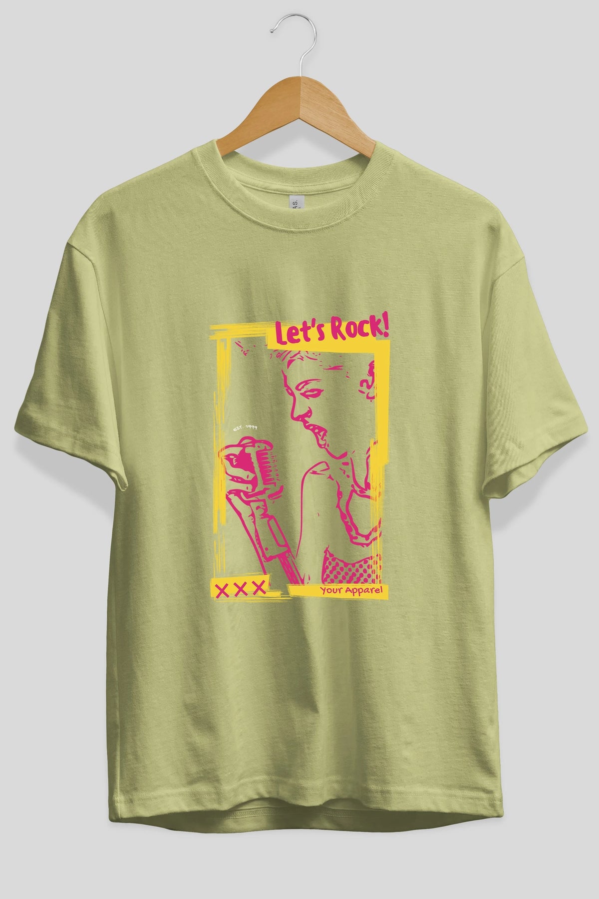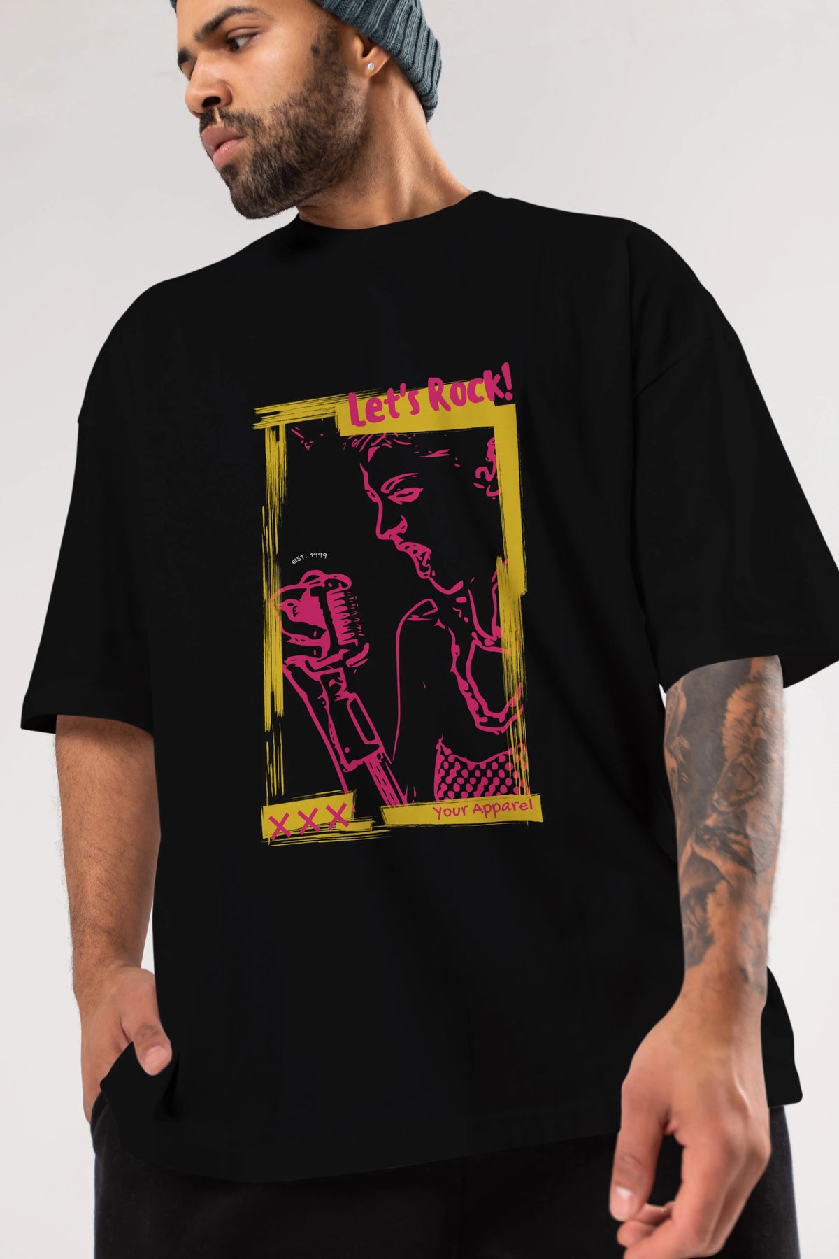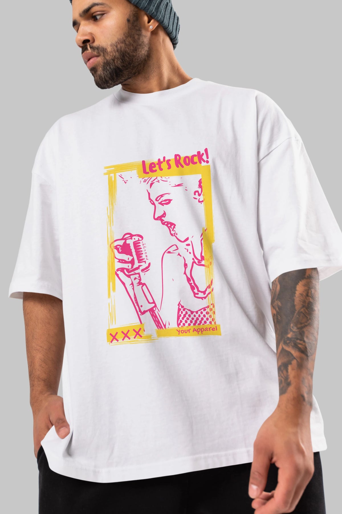 Let's Rock Yazılı Ön Baskılı Oversize t-shirt Erkek Kadın Unisex