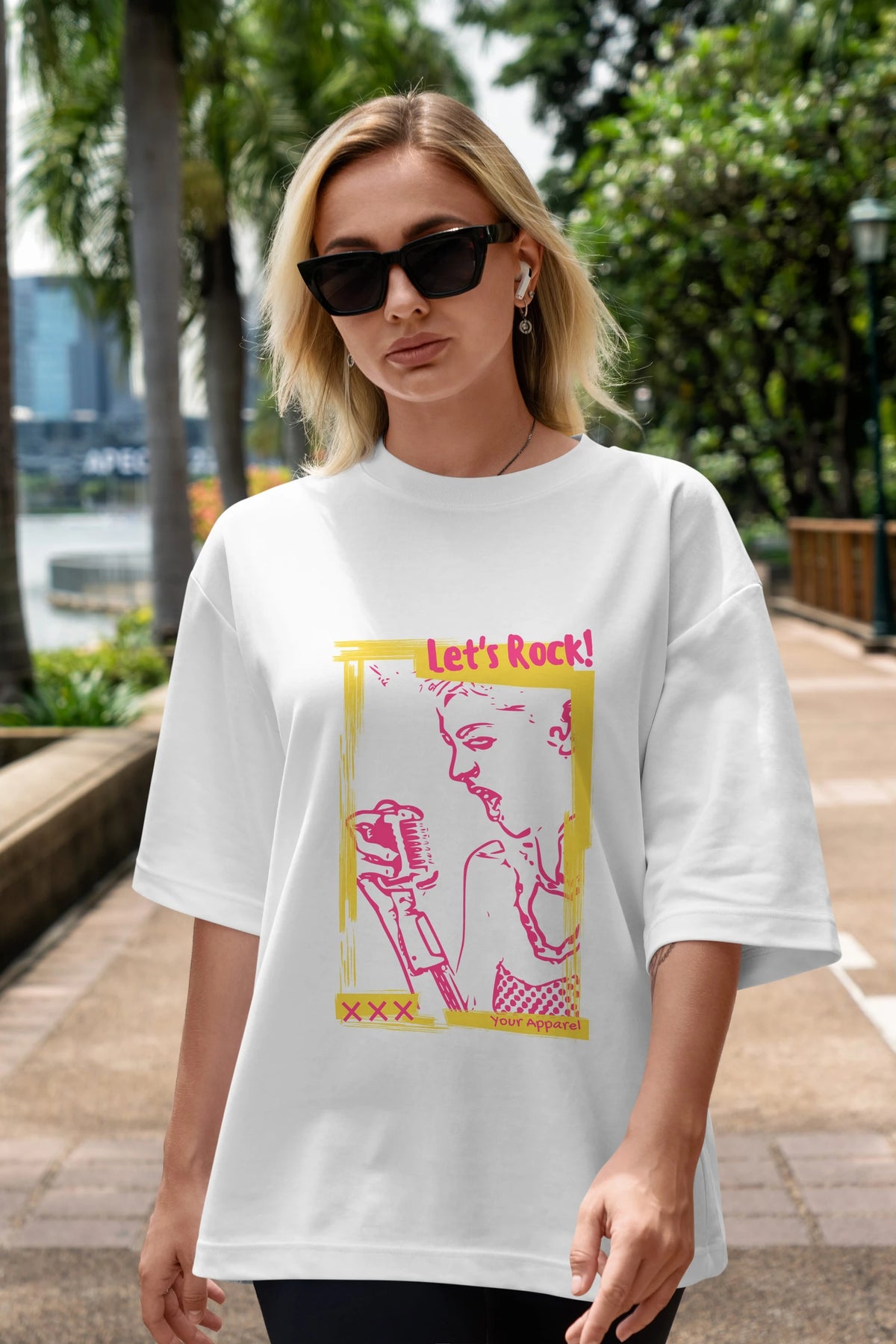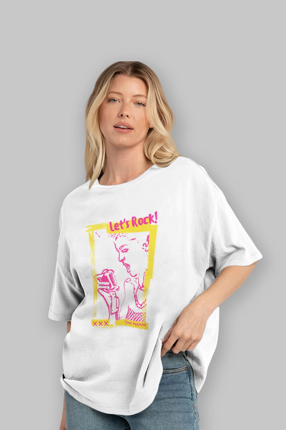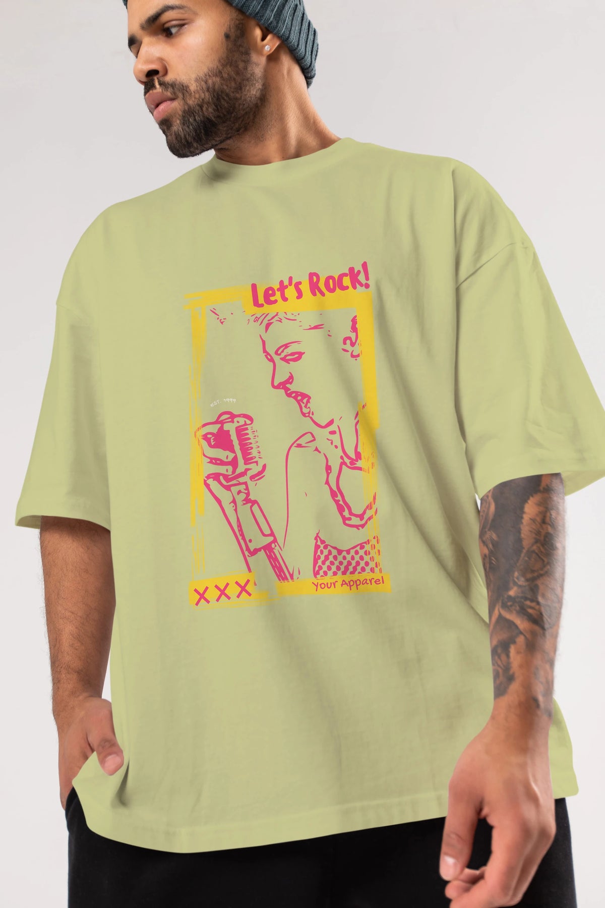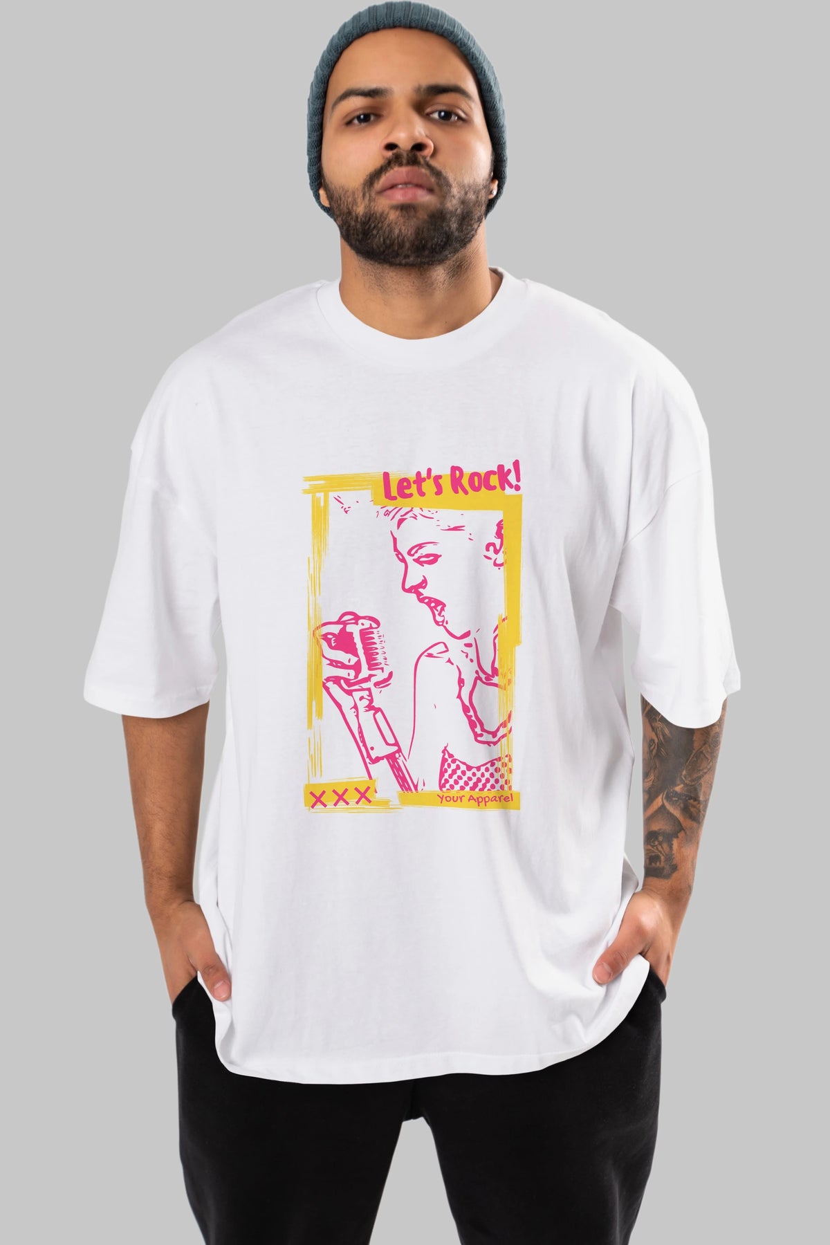 Let's Rock Yazılı Ön Baskılı Oversize t-shirt Erkek Kadın Unisex