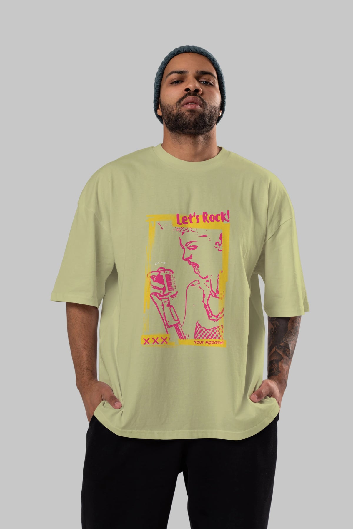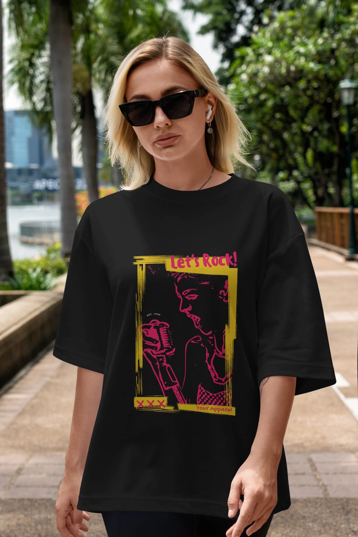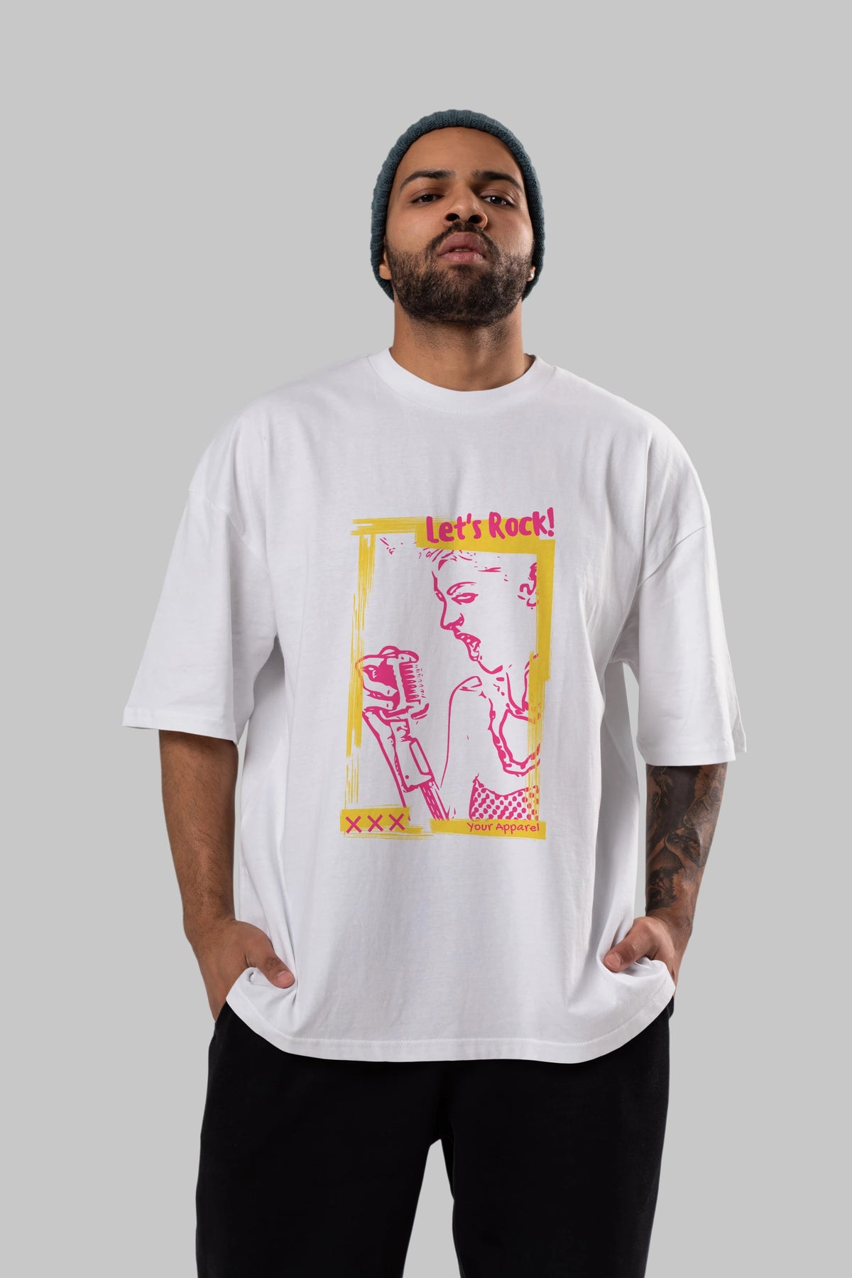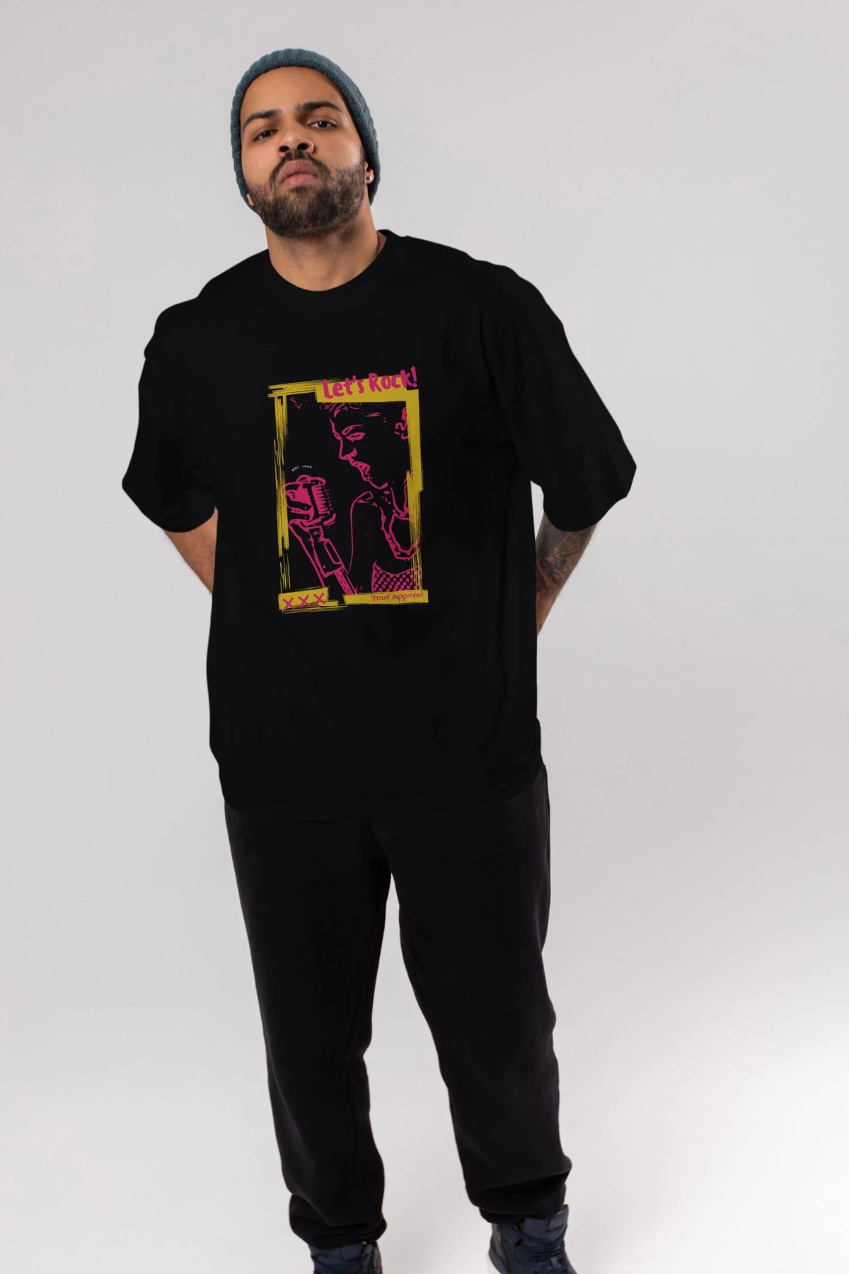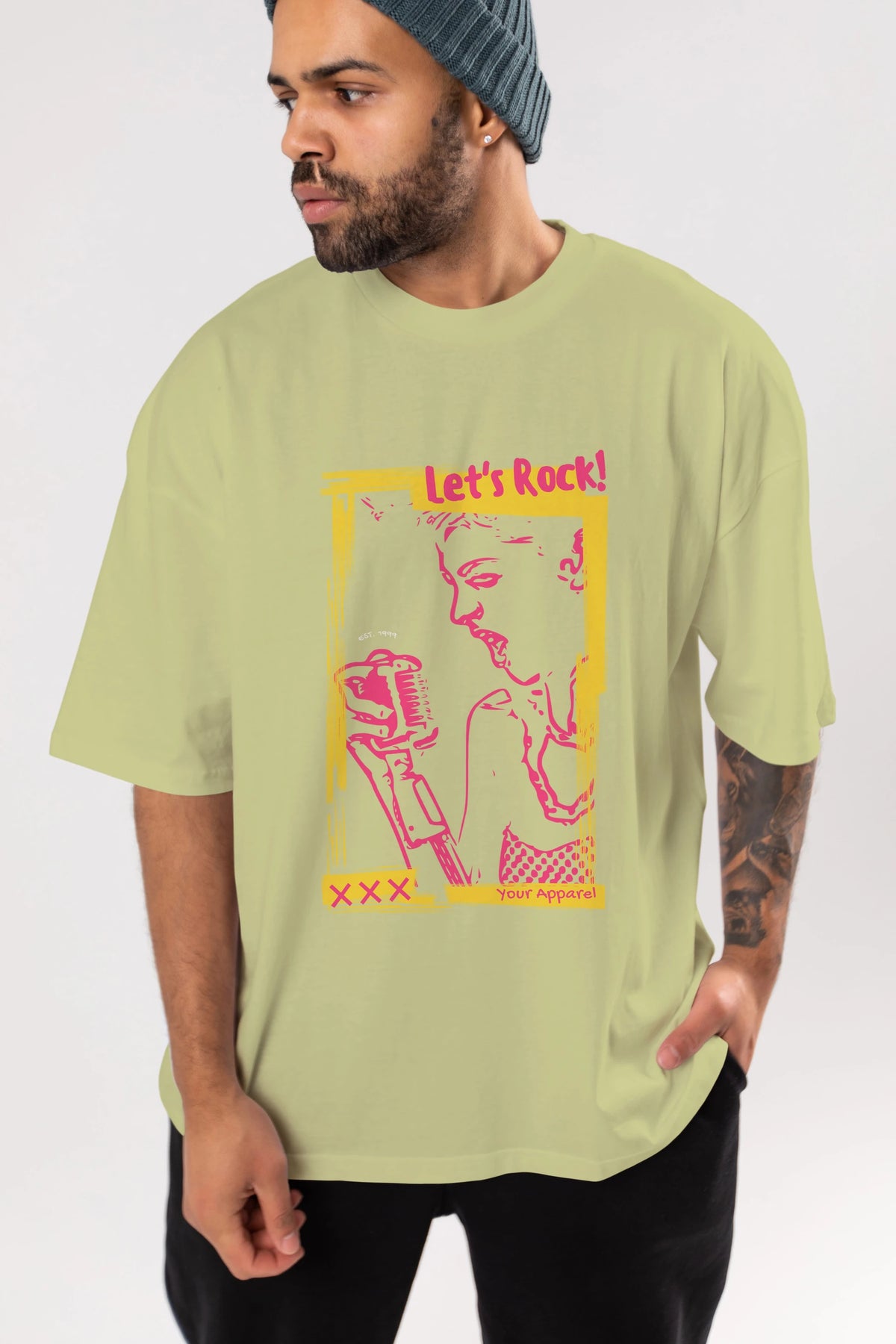 Let's Rock Yazılı Ön Baskılı Oversize t-shirt Erkek Kadın Unisex