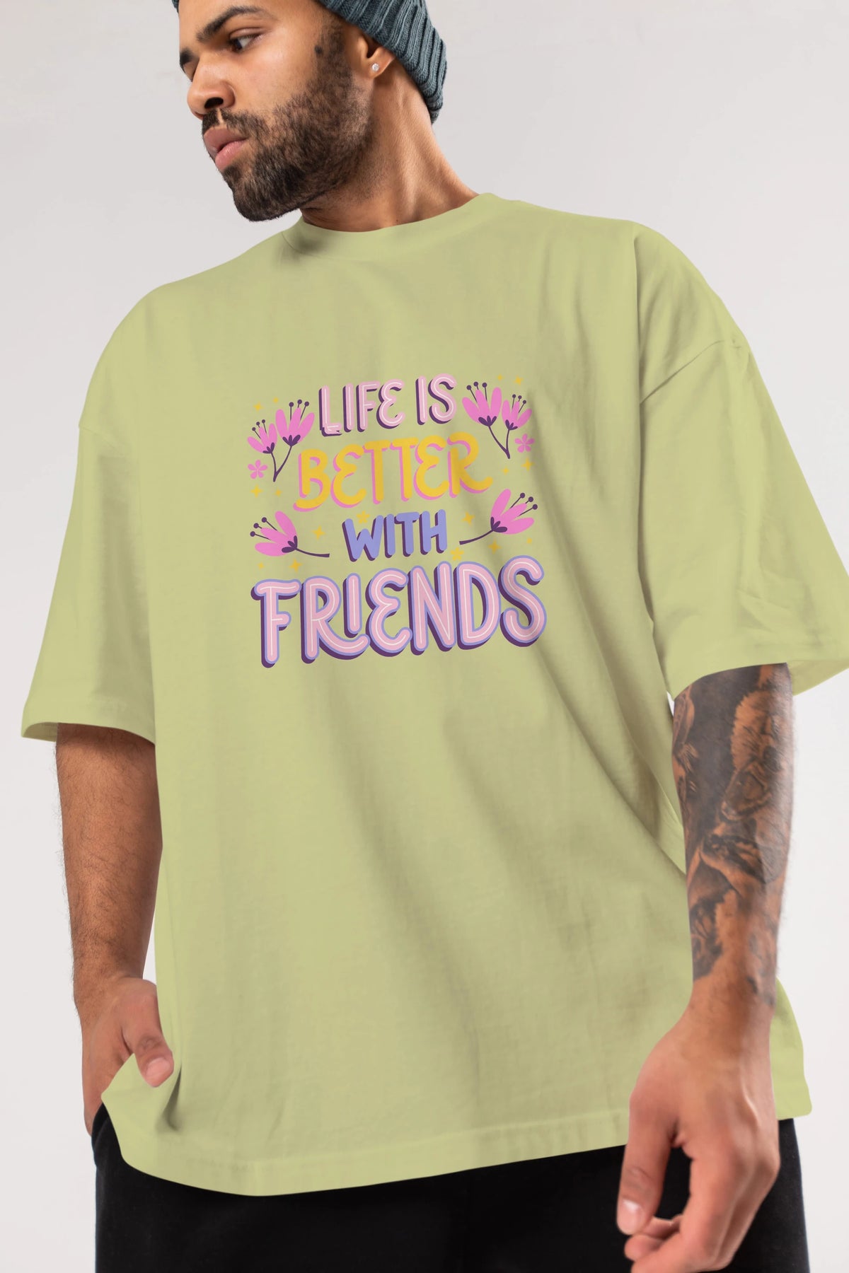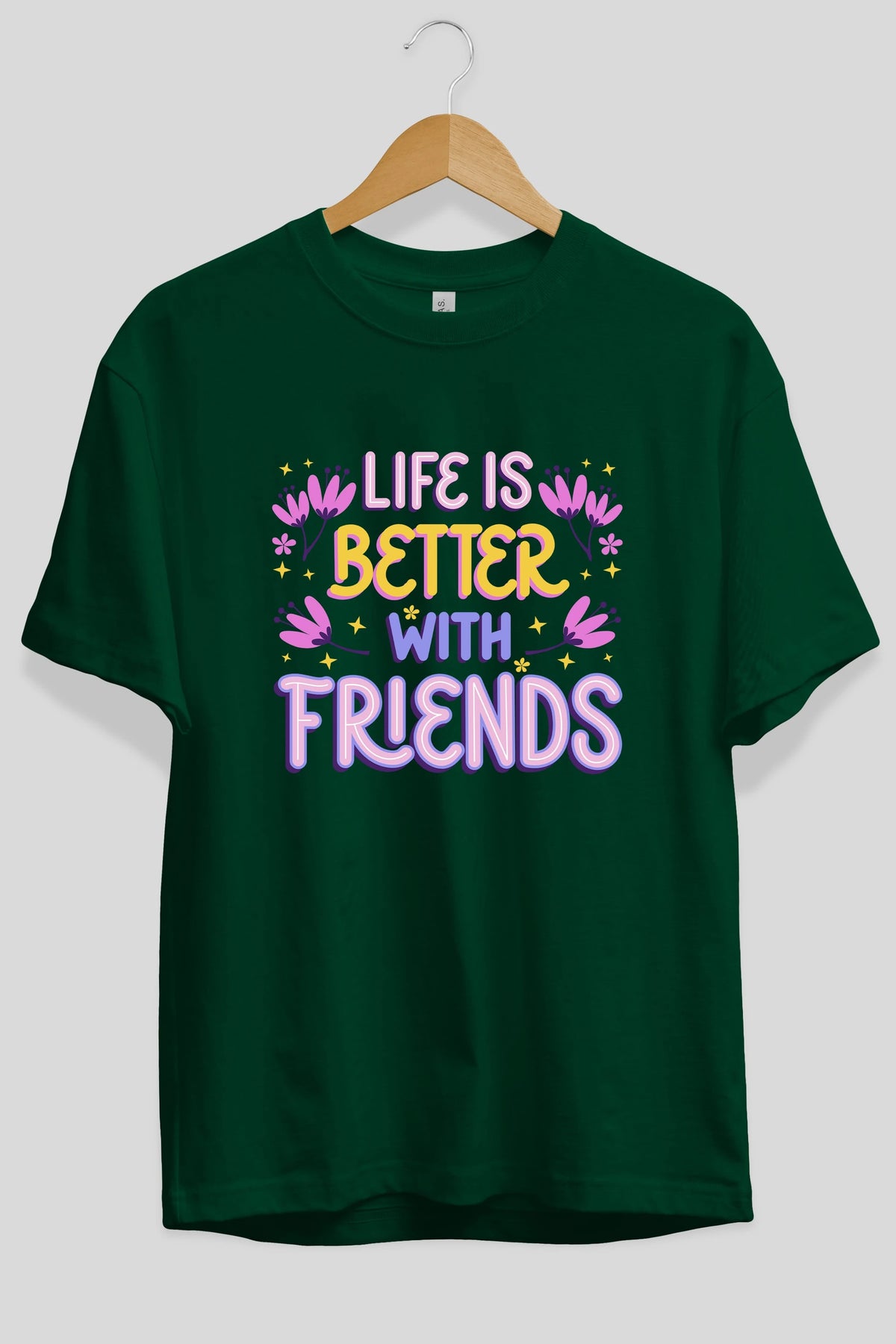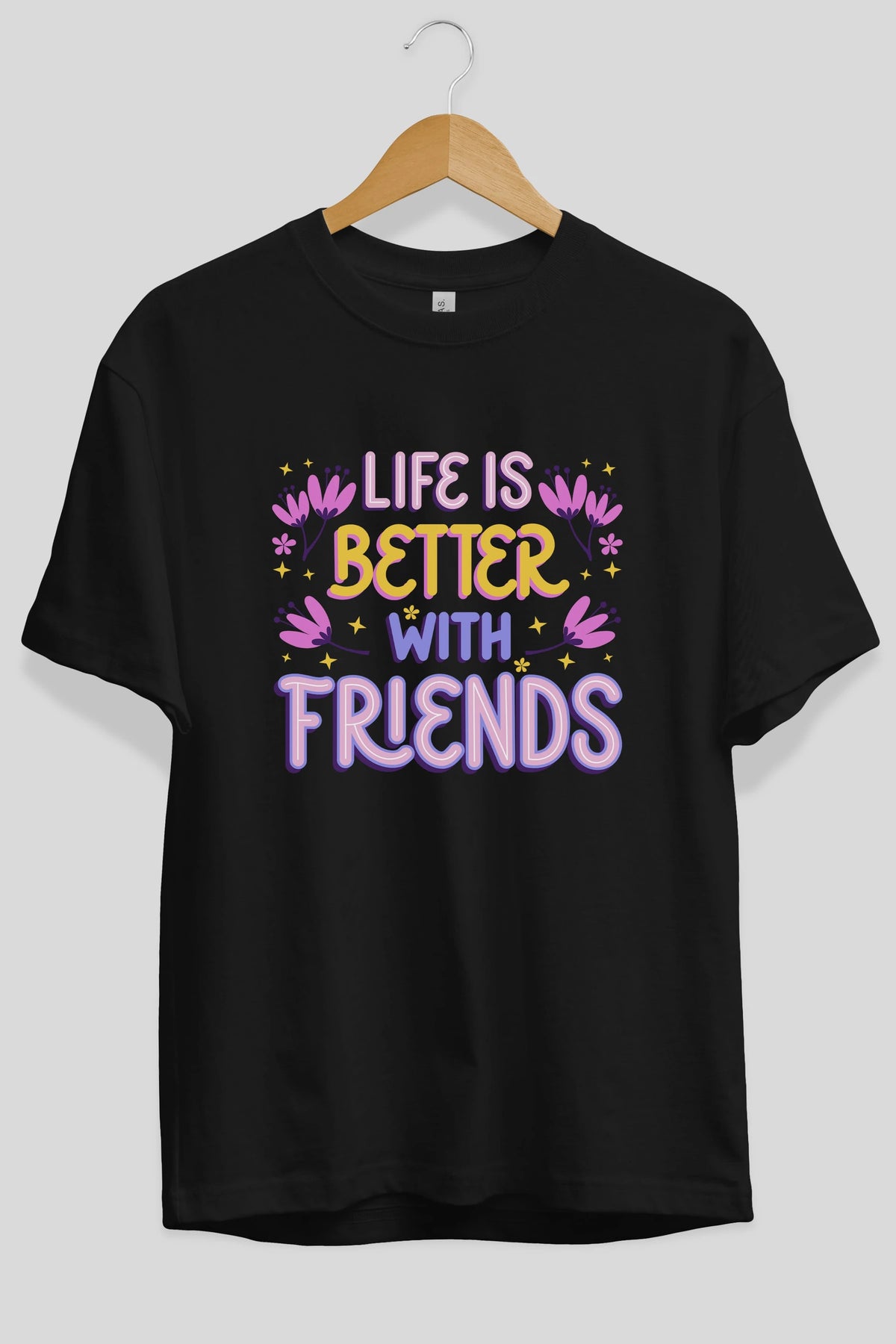 Life is Better With Friends Yazılı Ön Baskılı Oversize t-shirt Erkek Kadın Unisex