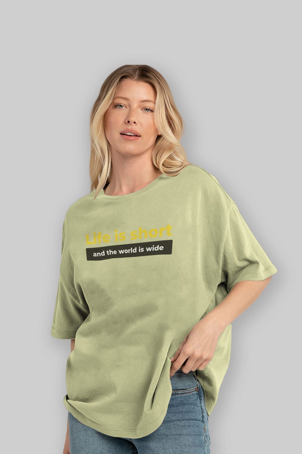 Life is Short Yazılı Ön Baskılı Oversize t-shirt Erkek Kadın Unisex