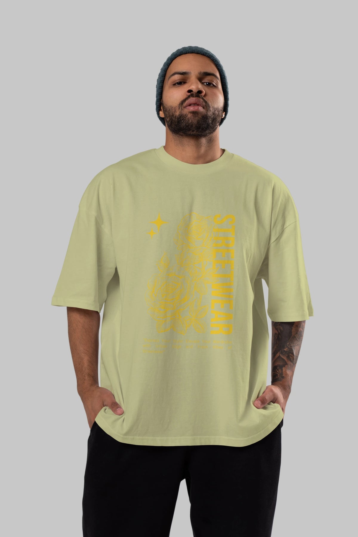 Unisex Baskılı Oversize t-shirt, gardırobunuza mükemmel bir ektir. Yumuşak ve hafif kumaştan üretilen bu şık tişort, kısa kollu ve Oversize uyumu ile tamamlanan klasik bir tasarımına sahiptir. Canlı baskılı grafikler, kalabalığın arasından şık bir şekilde sıyrılmanızı sağlayacaktır. Günlük giyim veya özel günler için mükemmel olan bu çok yönlü tişört, kısa sürede favorilerinizden biri haline gelecektir.