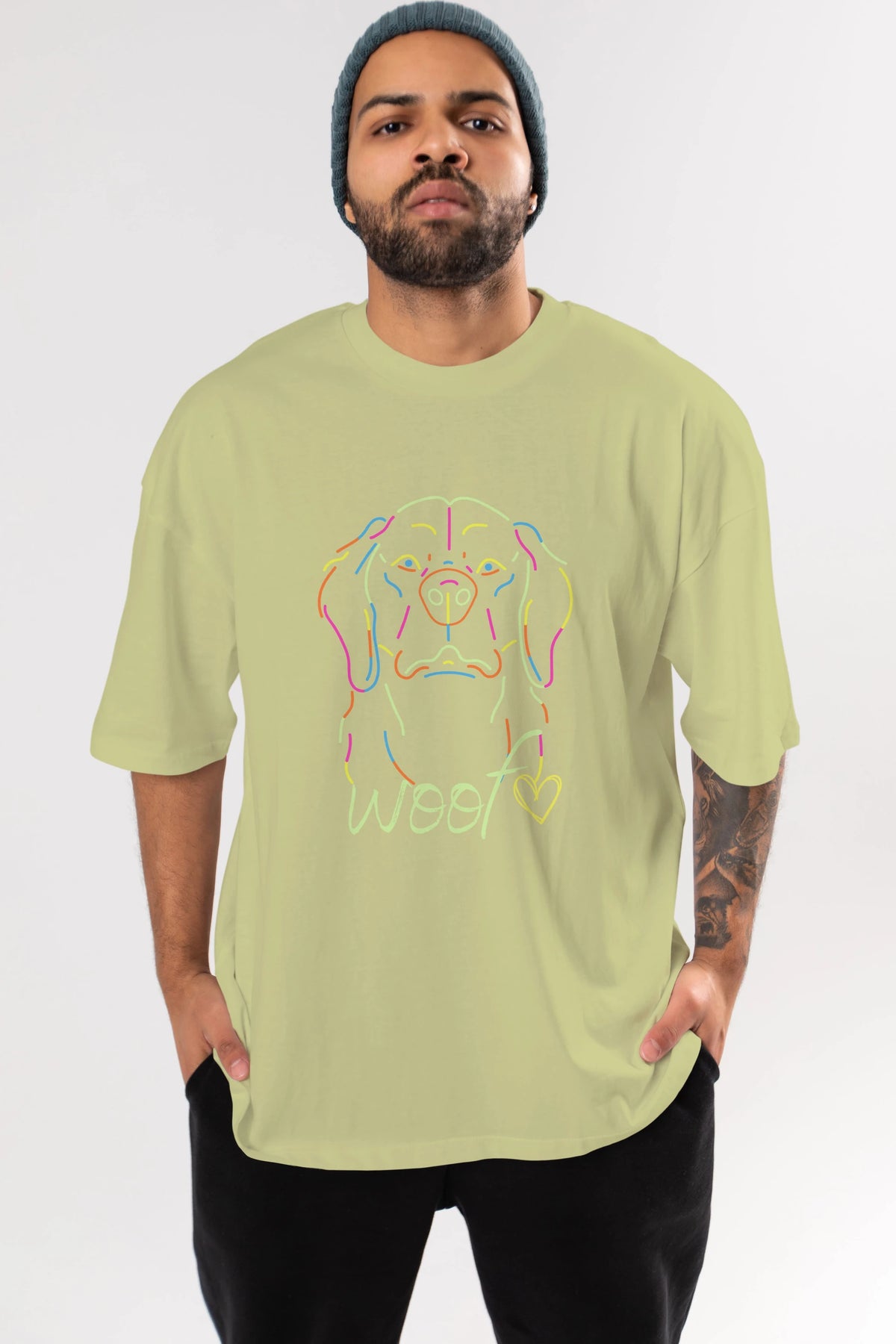 Neon Dog Ön Baskılı Oversize t-shirt Erkek Kadın Unisex