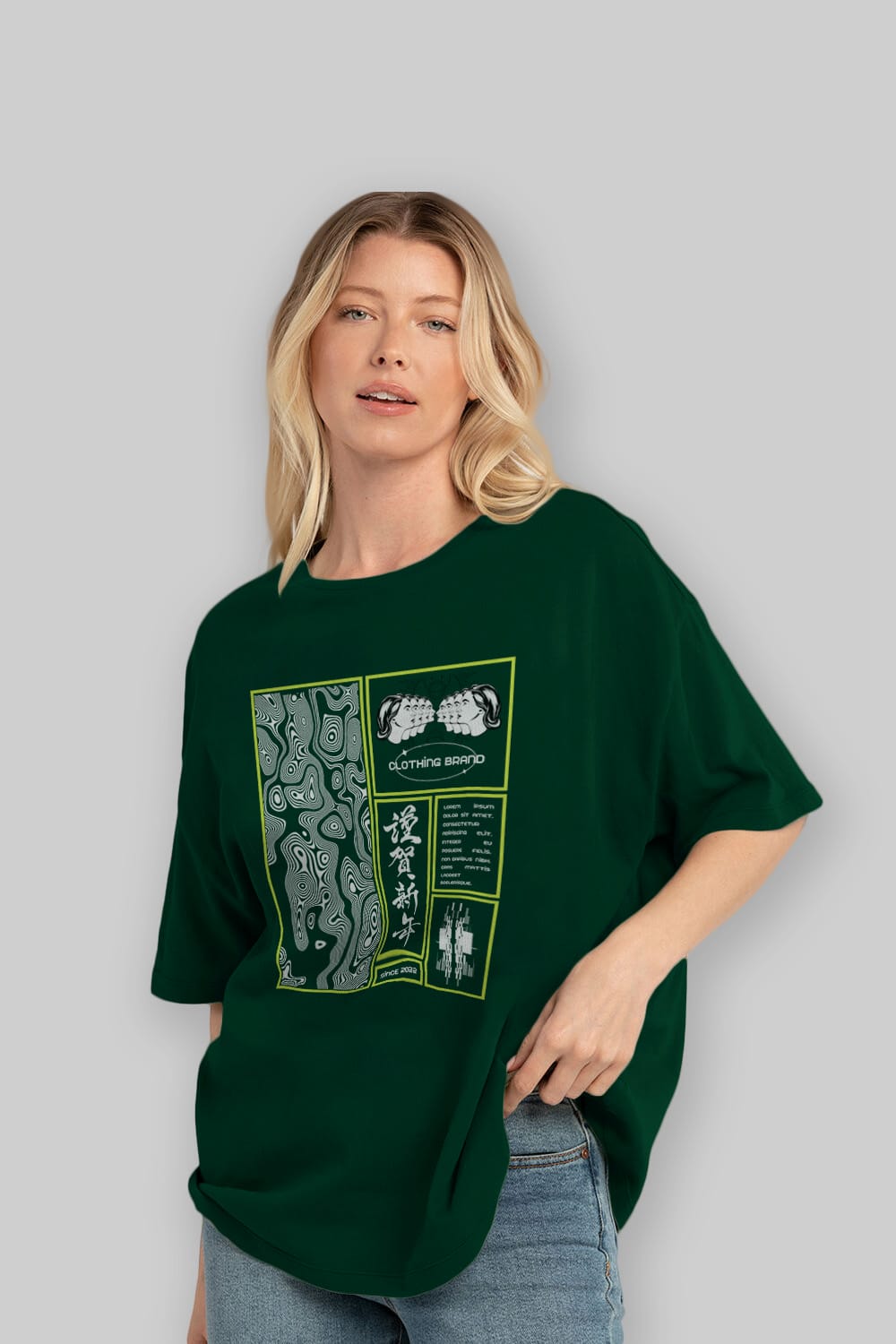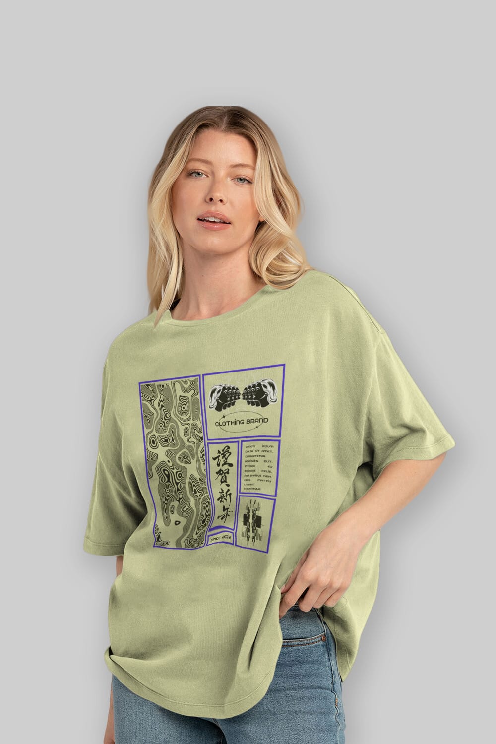 Hem erkekler hem de kadınlar için uygun, taze, modern bir baskıya sahip baskılı oversize t-shirt.