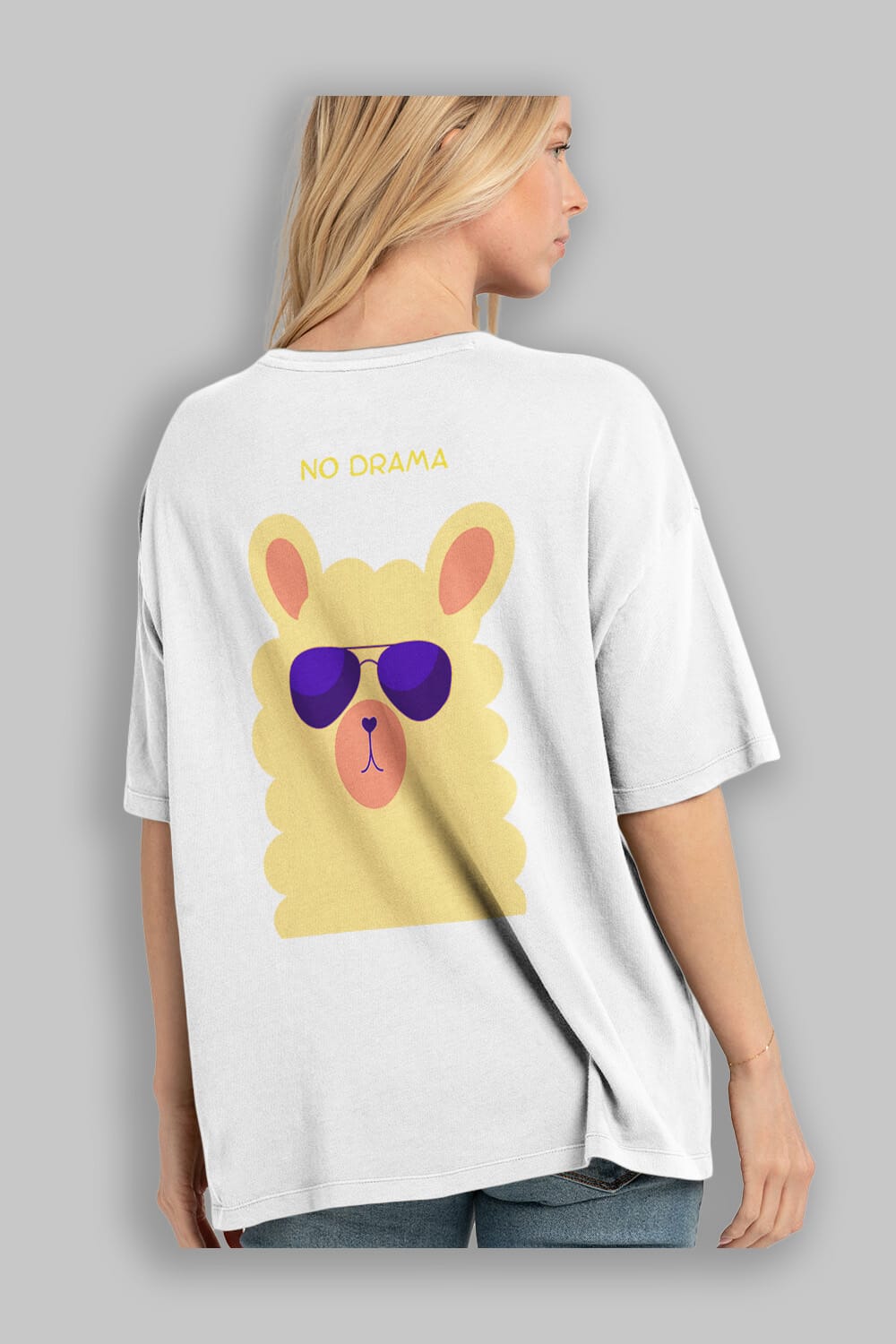 No Drama Yazılı Lama Arka Baskılı Oversize t-shirt Erkek Kadın Unisex