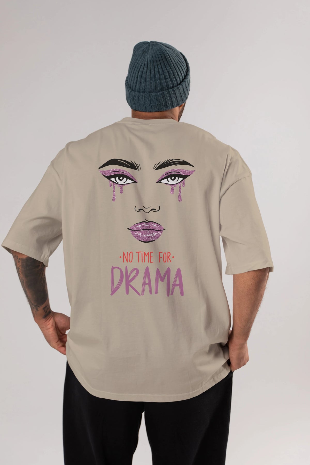 No Time for Drama Yazılı Arka Baskılı Oversize t-shirt Erkek Kadın Unisex