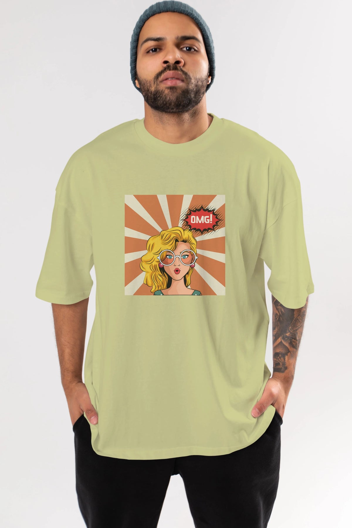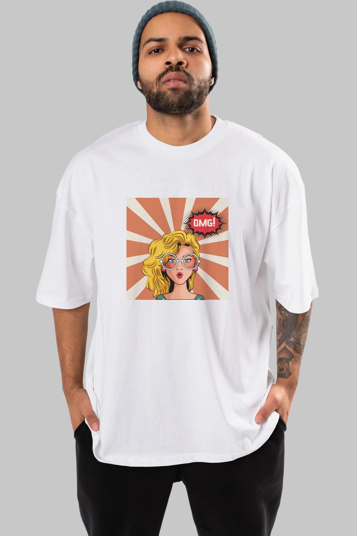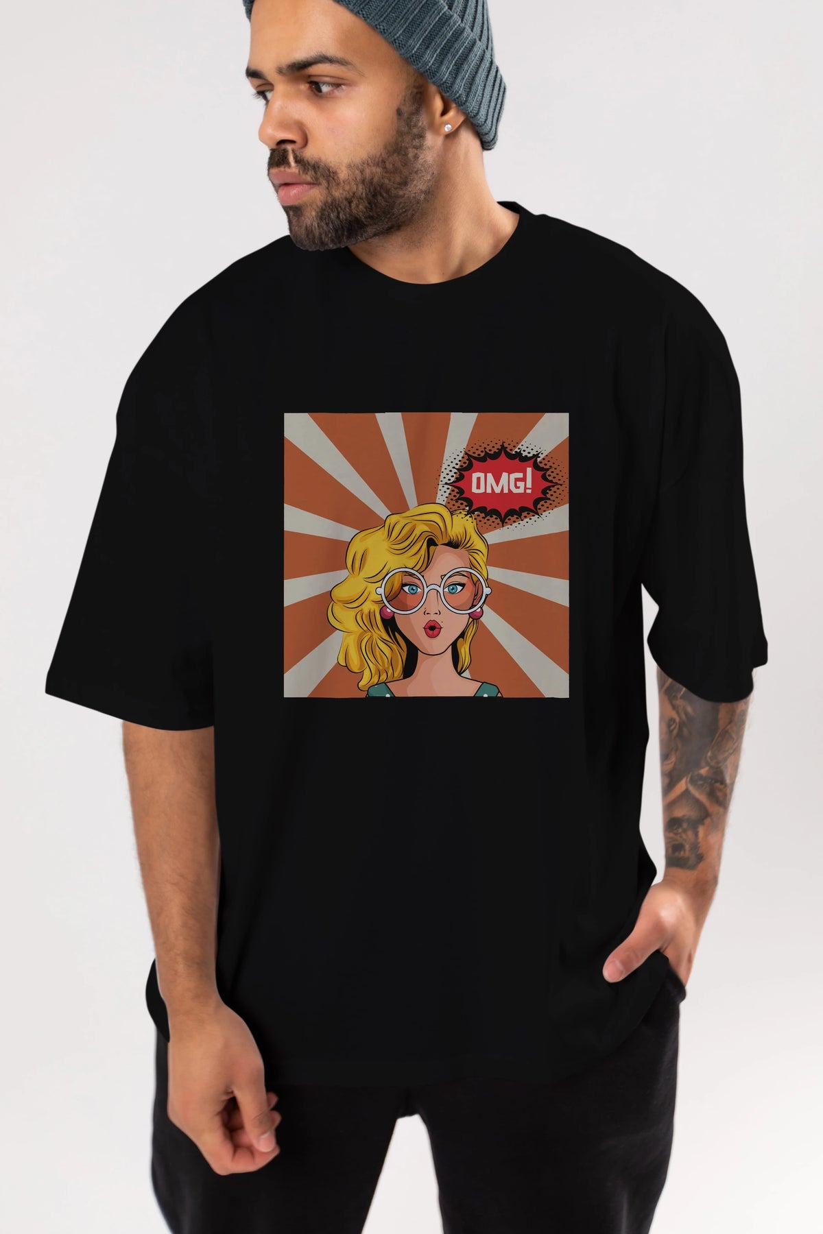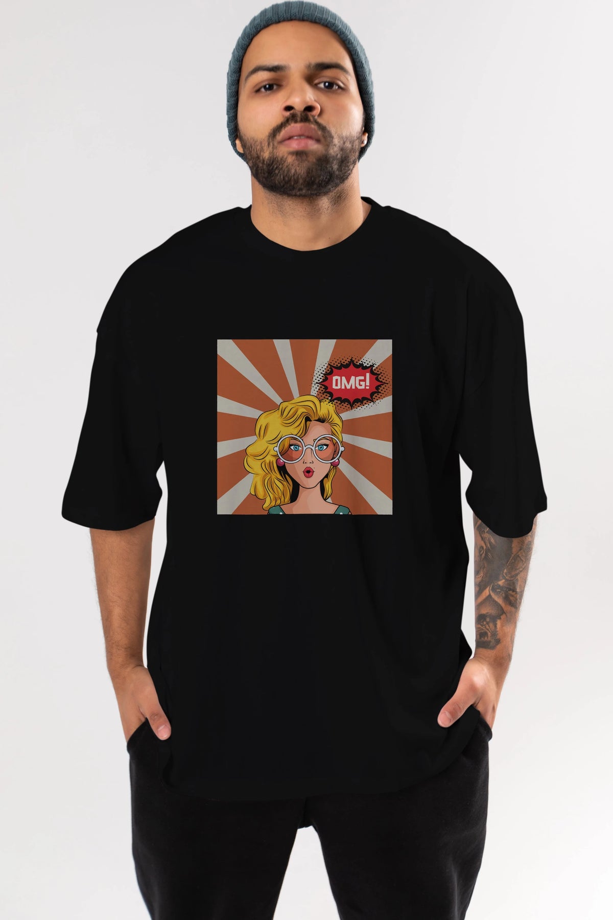OMG Yazılı Retro Ön Baskılı Oversize t-shirt Erkek Kadın Unisex