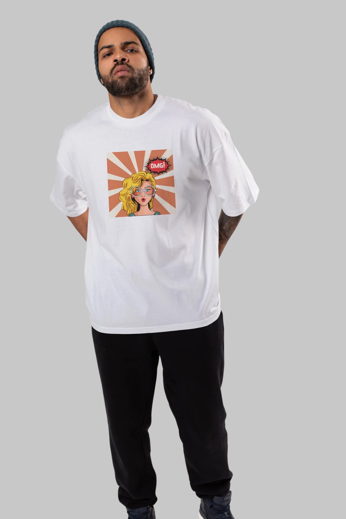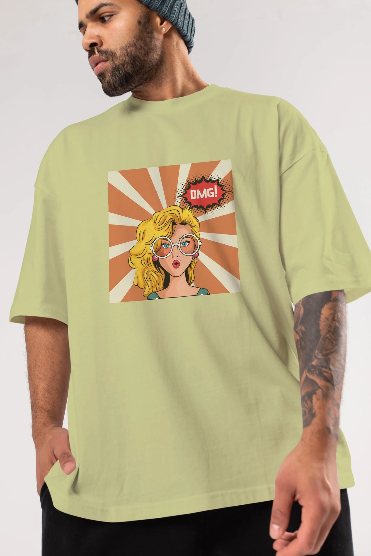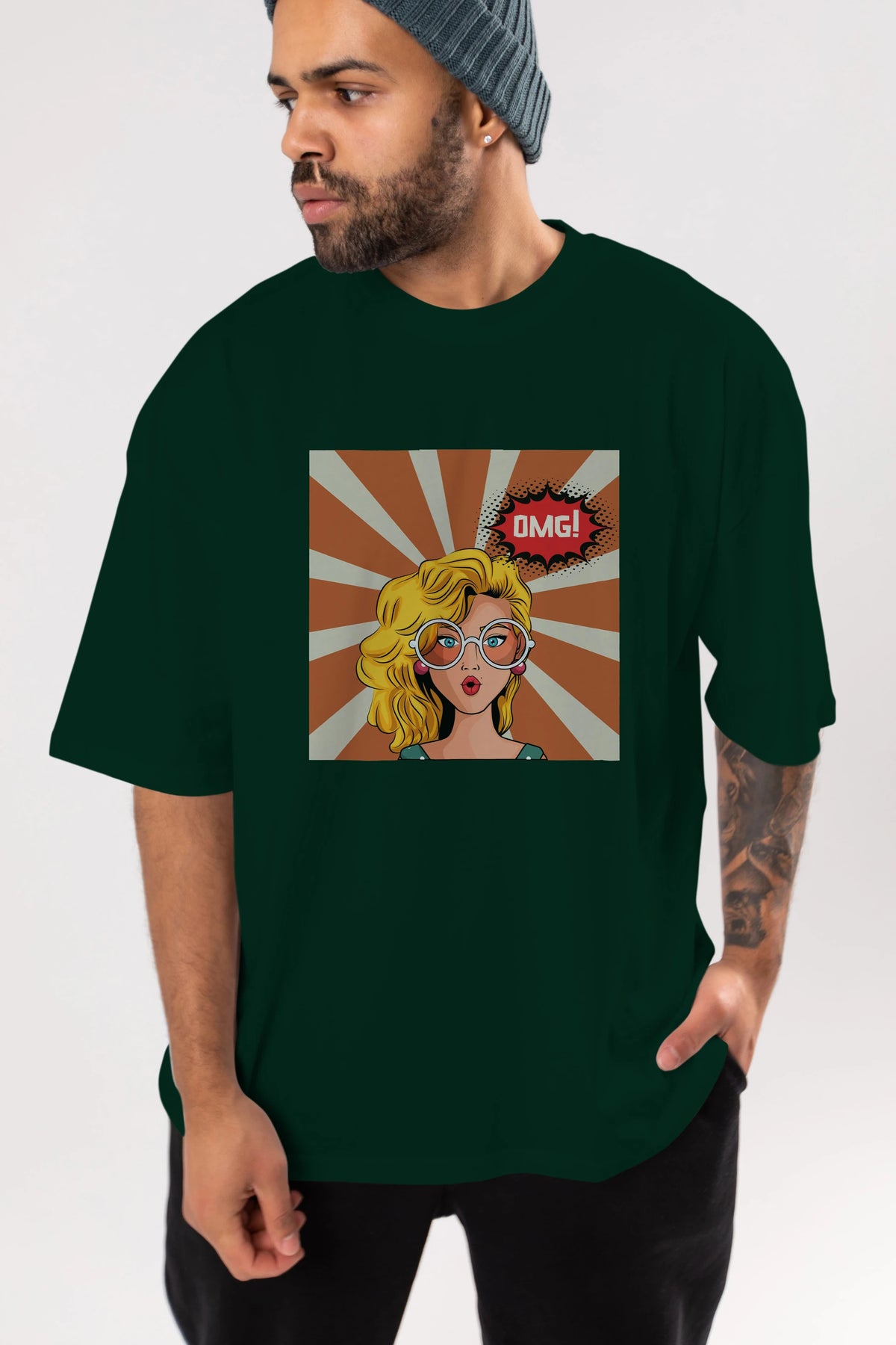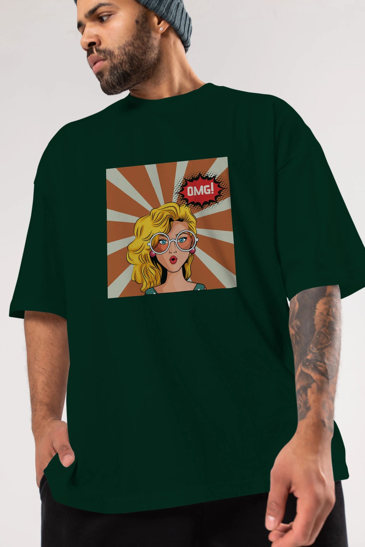 OMG Yazılı Retro Ön Baskılı Oversize t-shirt Erkek Kadın Unisex