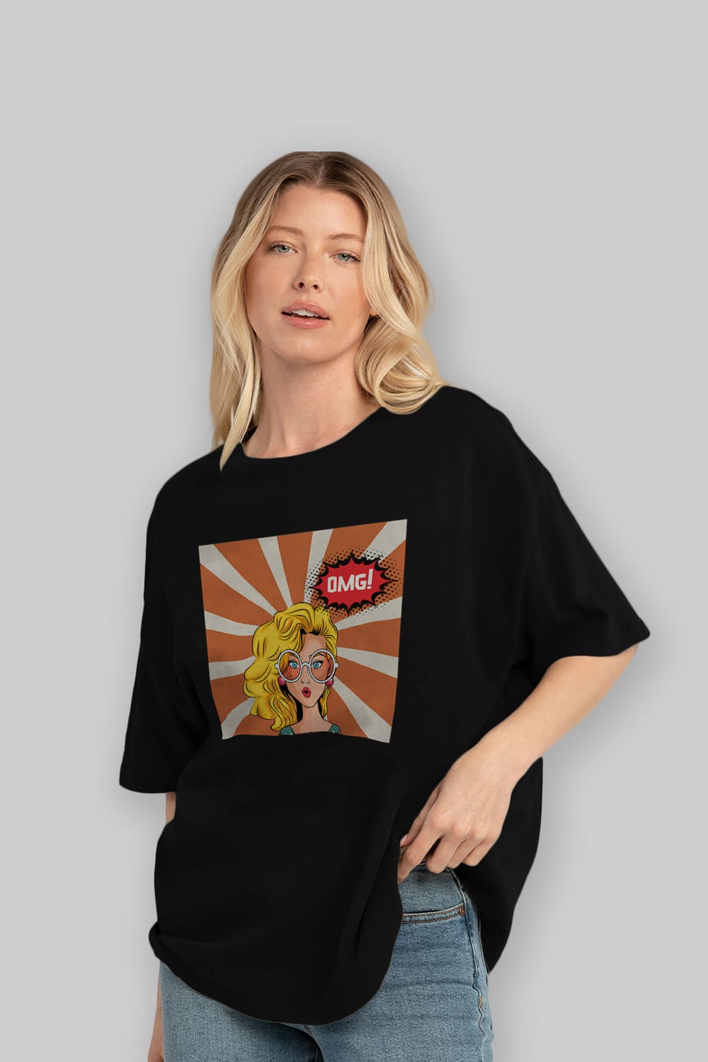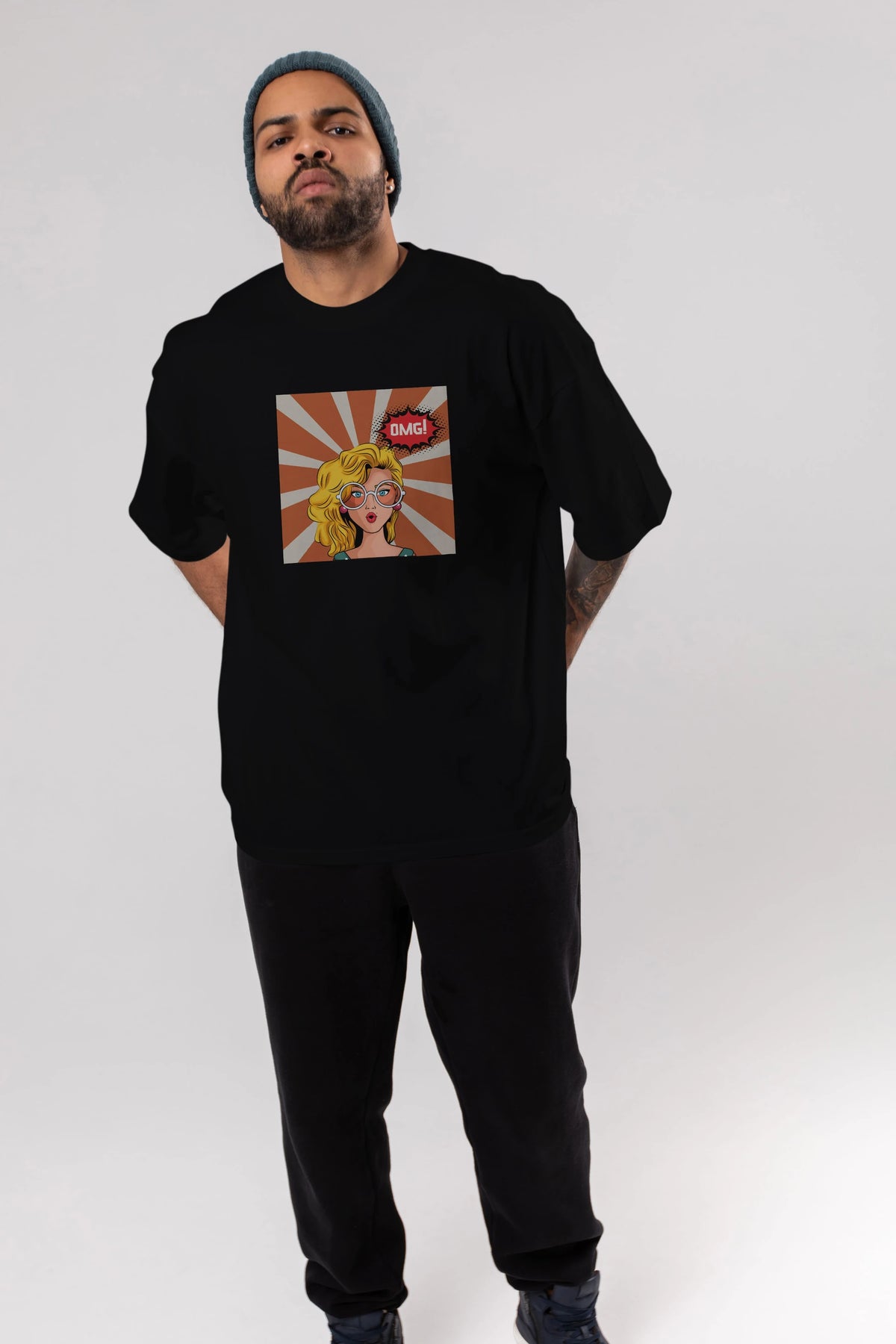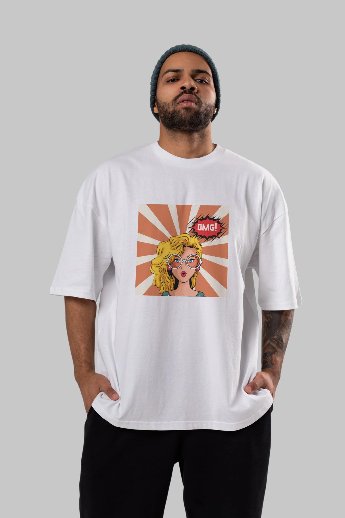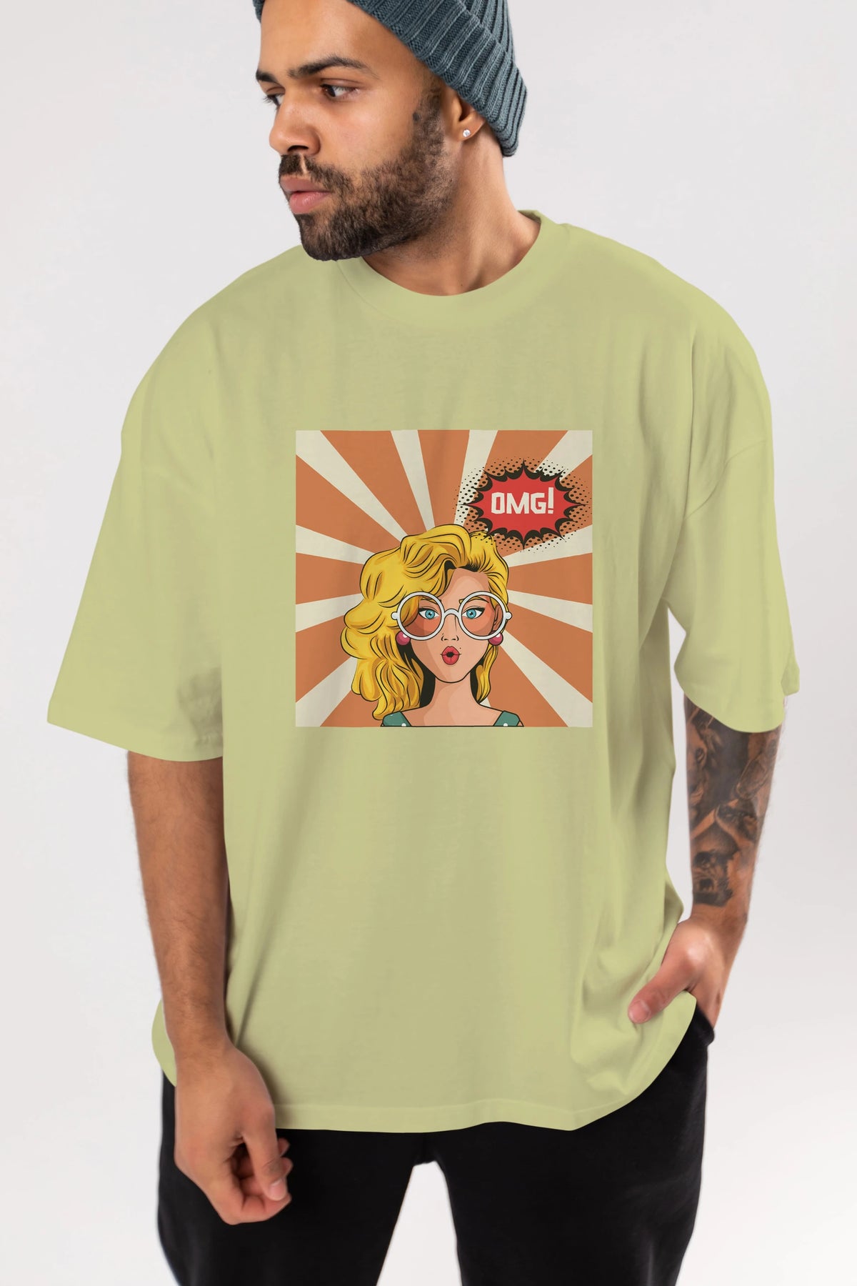 OMG Yazılı Retro Ön Baskılı Oversize t-shirt Erkek Kadın Unisex