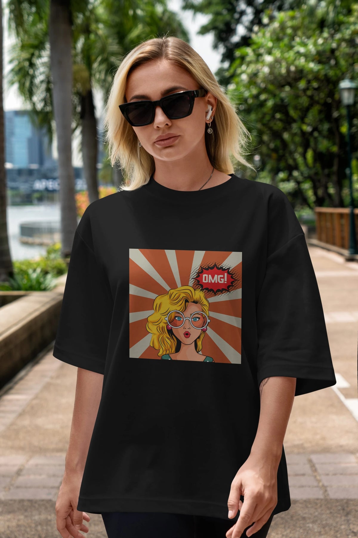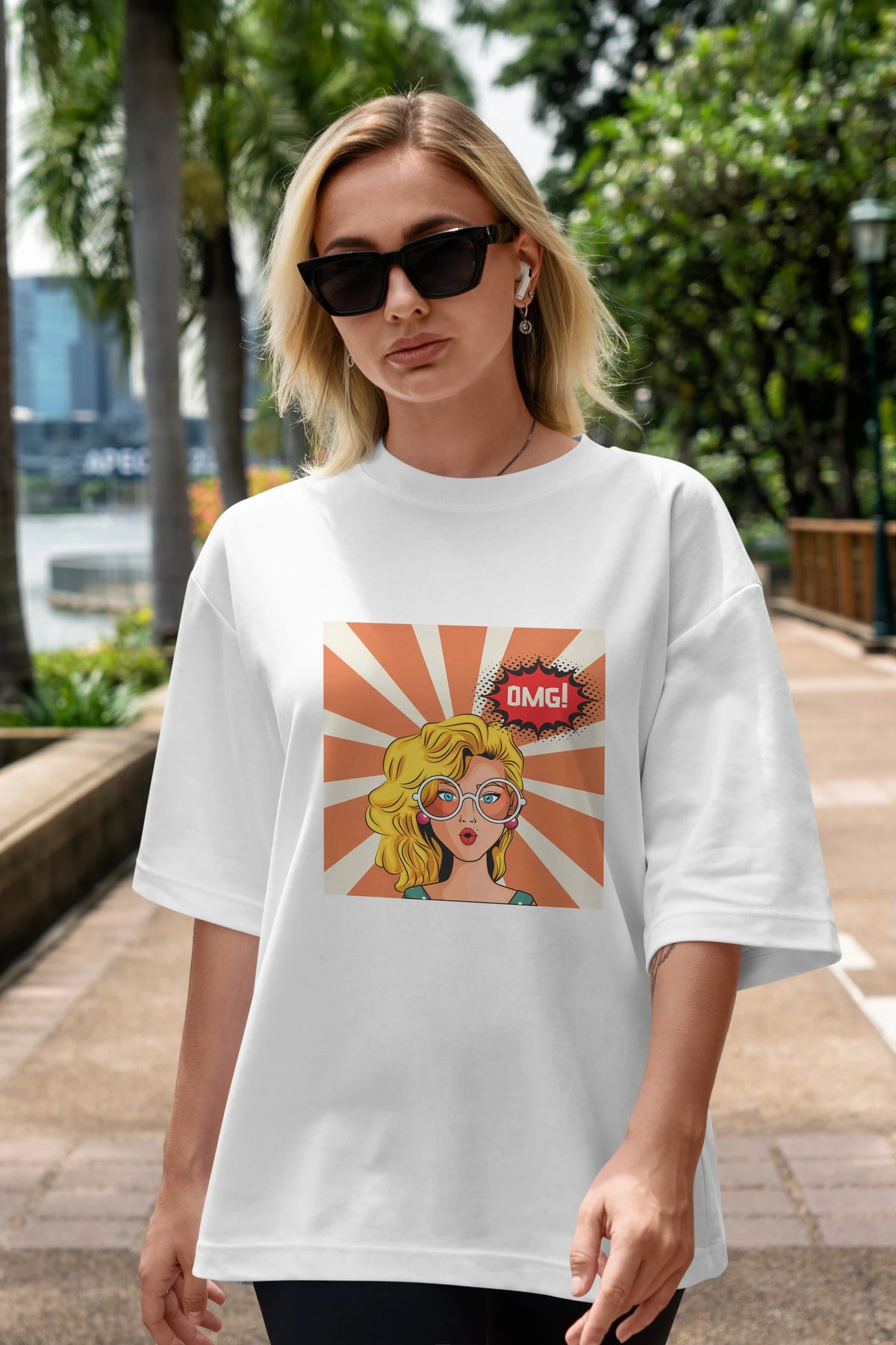 Hem erkekler hem de kadınlar için uygun, taze, modern bir baskıya sahip baskılı oversize t-shirt.
