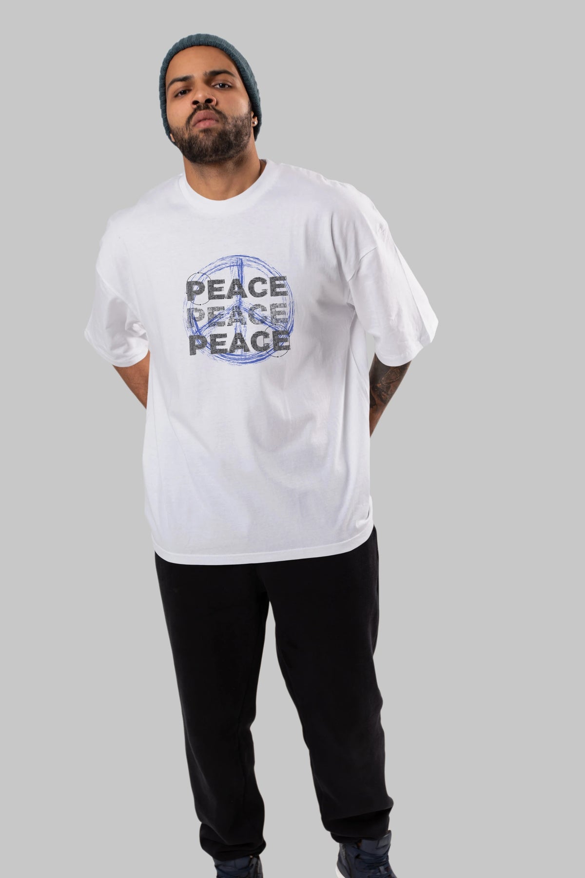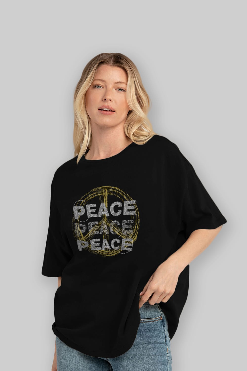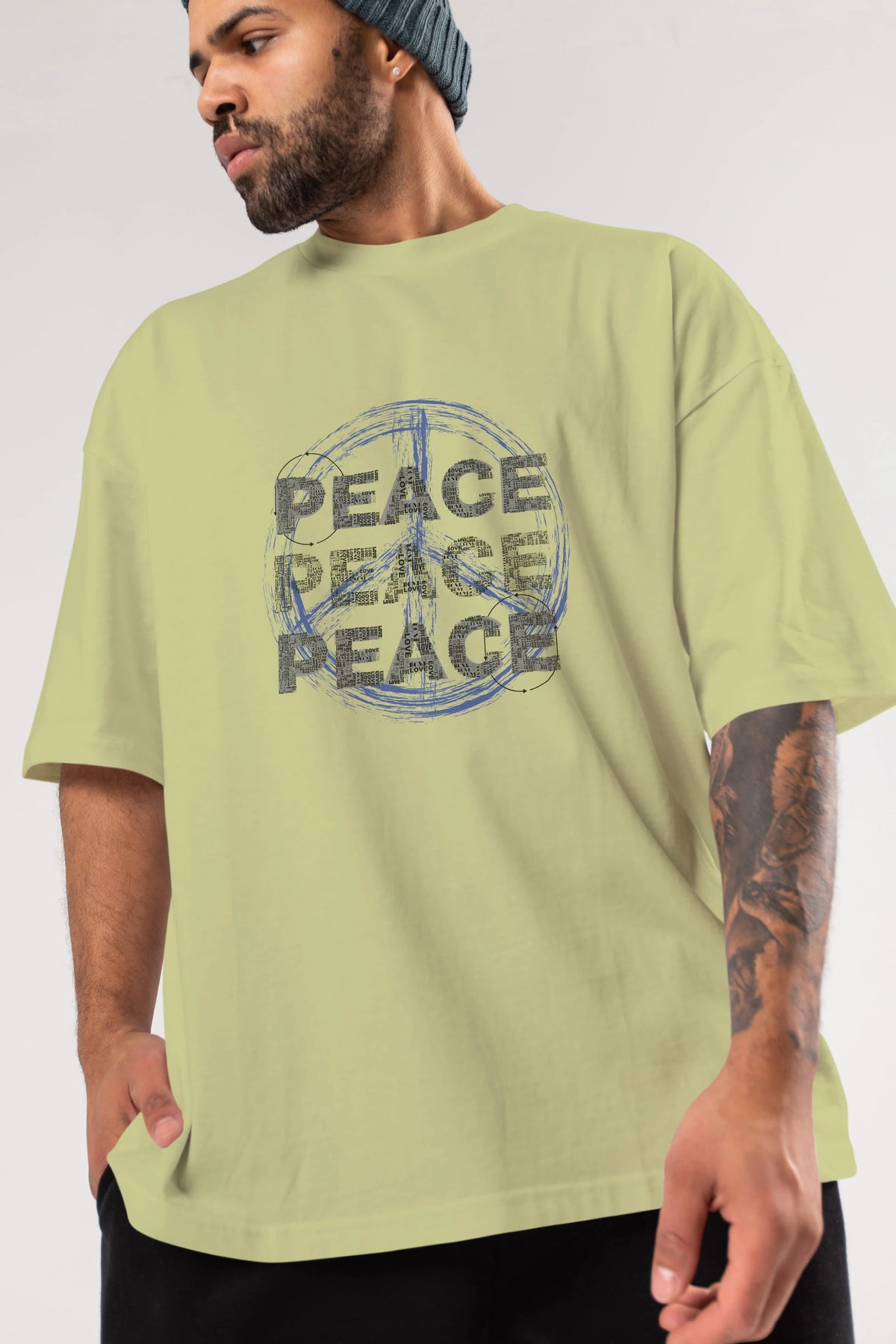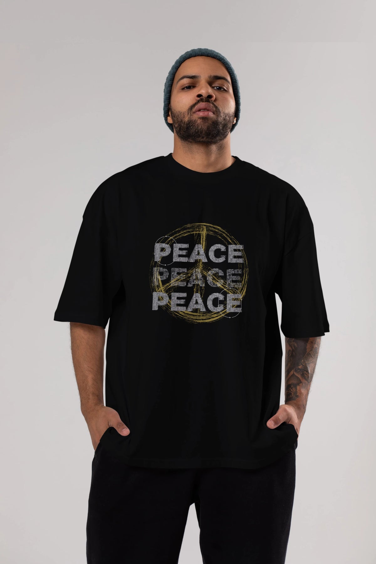 Peace Yazılı Ön Baskılı Oversize t-shirt Erkek Kadın Unisex