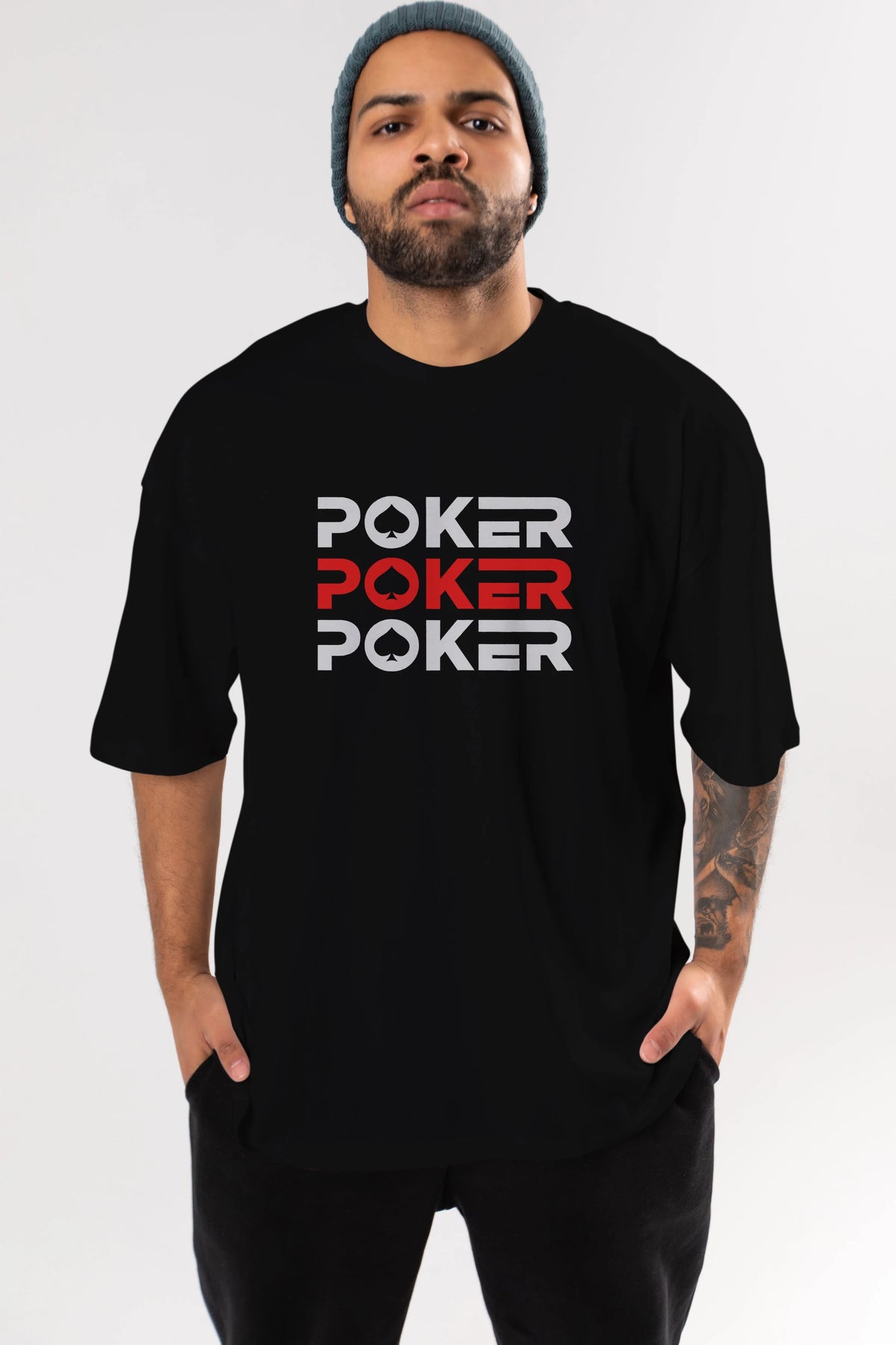 Poker Ön Baskılı Oversize t-shirt Erkek Kadın Unisex