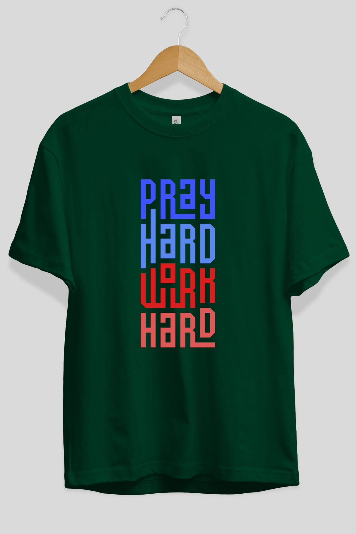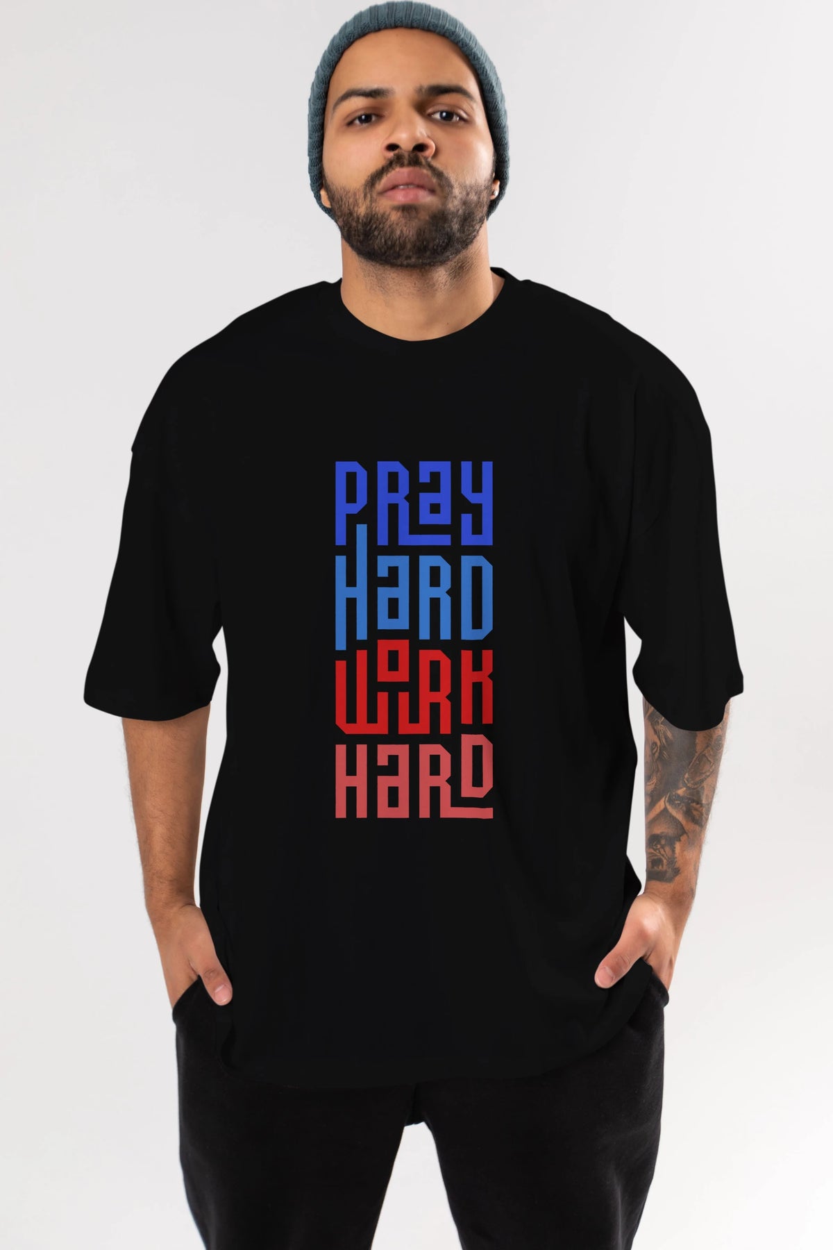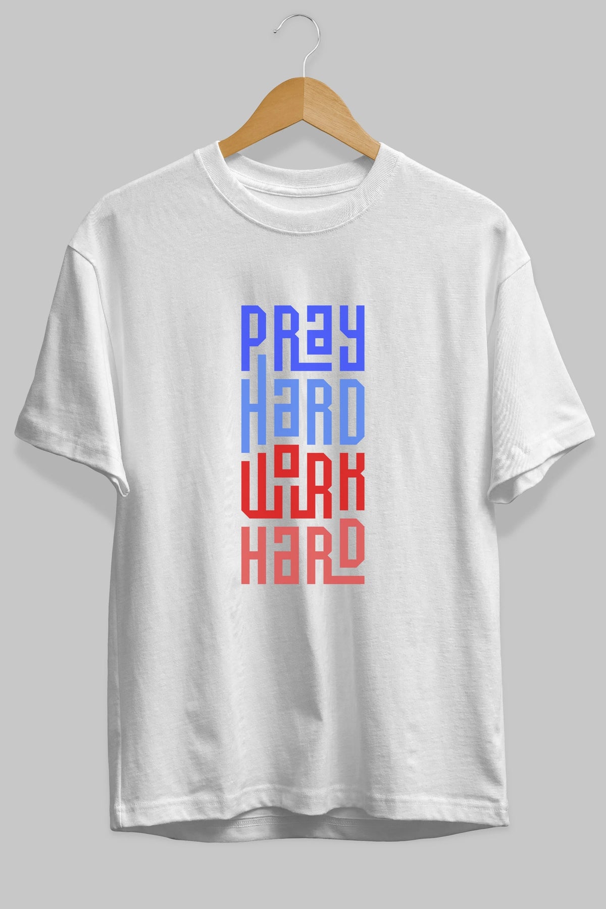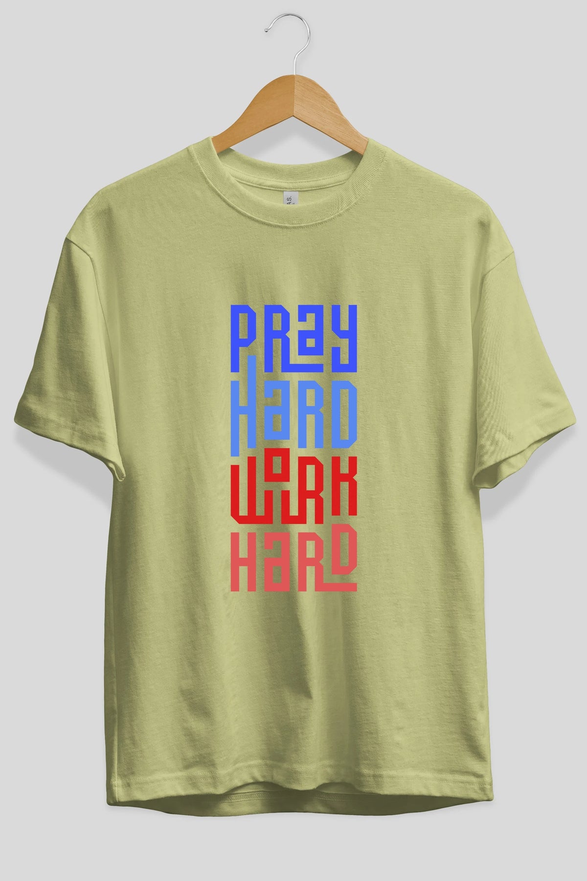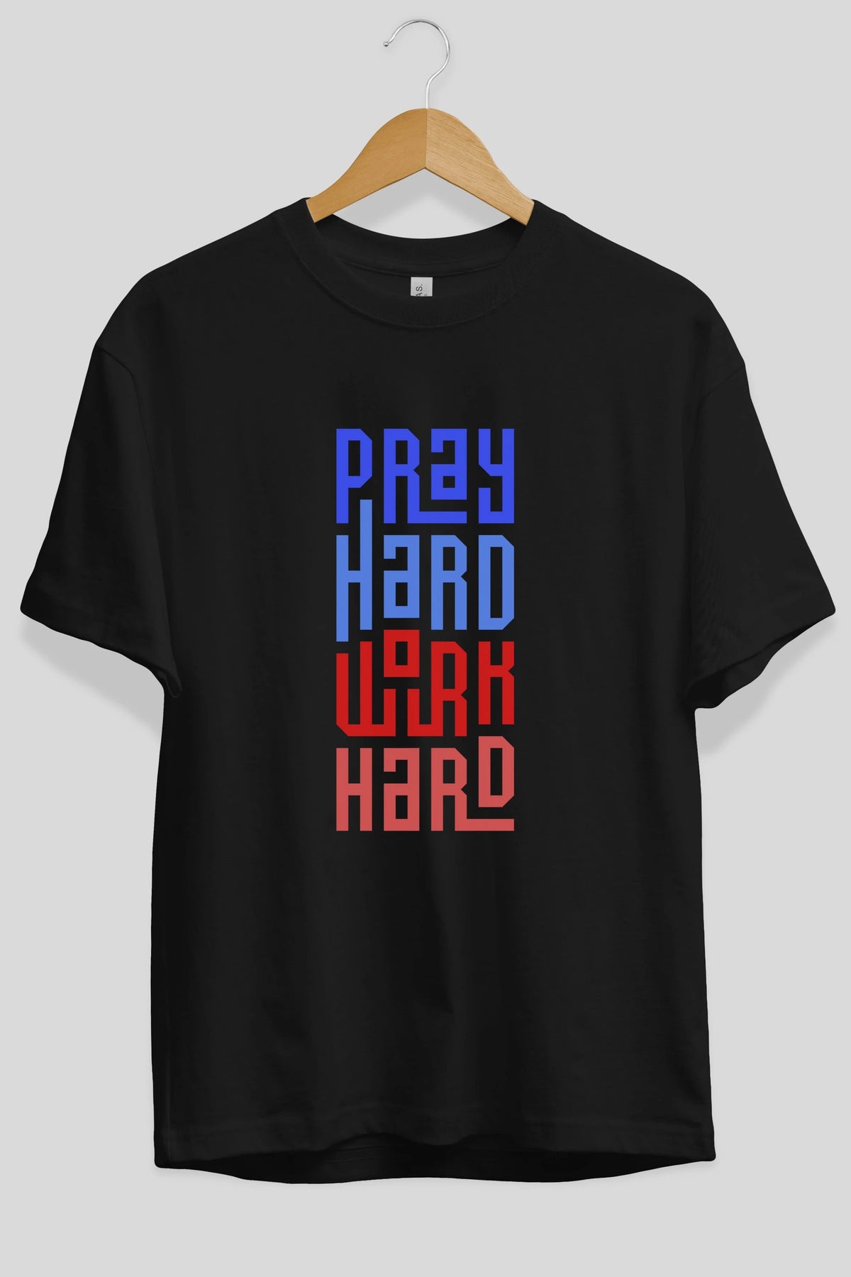 Pray Hard Work Hard Yazılı Ön Baskılı Oversize t-shirt Erkek Kadın Unisex