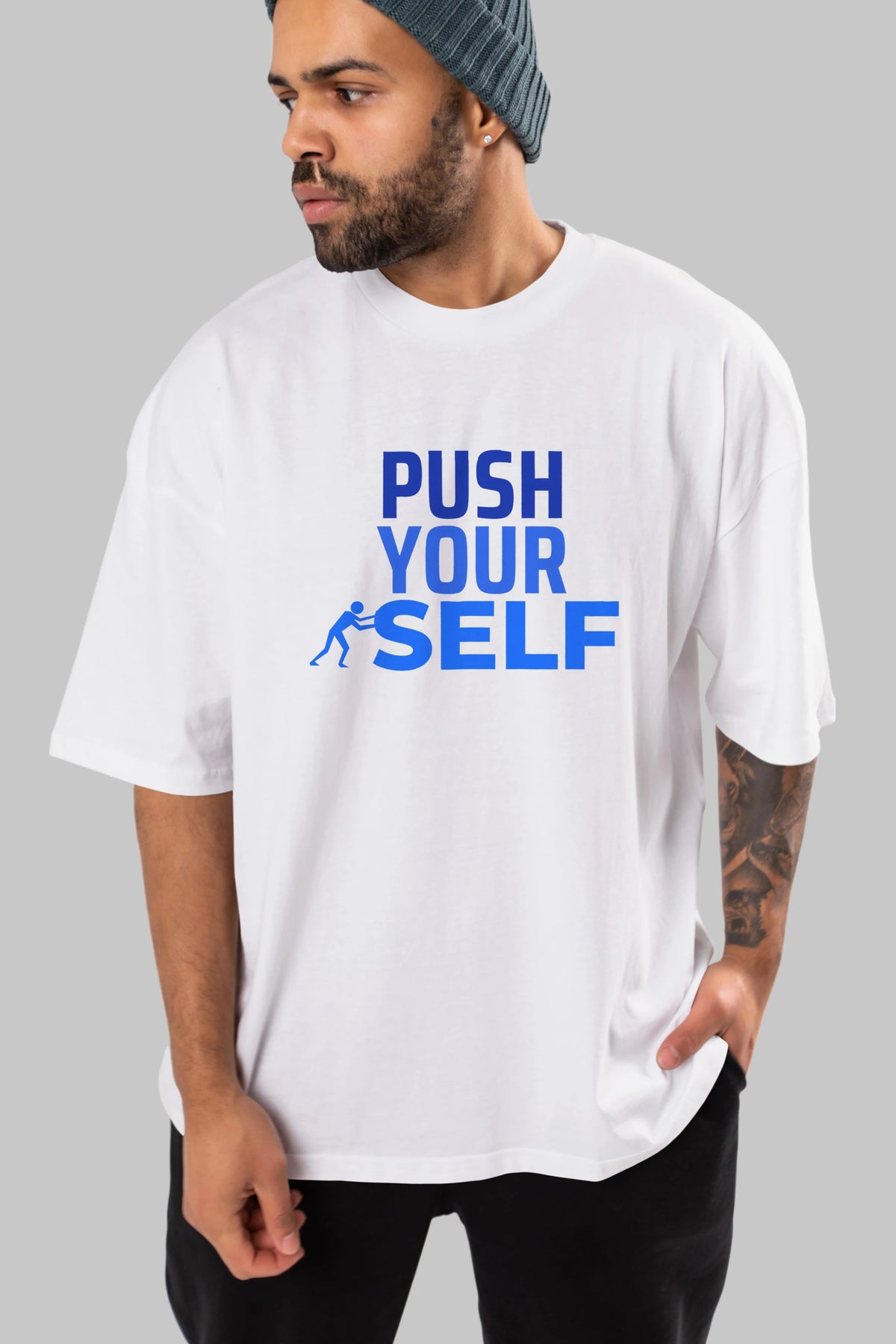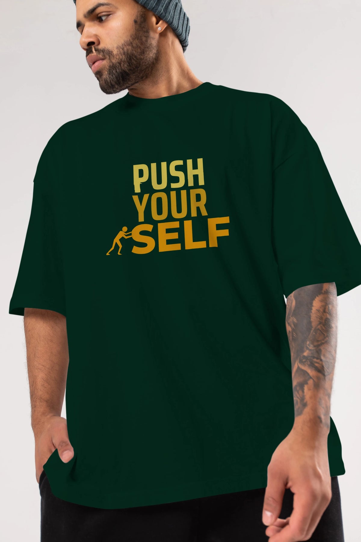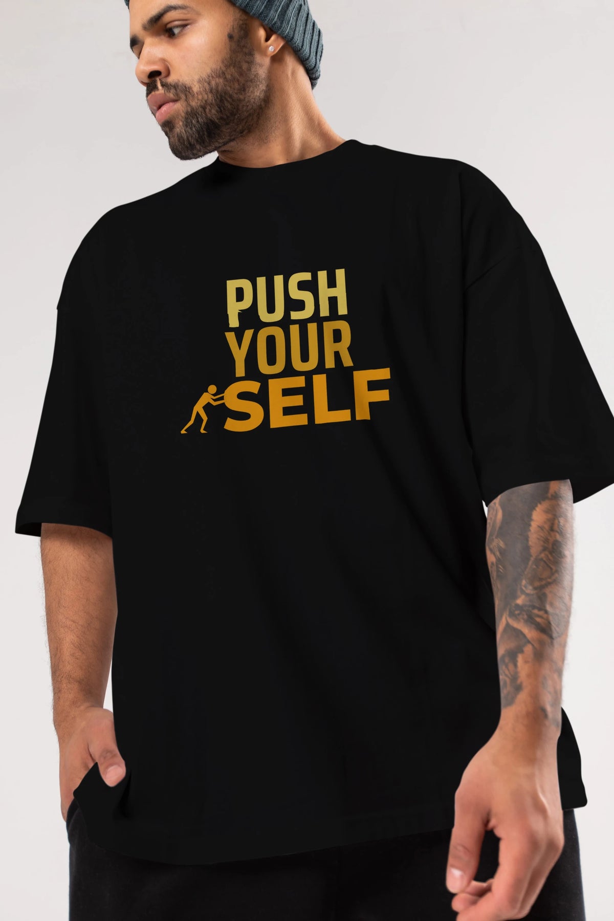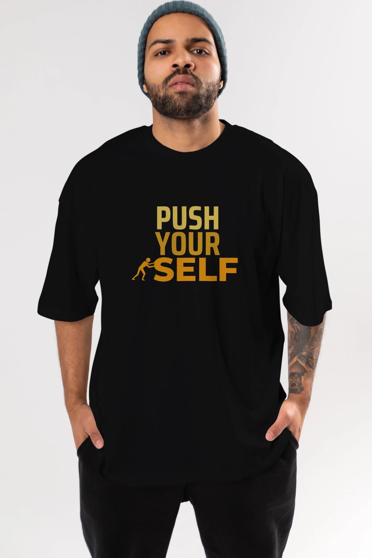 Push Yourself Yazılı Ön Baskılı Oversize t-shirt Erkek Kadın Unisex