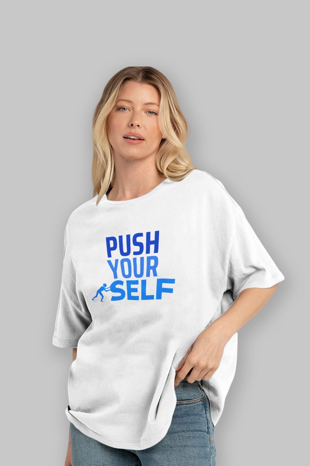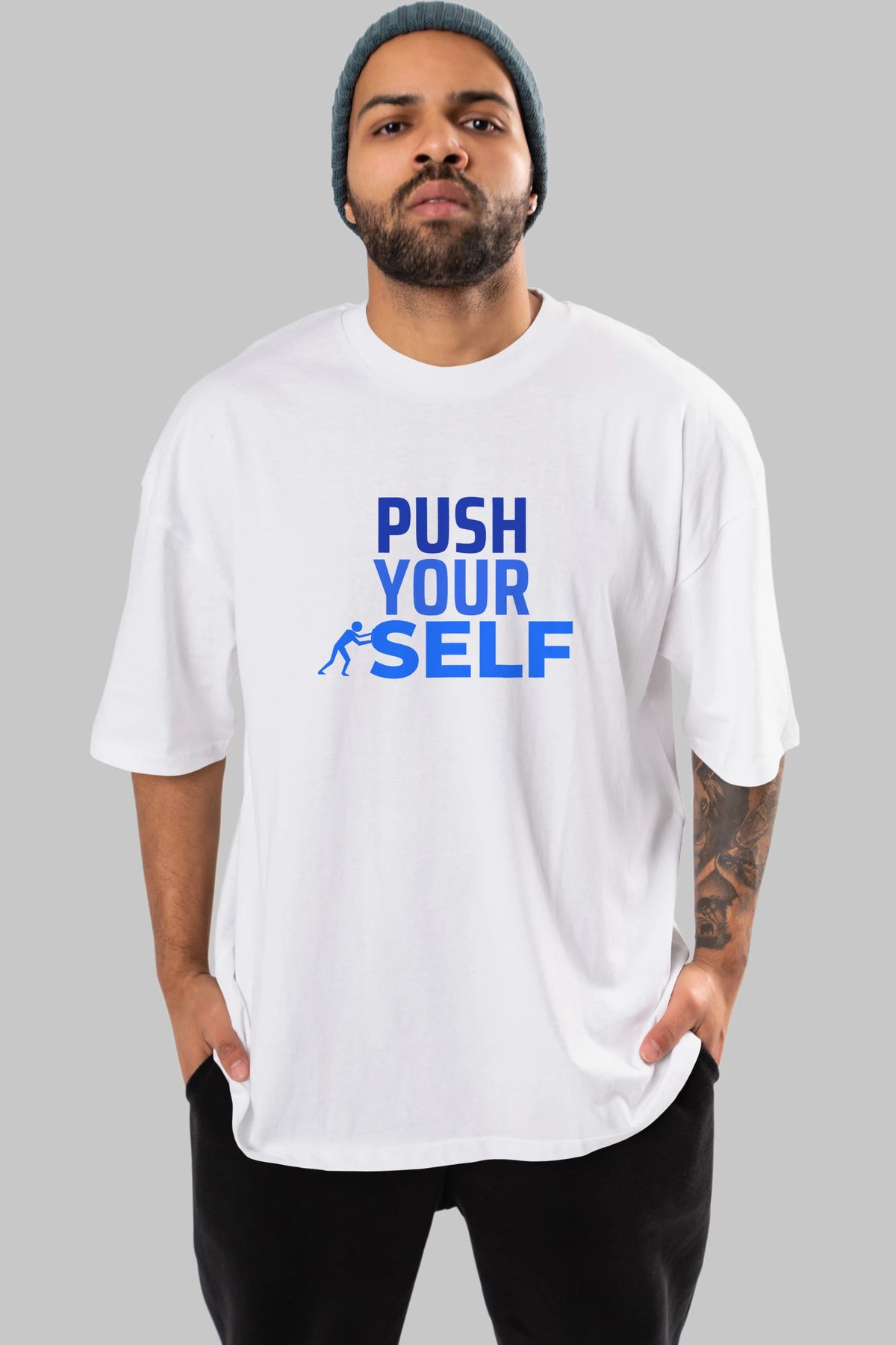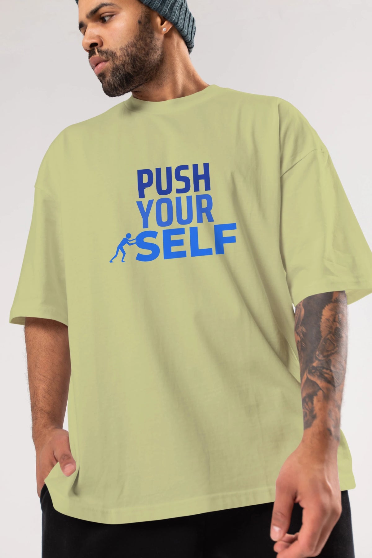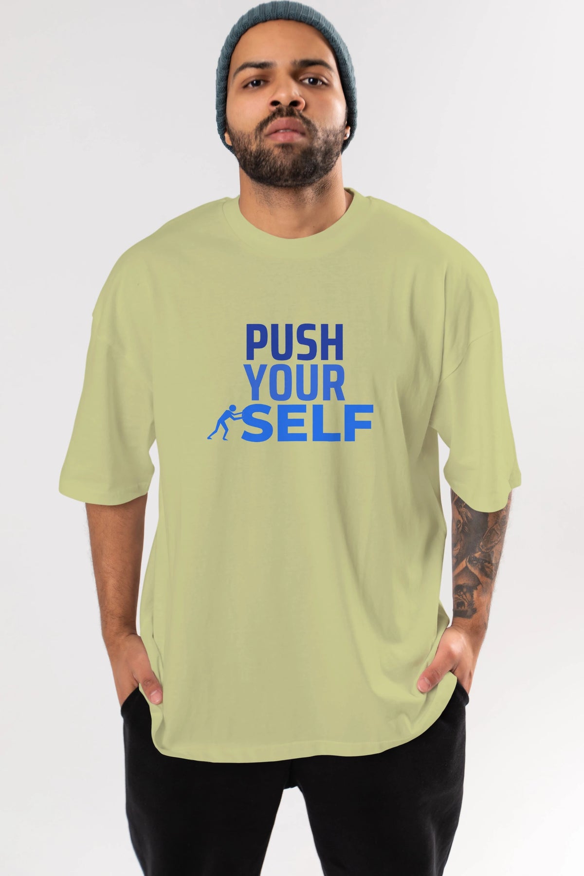 Push Yourself Yazılı Ön Baskılı Oversize t-shirt Erkek Kadın Unisex