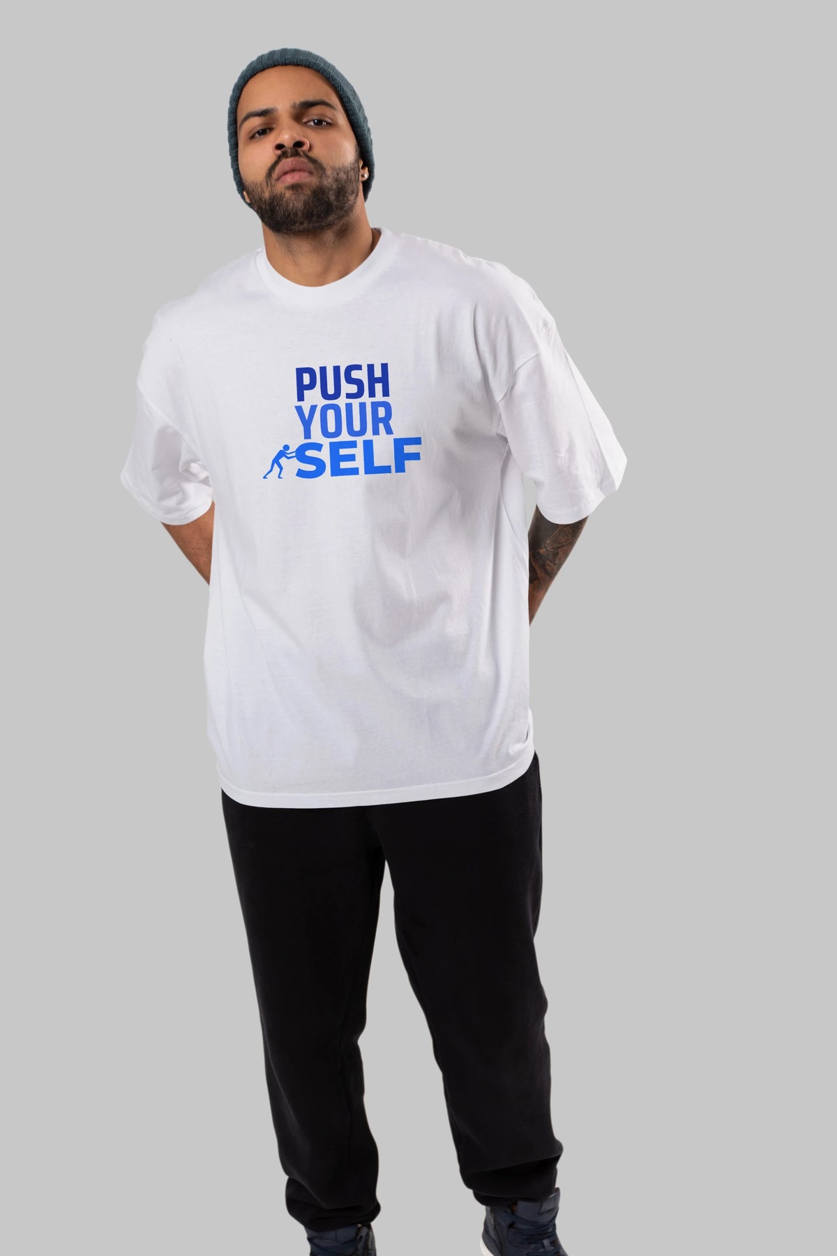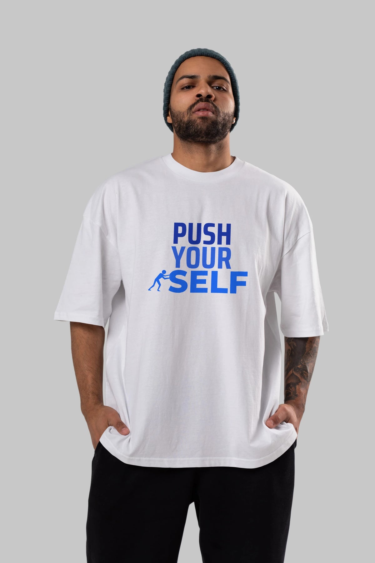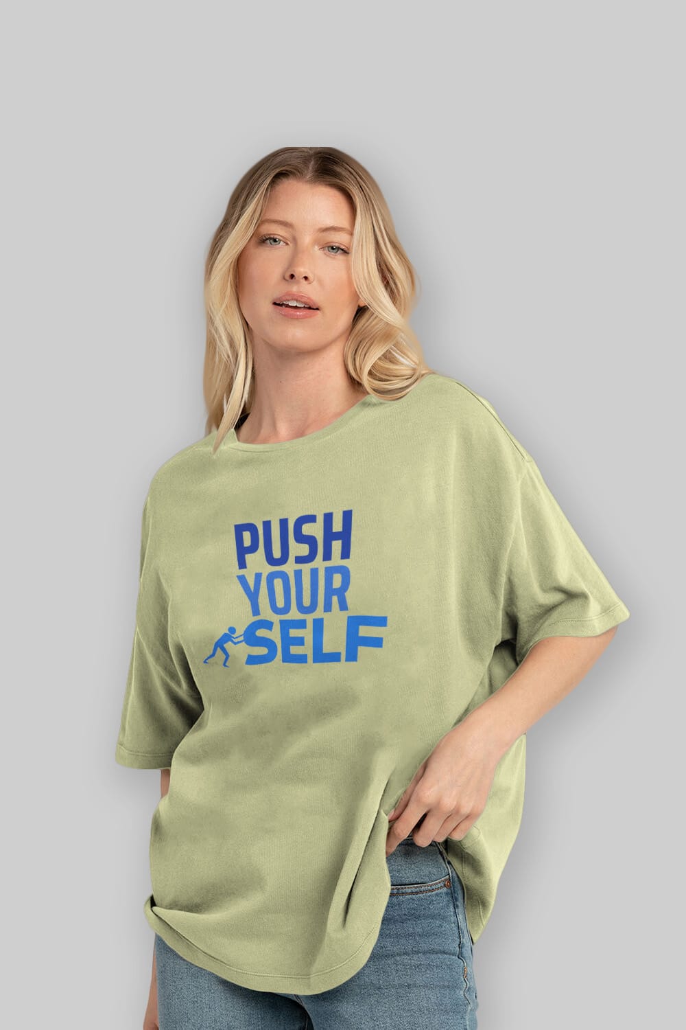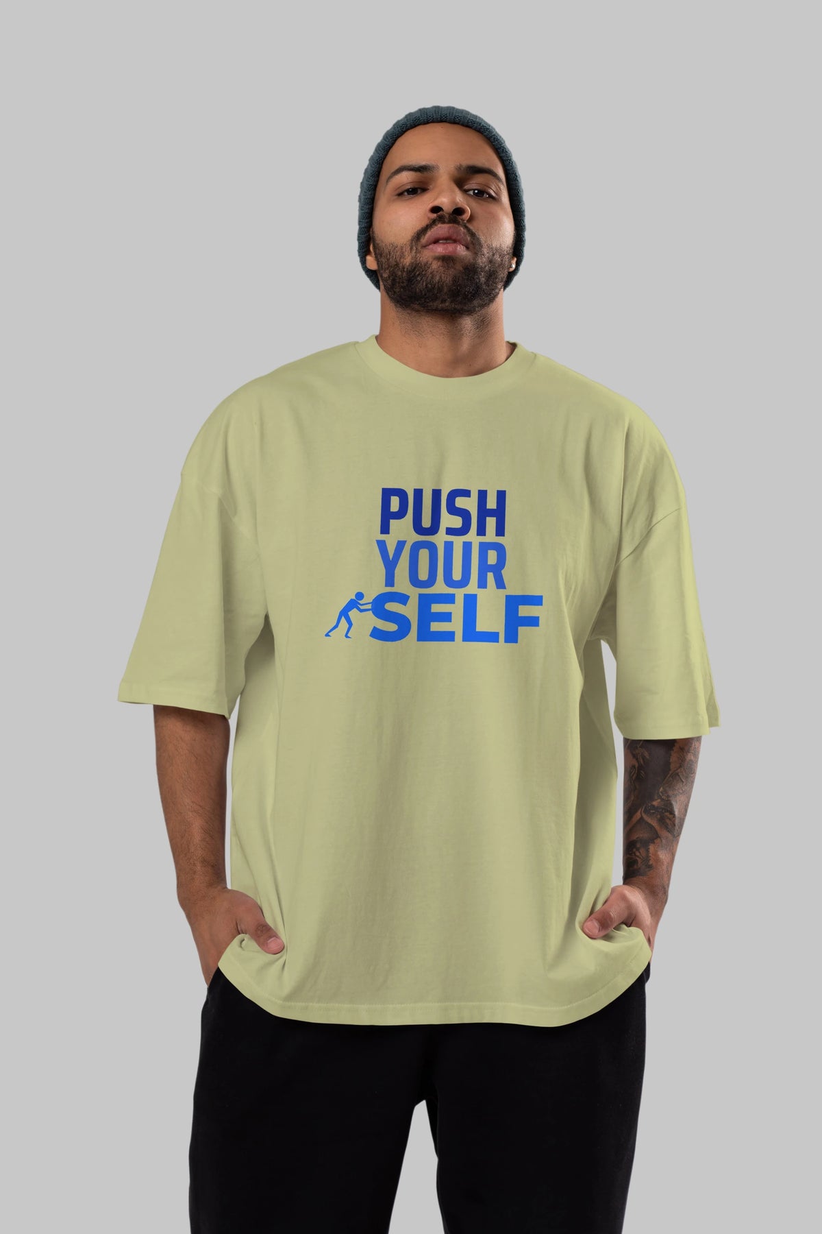 Push Yourself Yazılı Ön Baskılı Oversize t-shirt Erkek Kadın Unisex