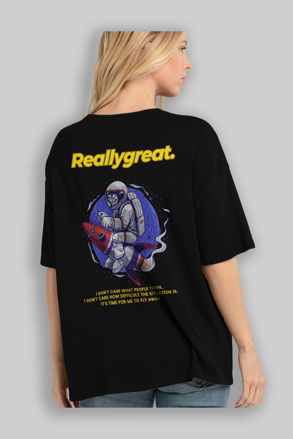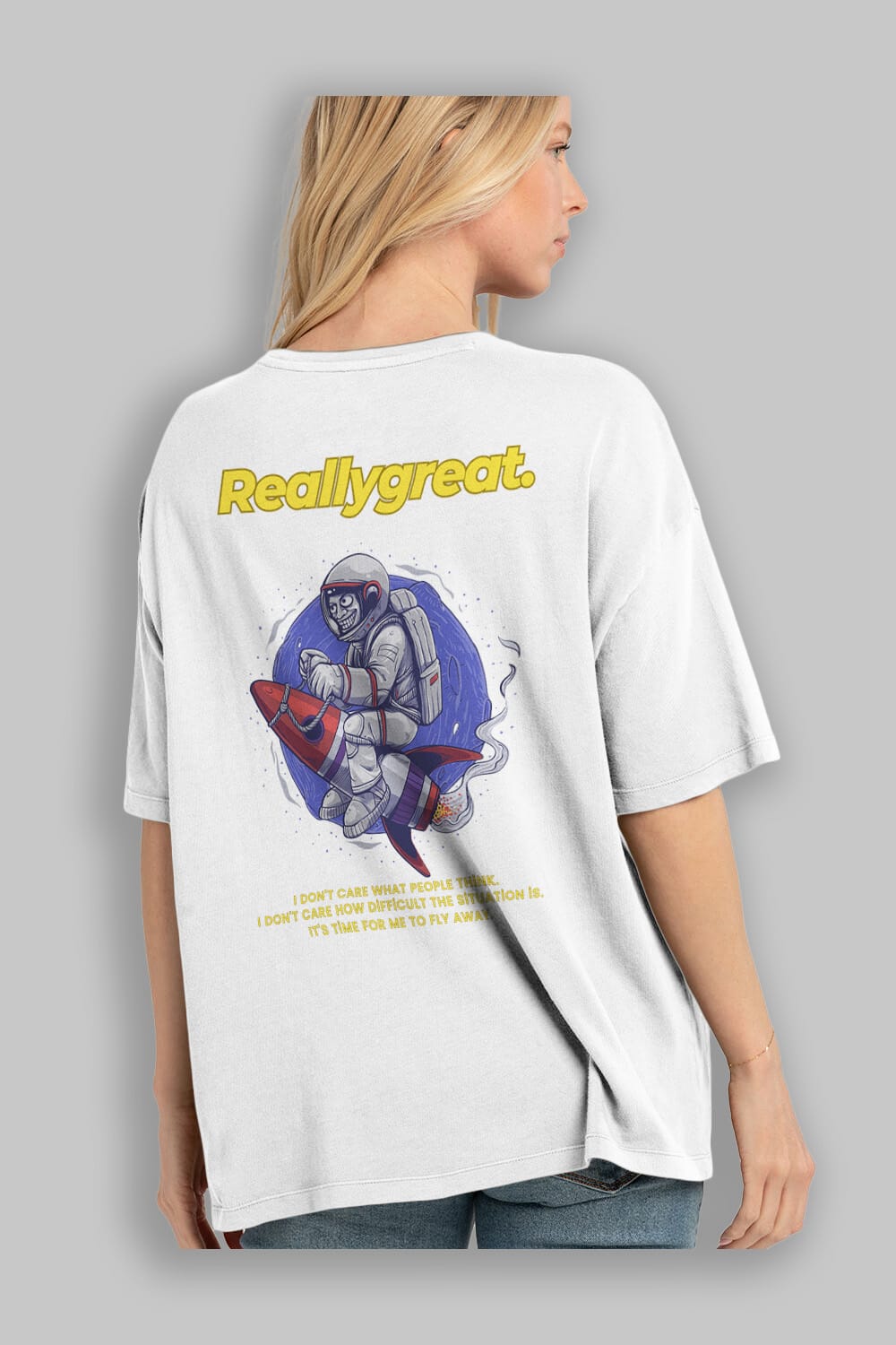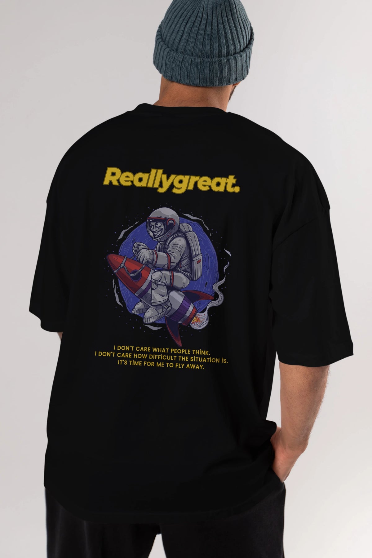 Reallygreat Astronaut Arka Baskılı Oversize t-shirt Erkek Kadın Unisex