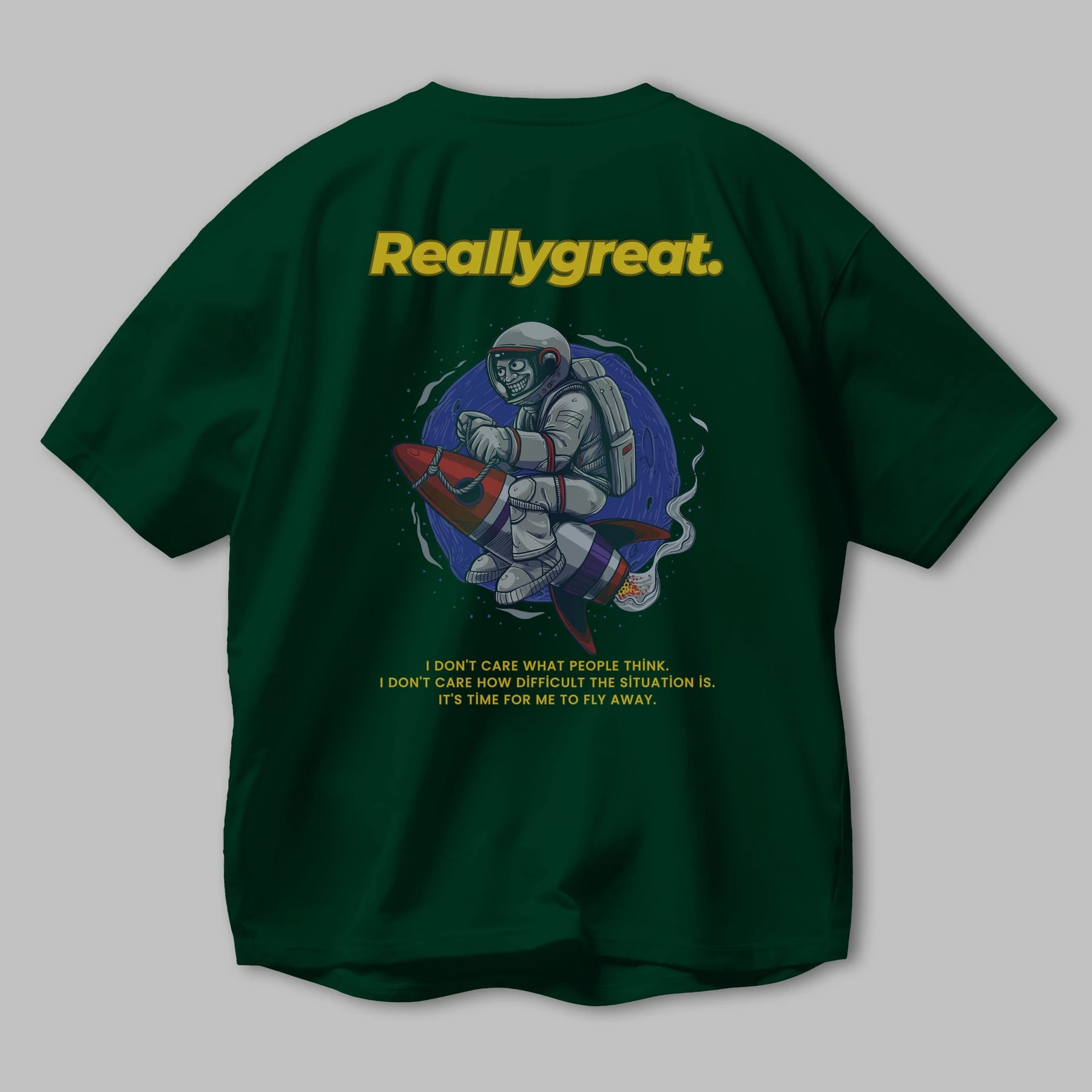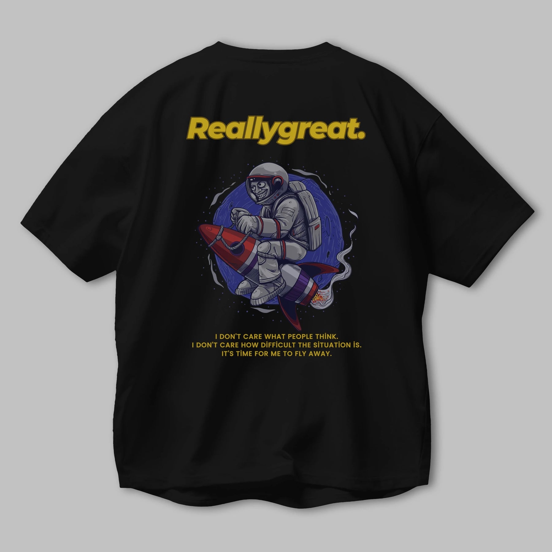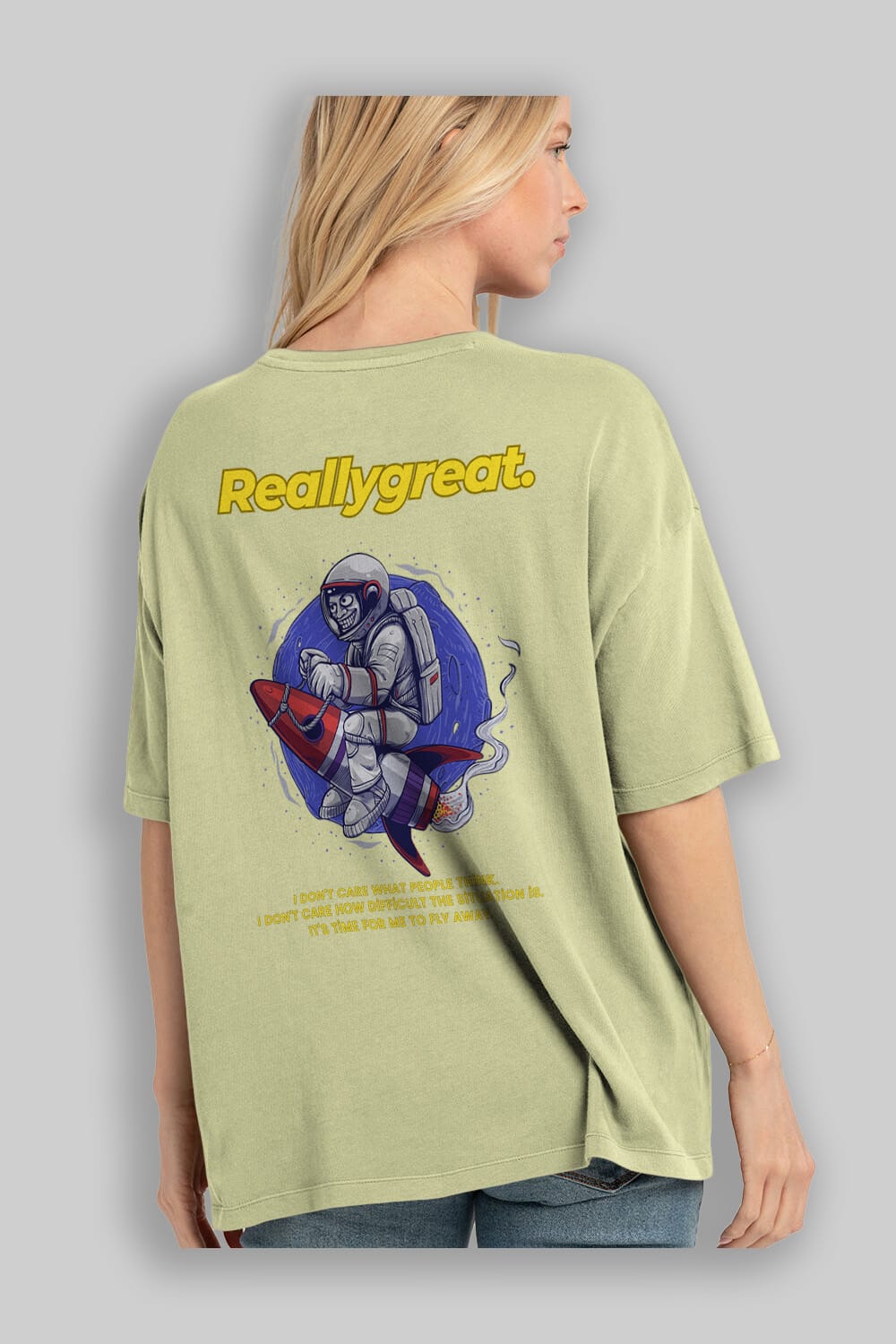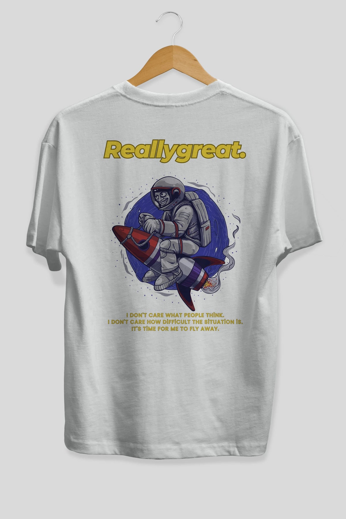 Reallygreat Astronaut Arka Baskılı Oversize t-shirt Erkek Kadın Unisex