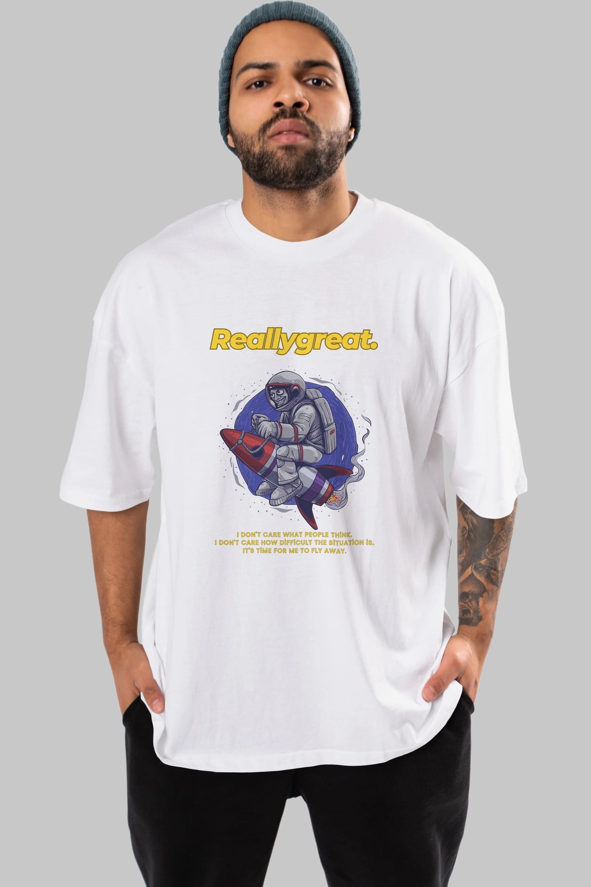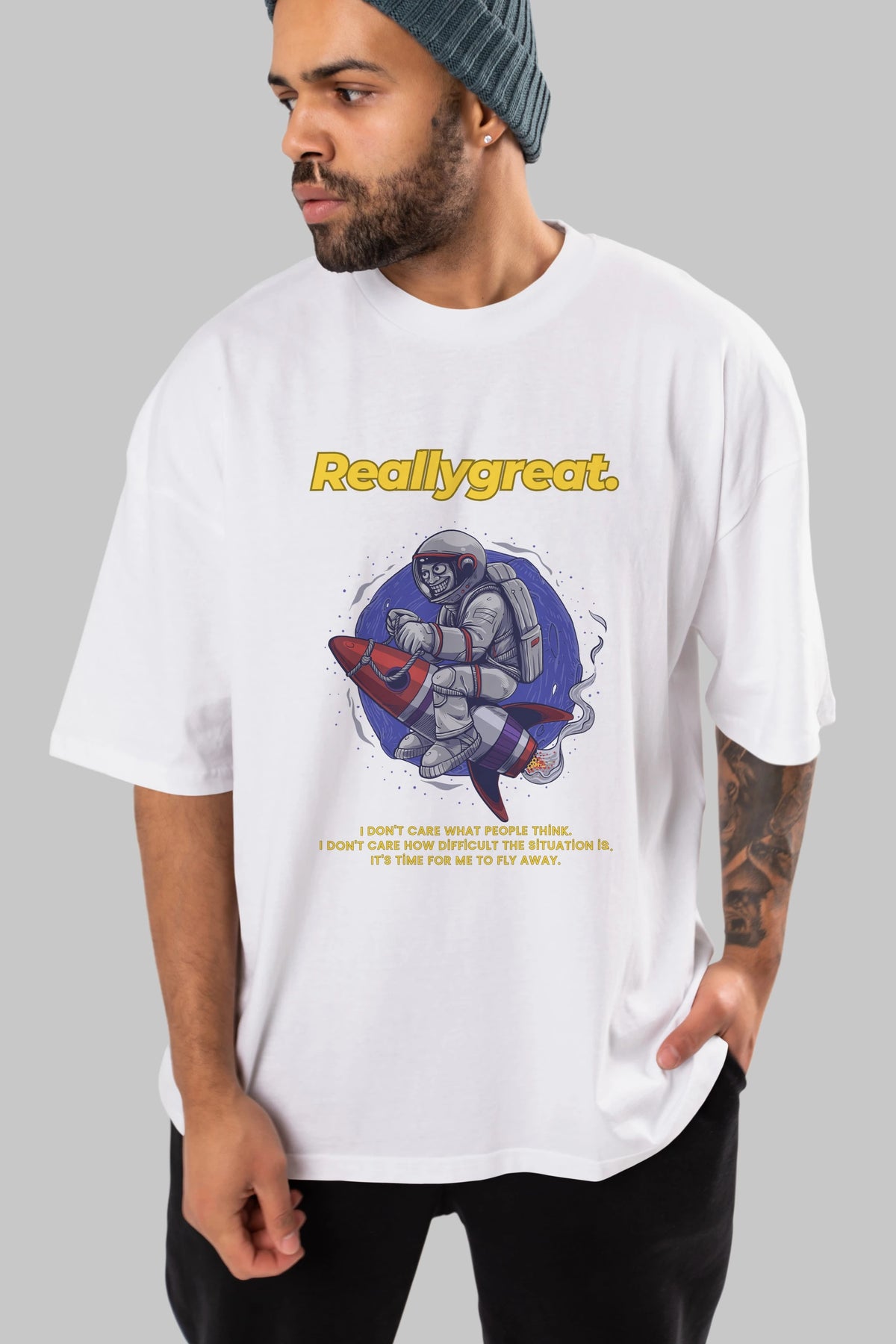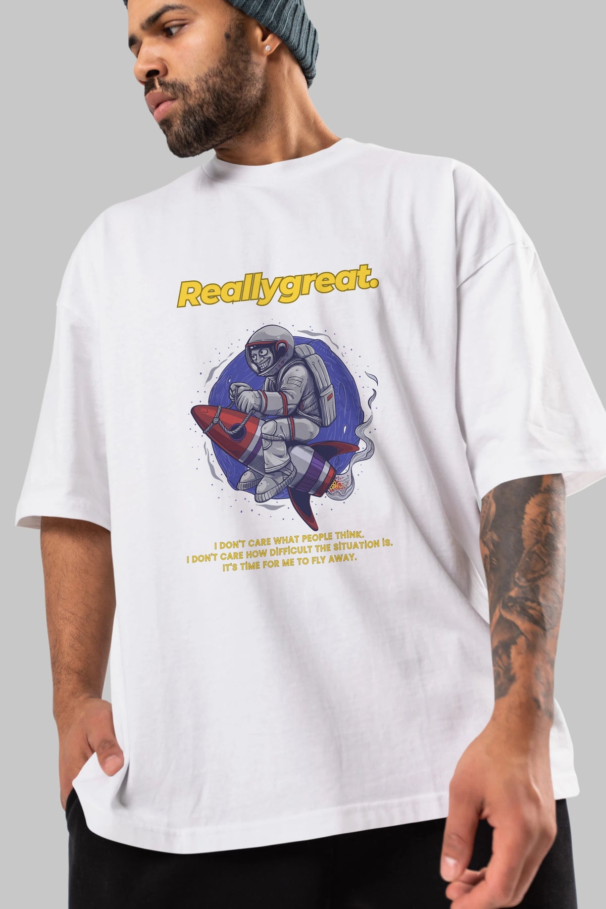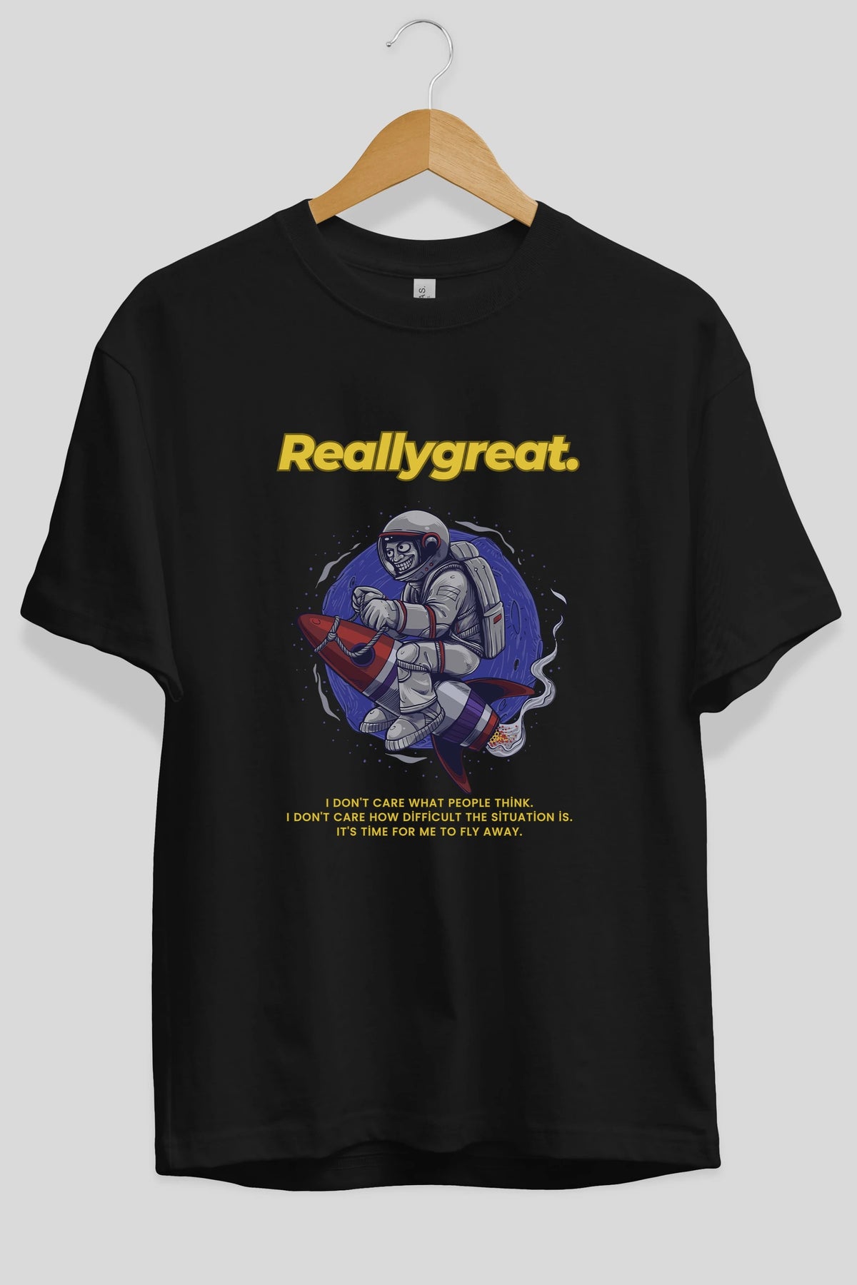 Reallygreat Astronaut Ön Baskılı Oversize t-shirt Erkek Kadın Unisex