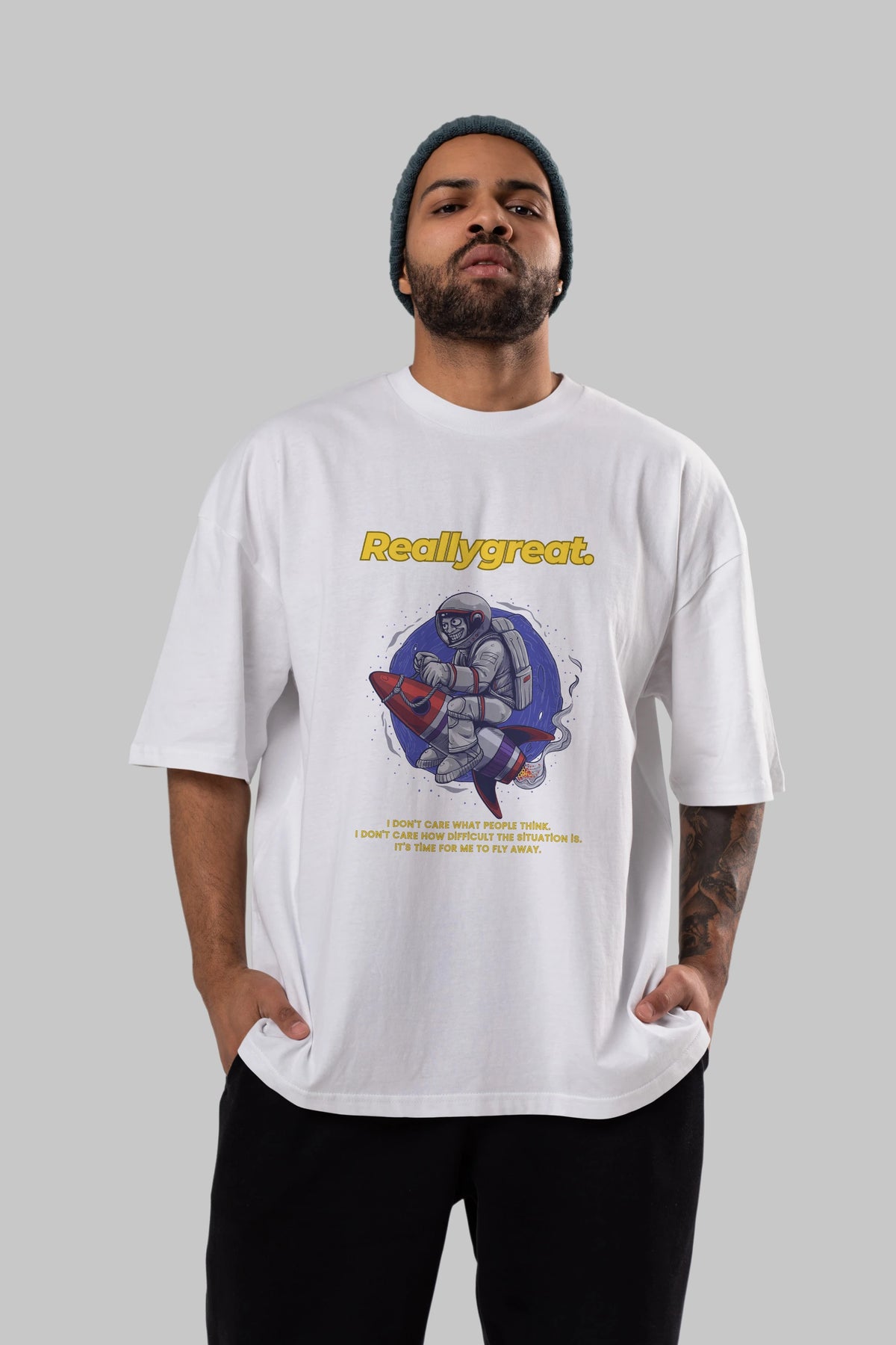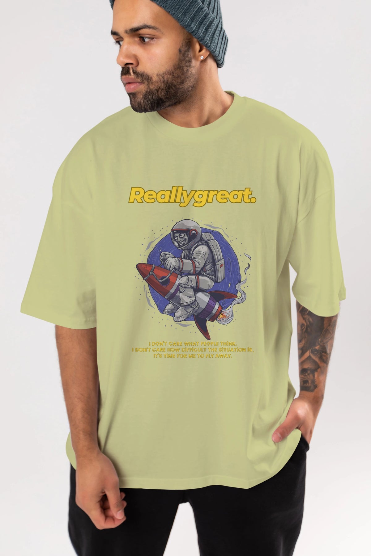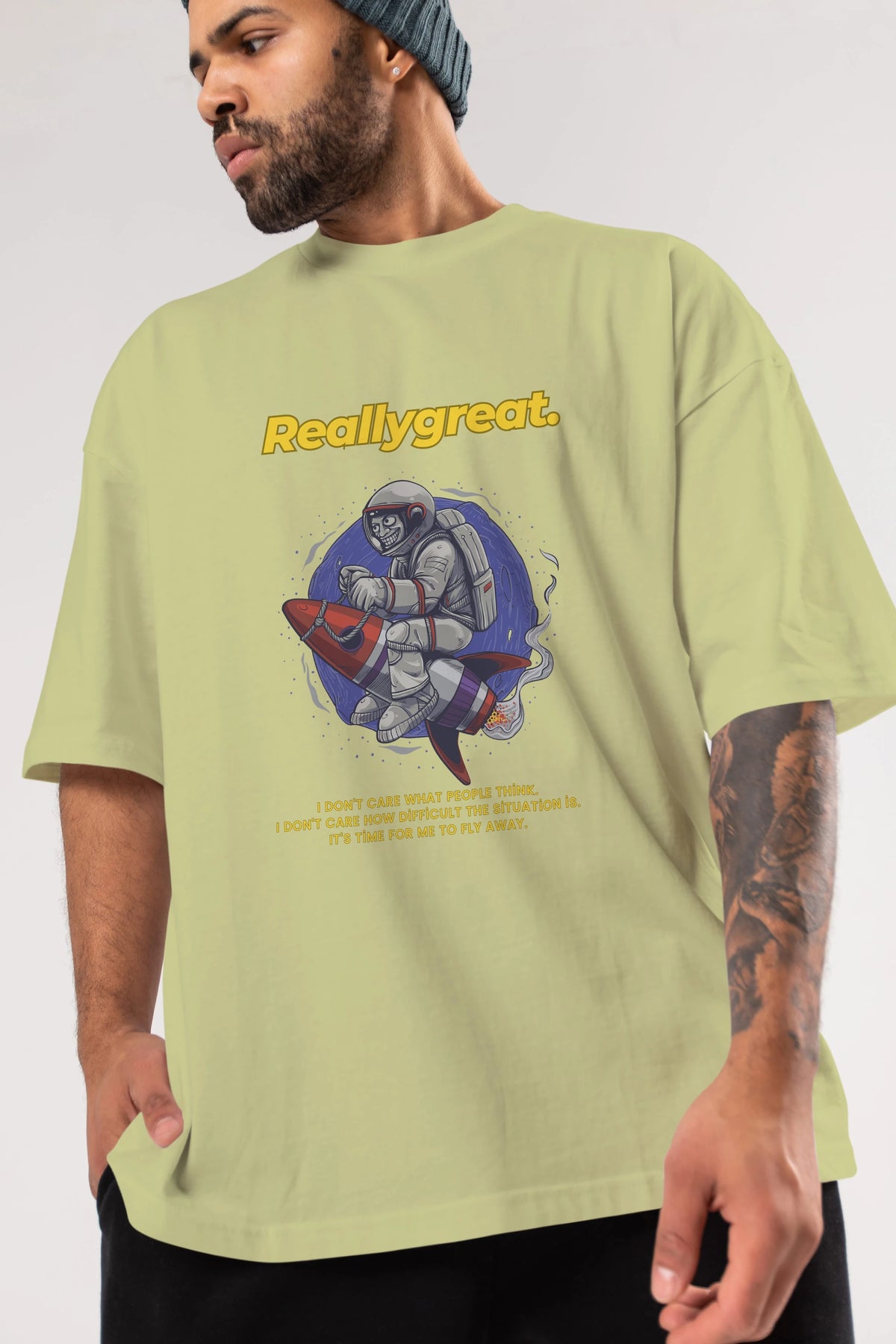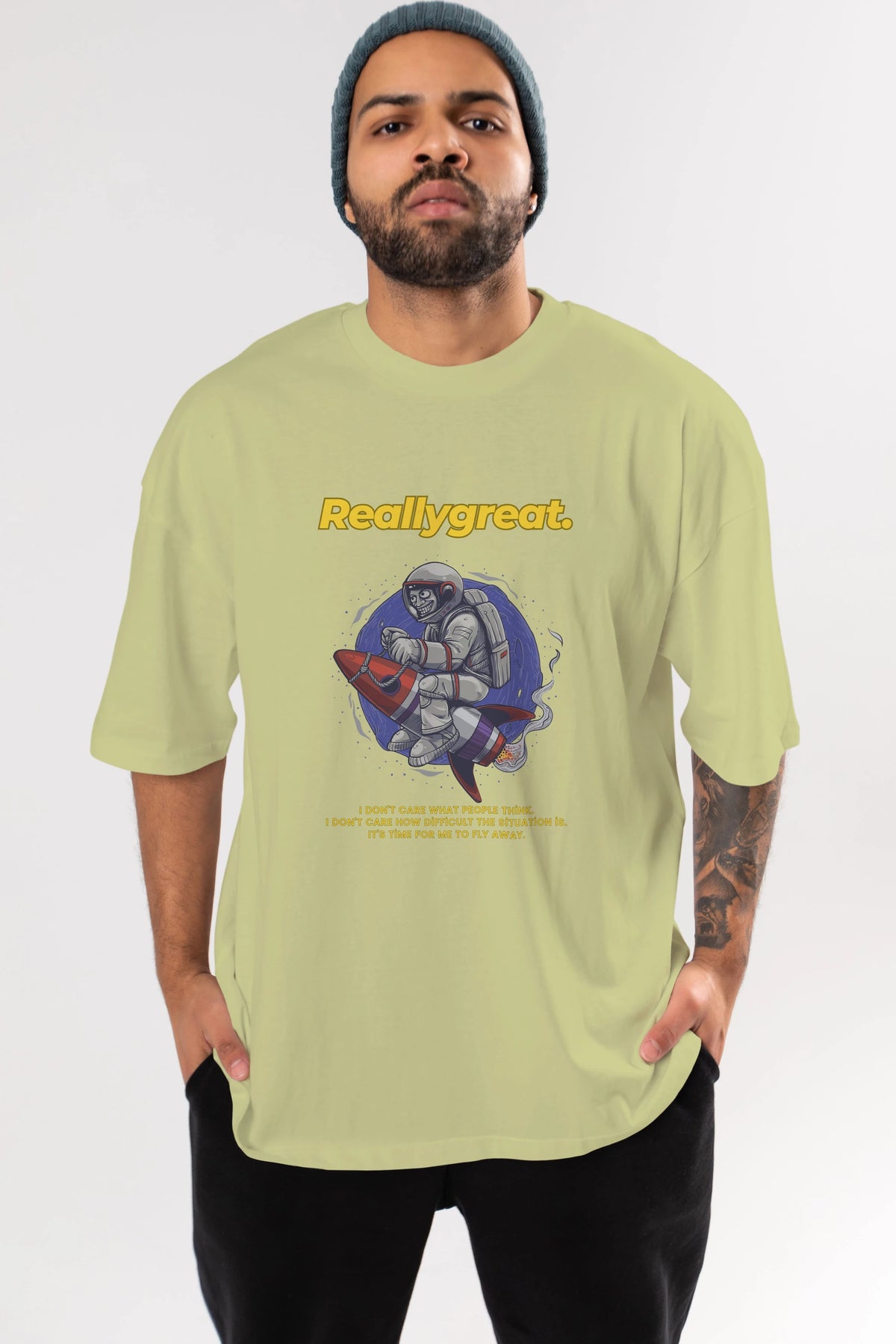 Reallygreat Astronaut Ön Baskılı Oversize t-shirt Erkek Kadın Unisex