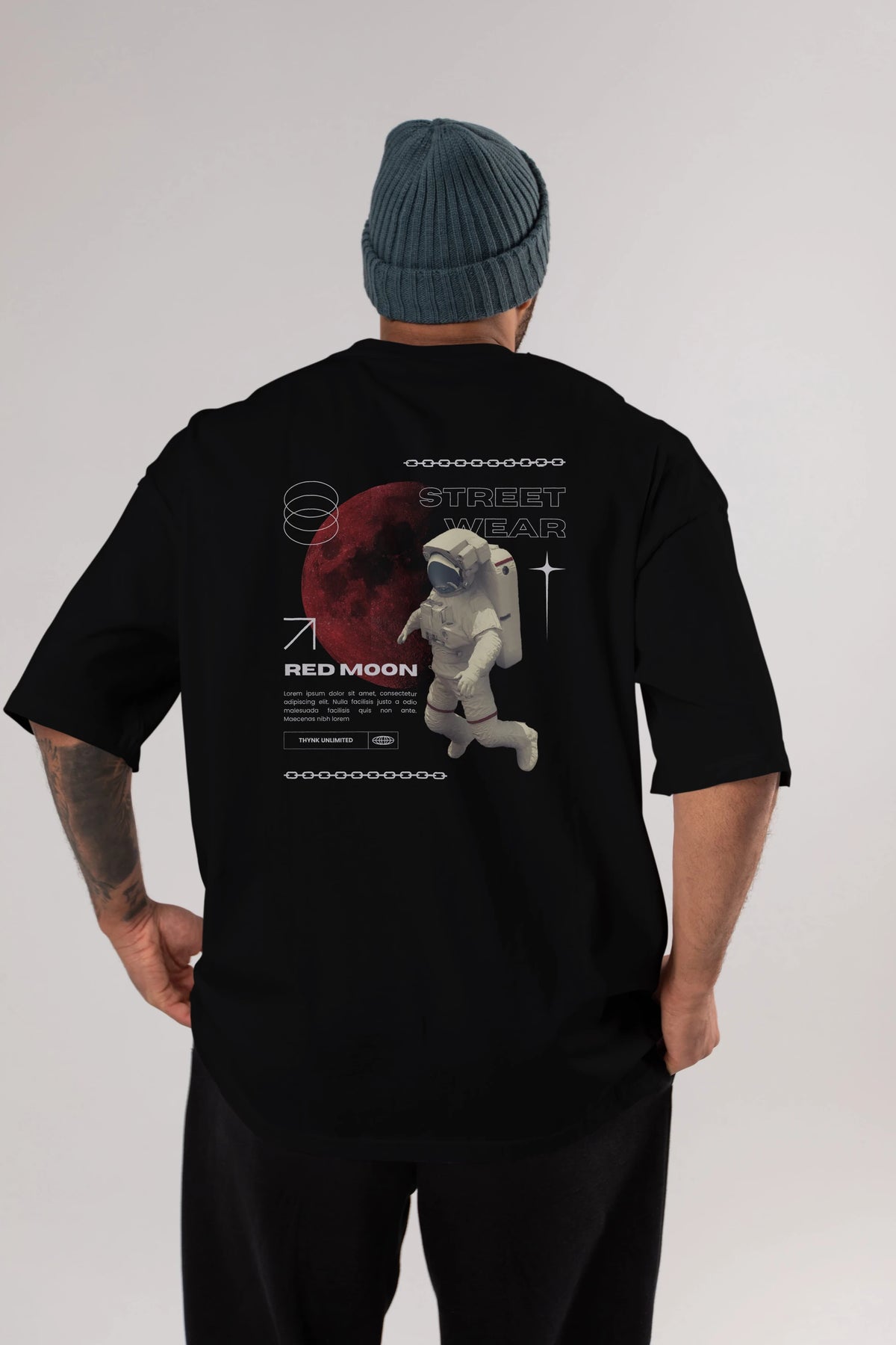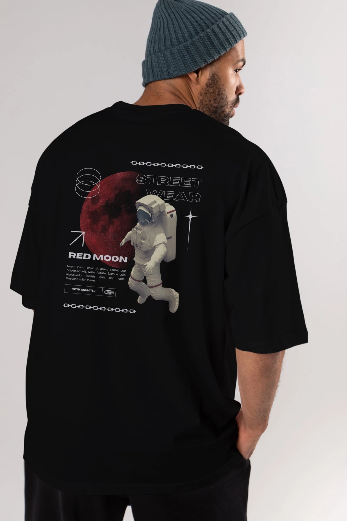 Red Moon Streetwear Arka Baskılı Oversize t-shirt Erkek Kadın Unisex