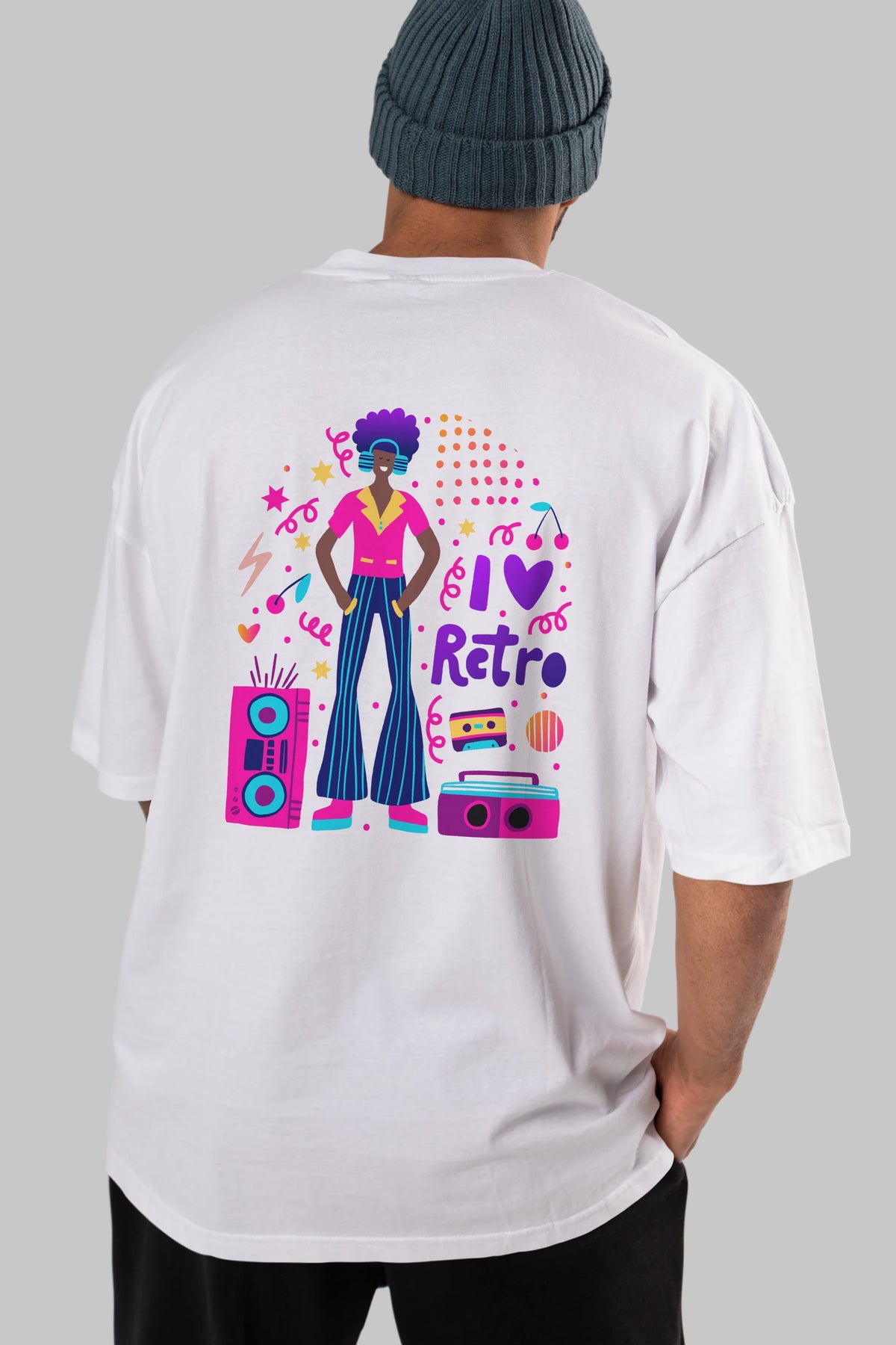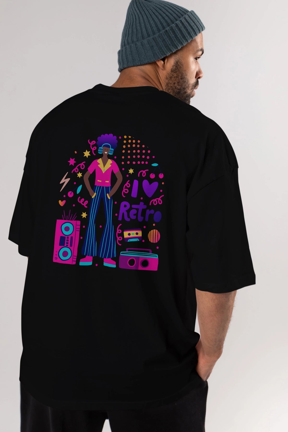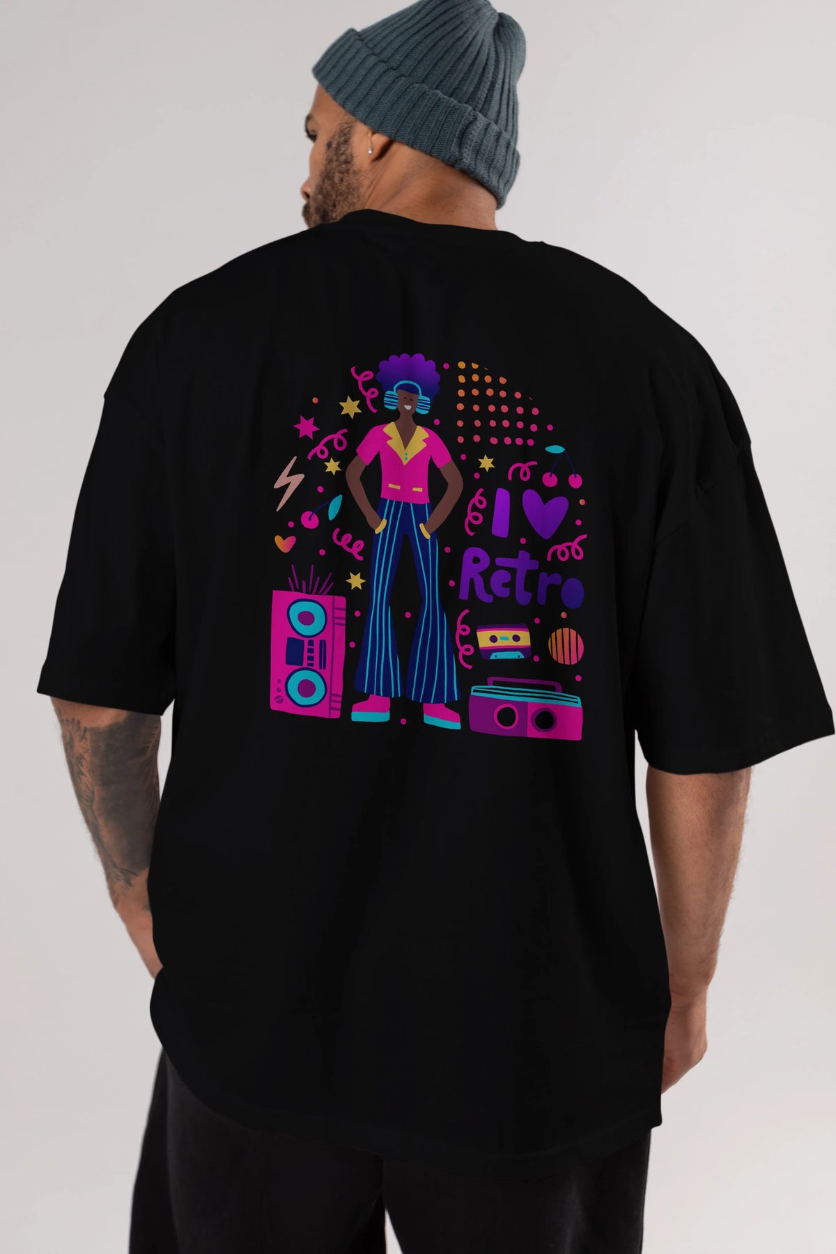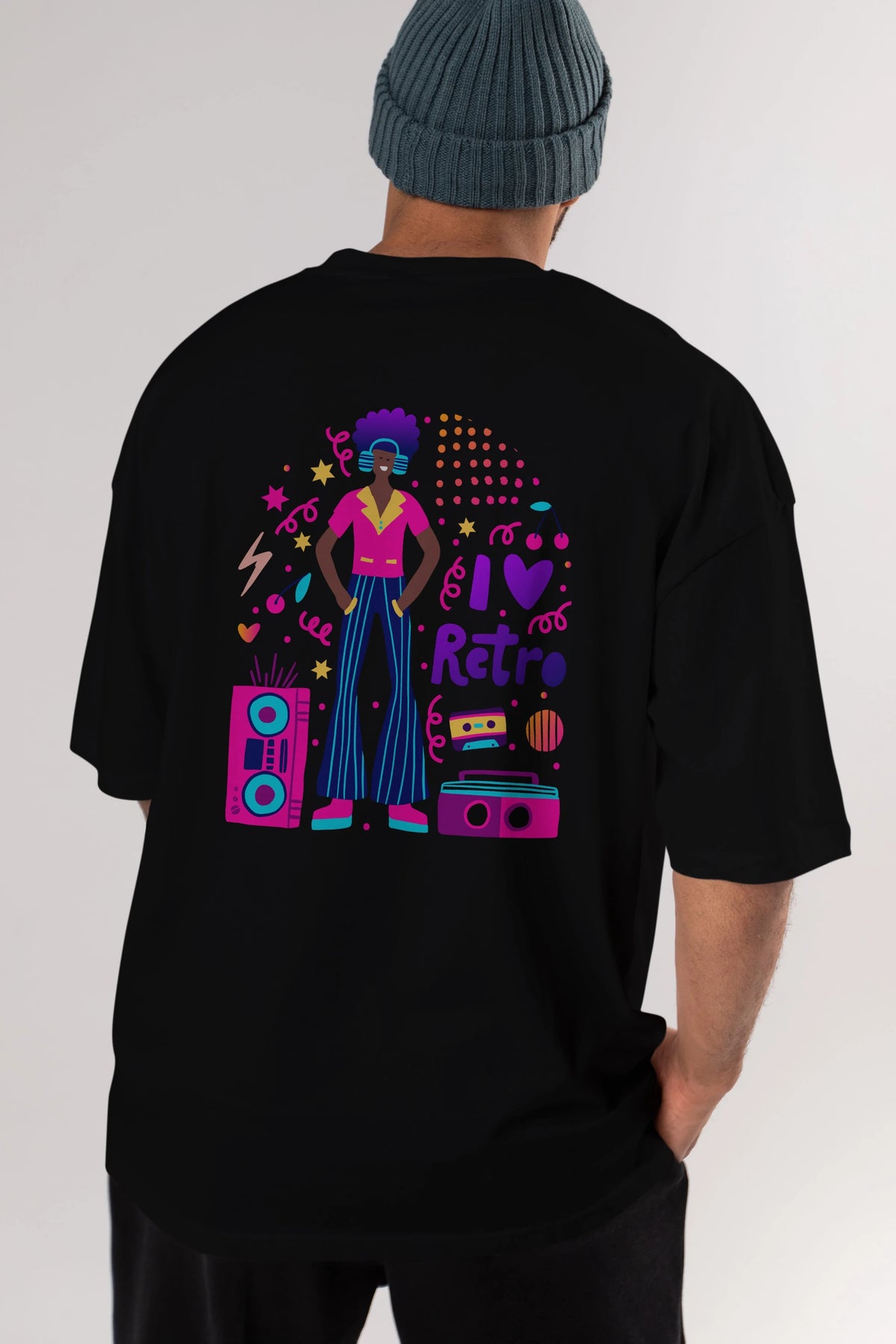 Retro Boy Party Arka Baskılı Oversize t-shirt Erkek Kadın Unisex