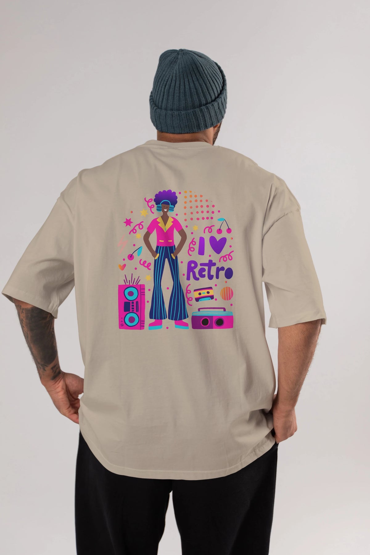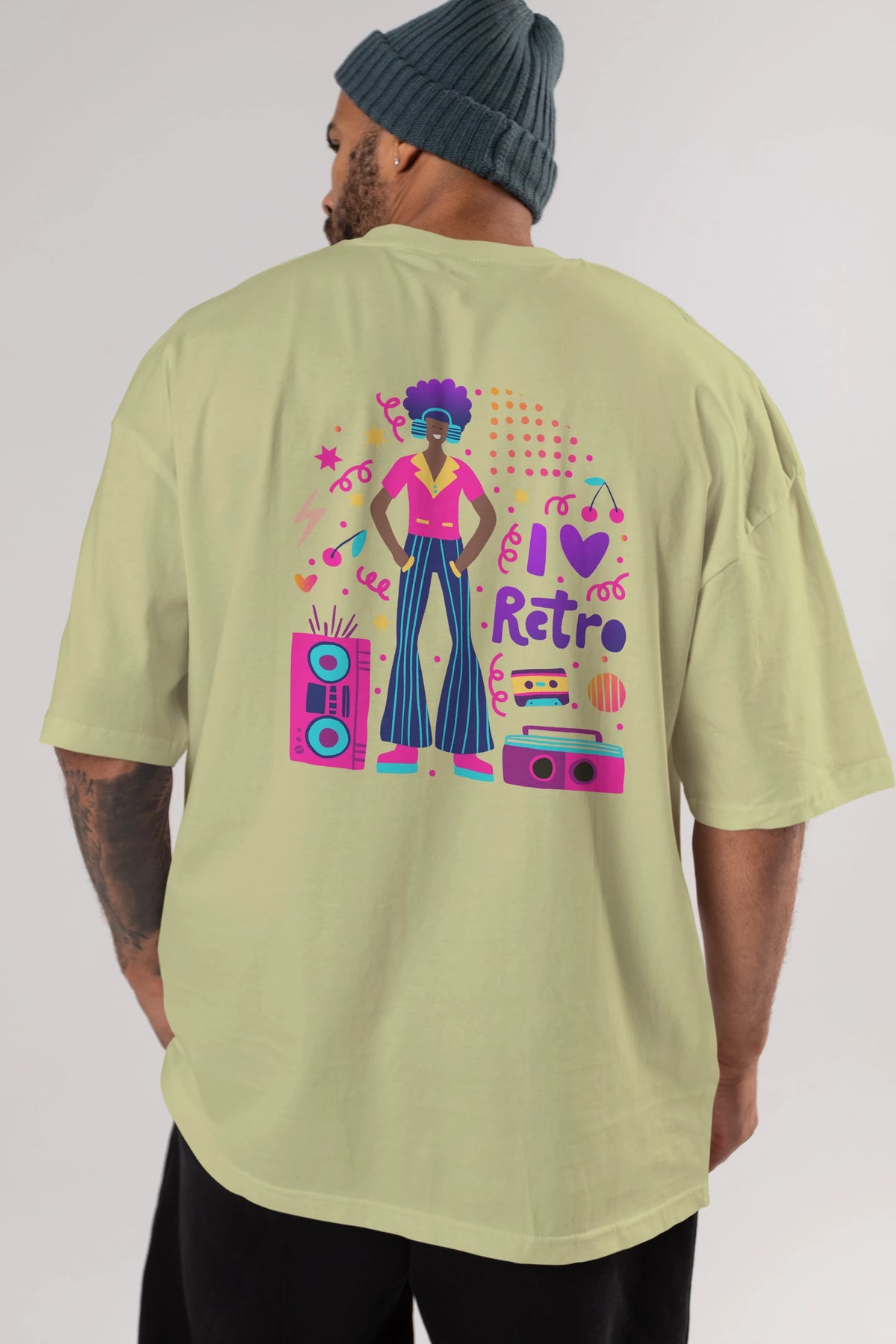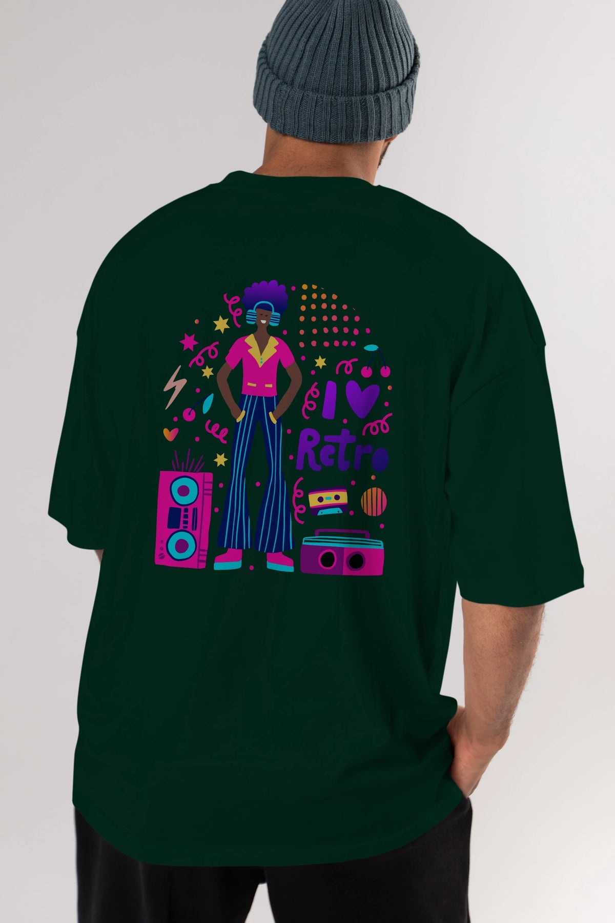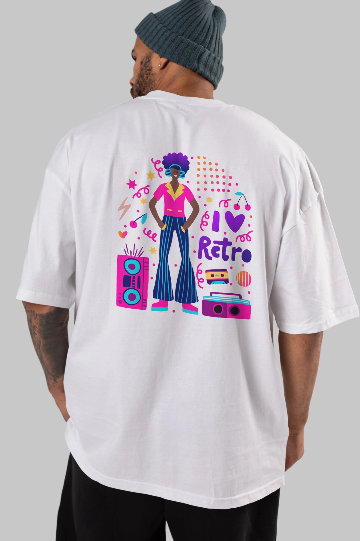 Retro Boy Party Arka Baskılı Oversize t-shirt Erkek Kadın Unisex