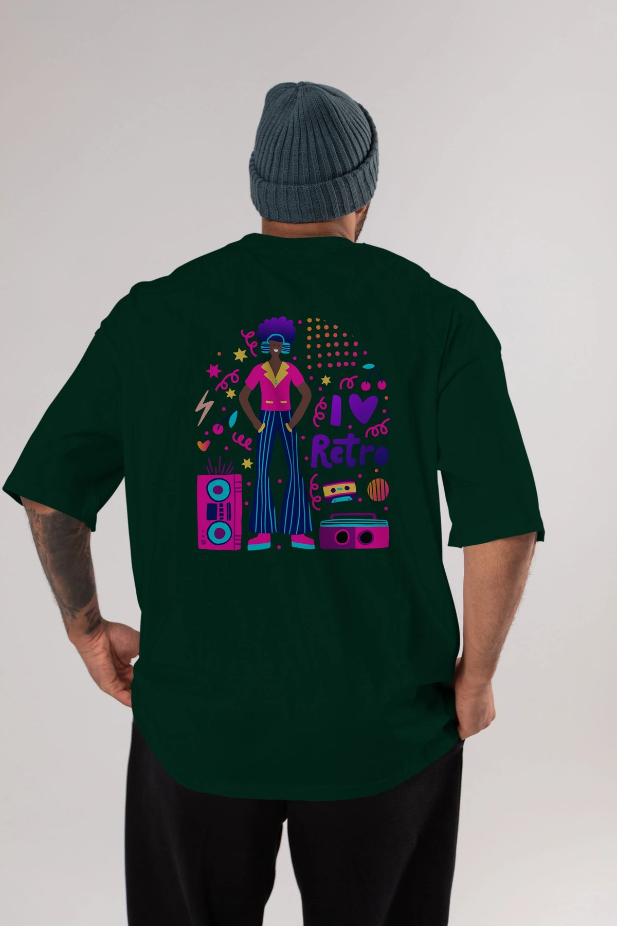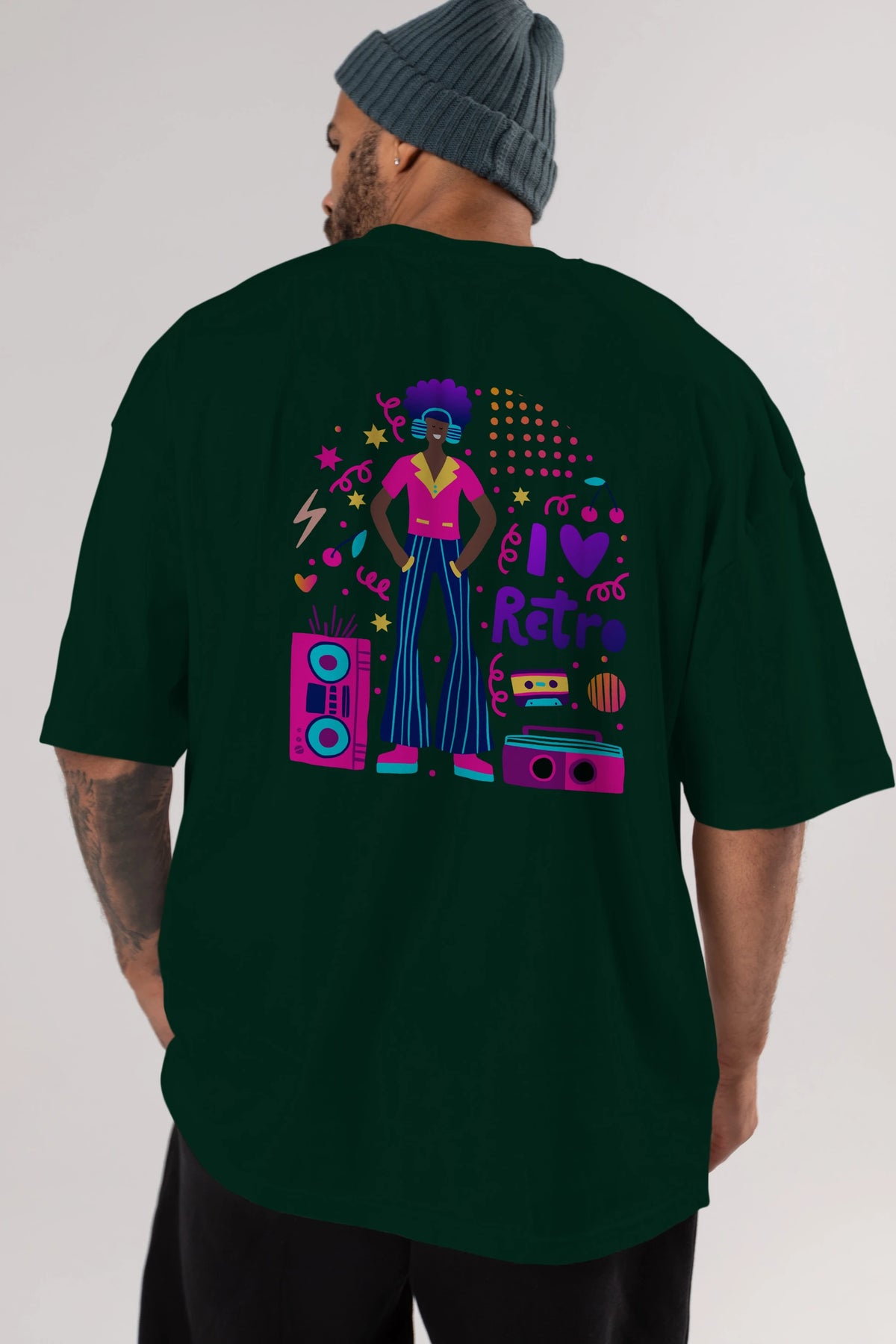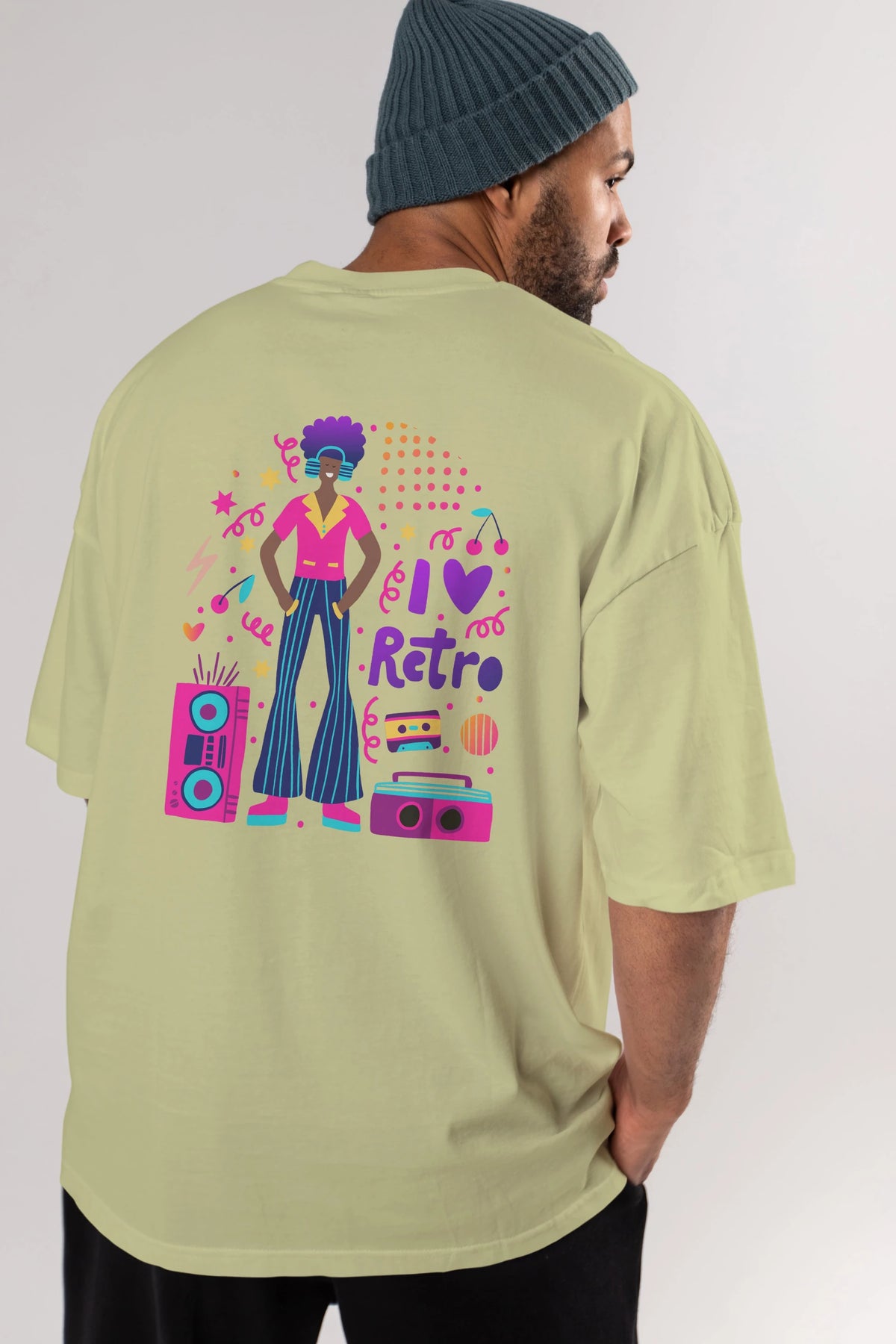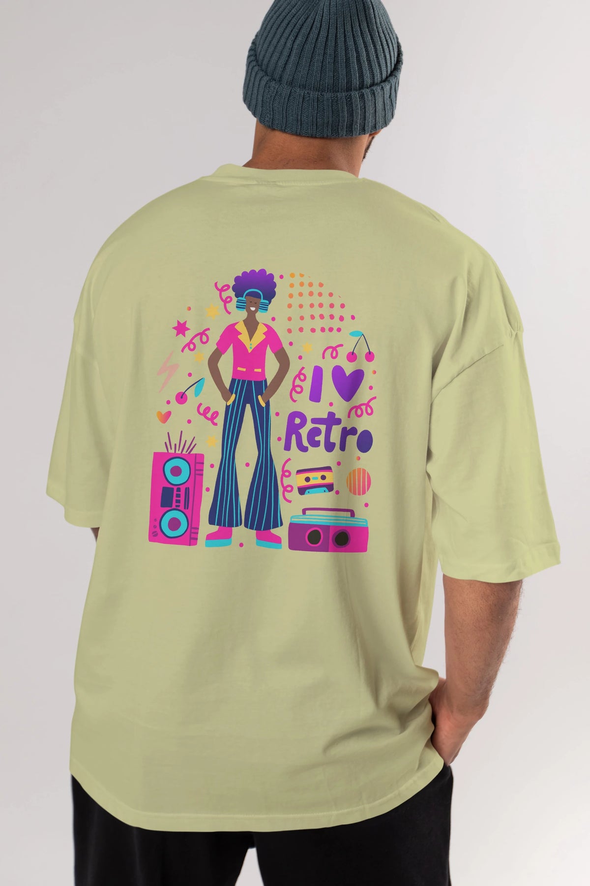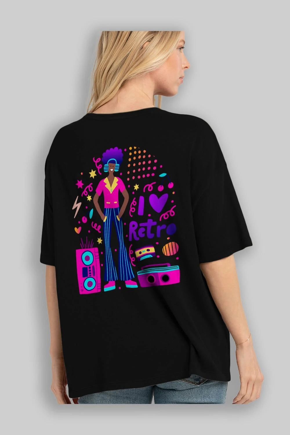 Retro Boy Party Arka Baskılı Oversize t-shirt Erkek Kadın Unisex
