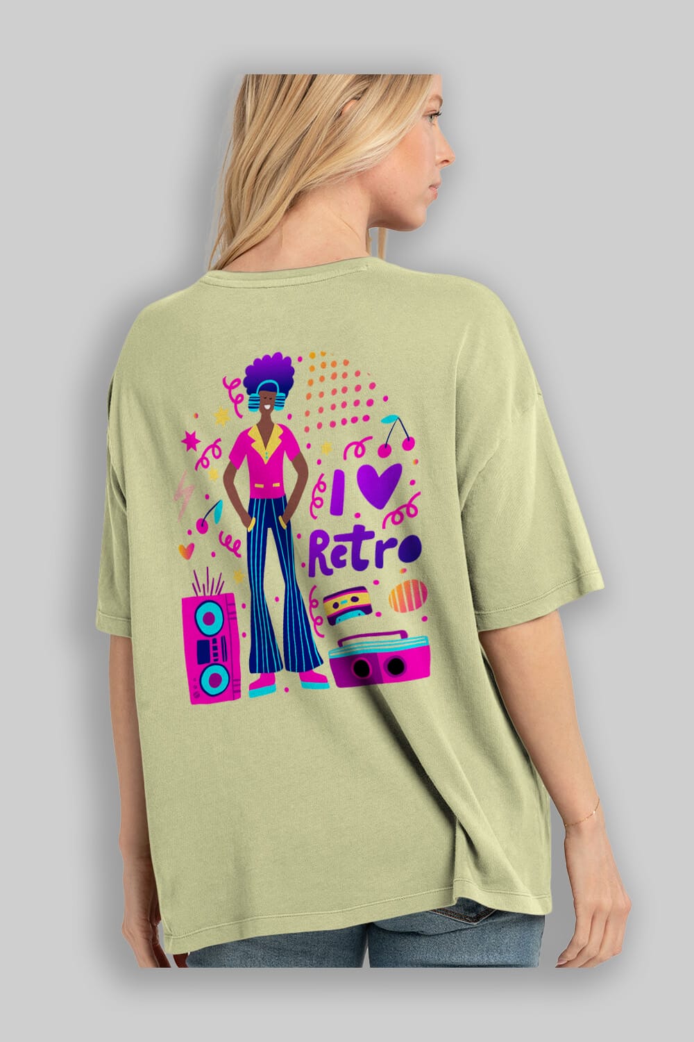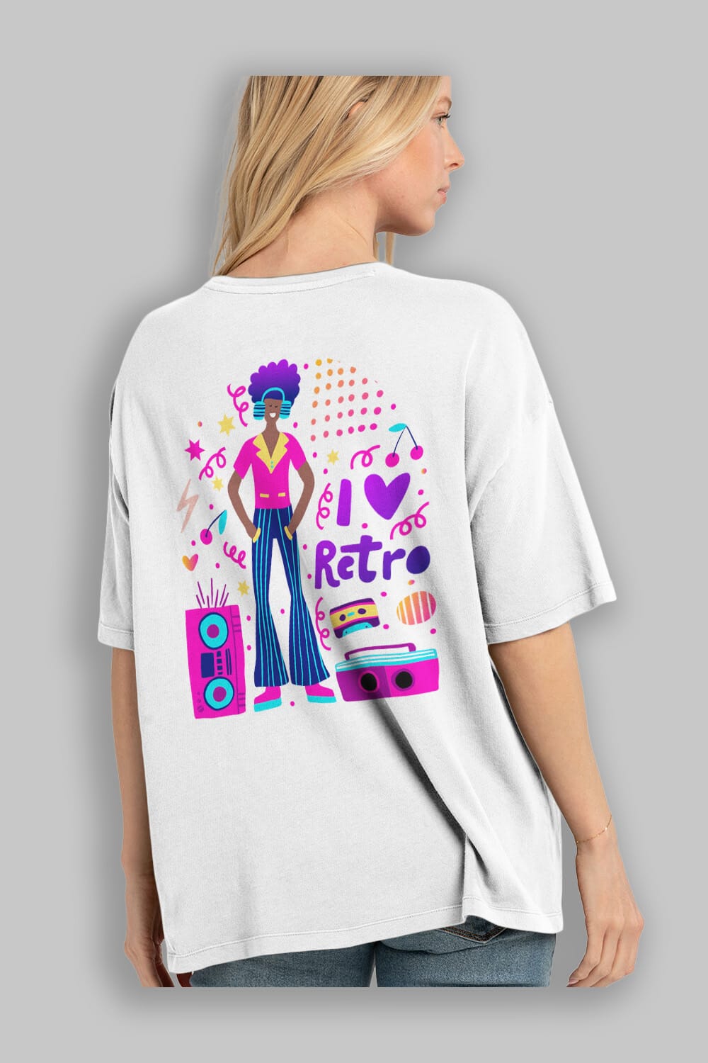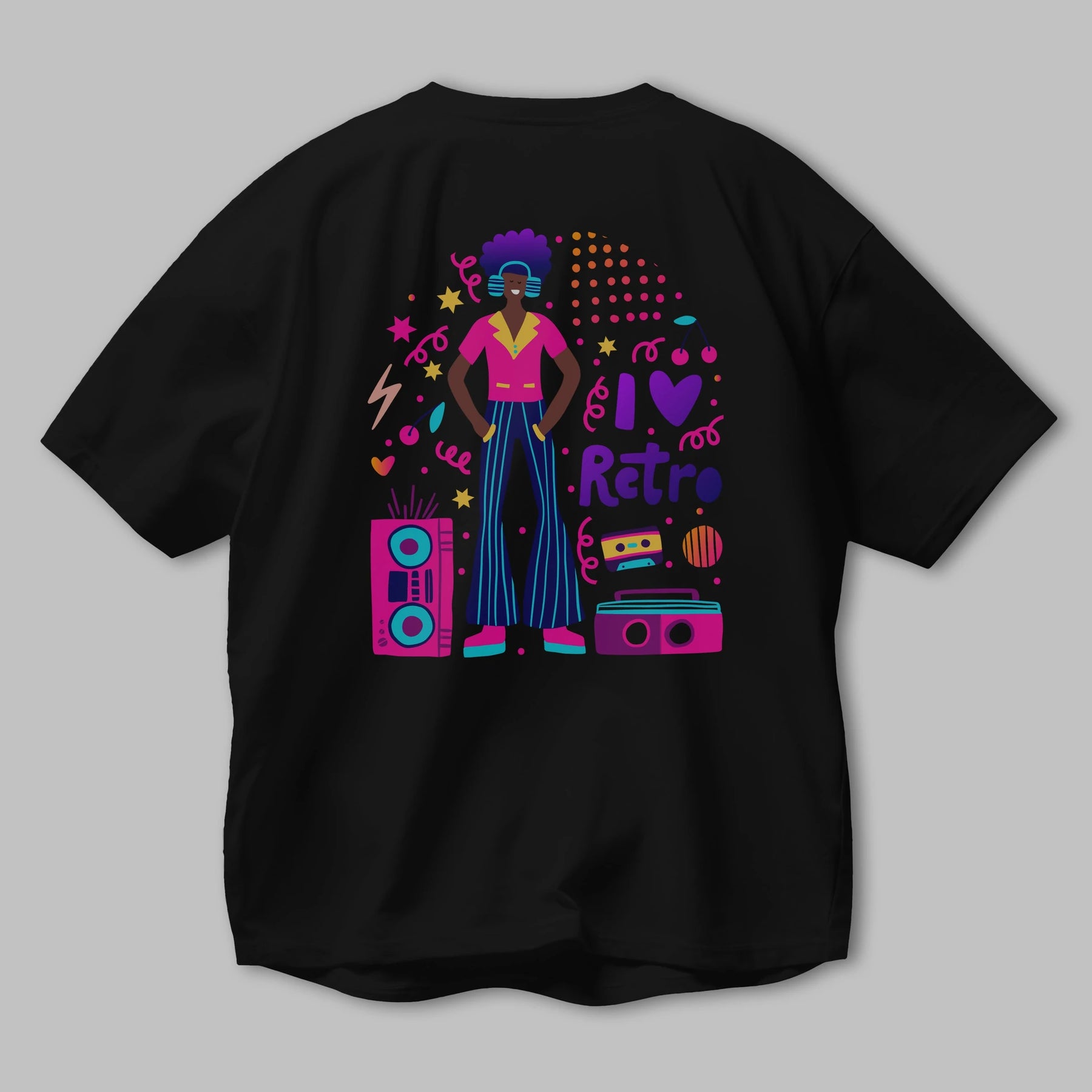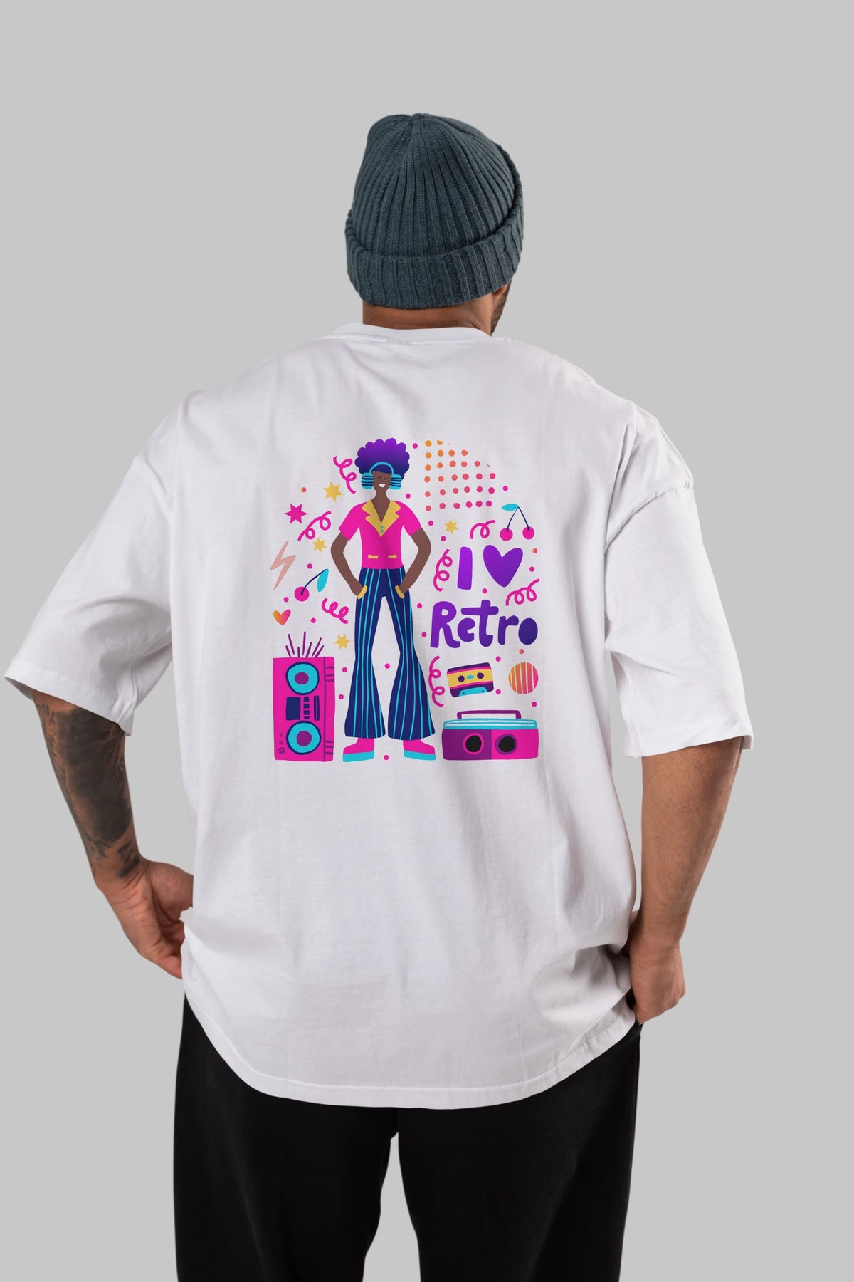 Retro Boy Party Arka Baskılı Oversize t-shirt Erkek Kadın Unisex