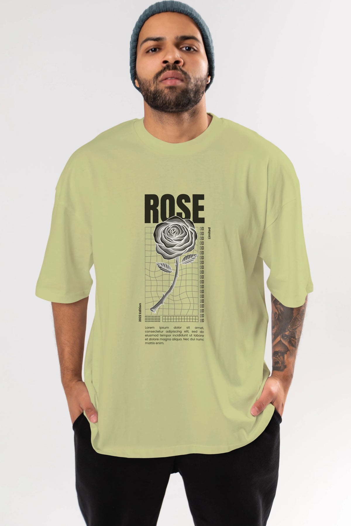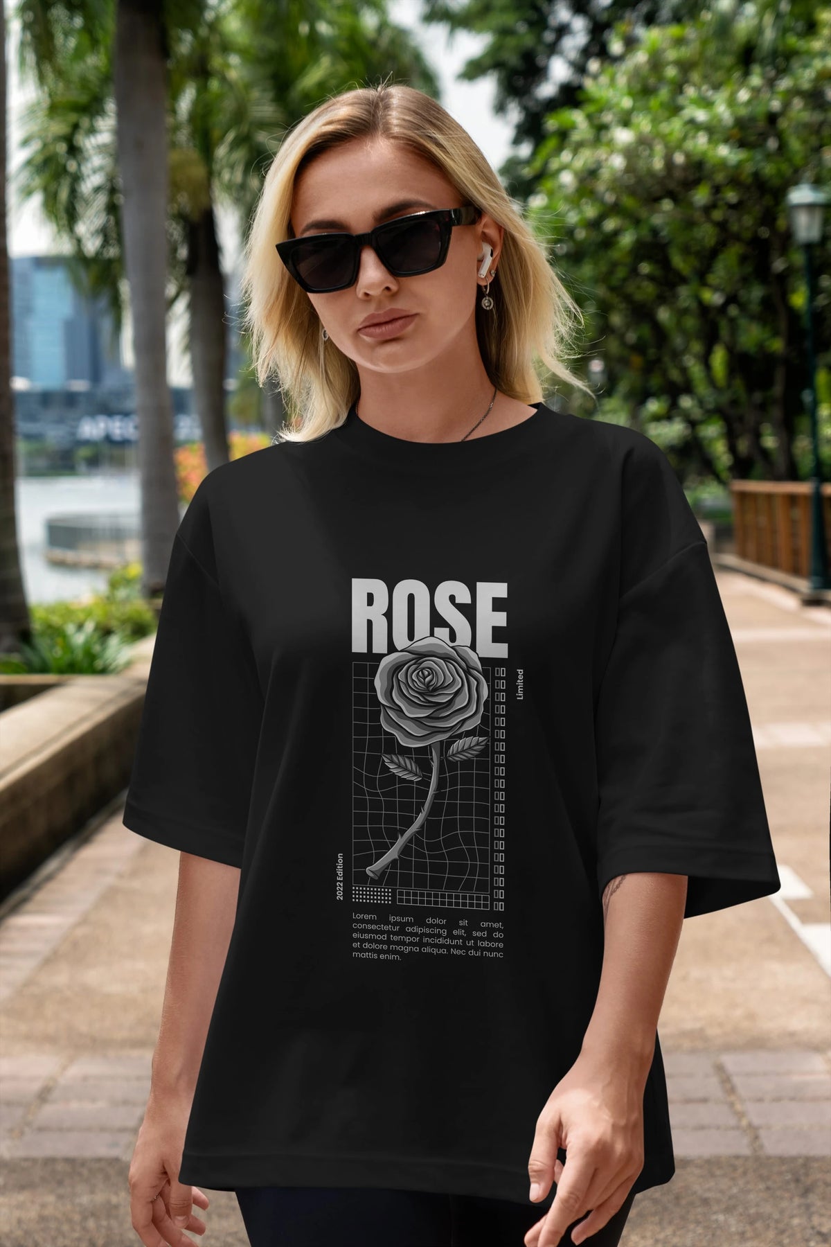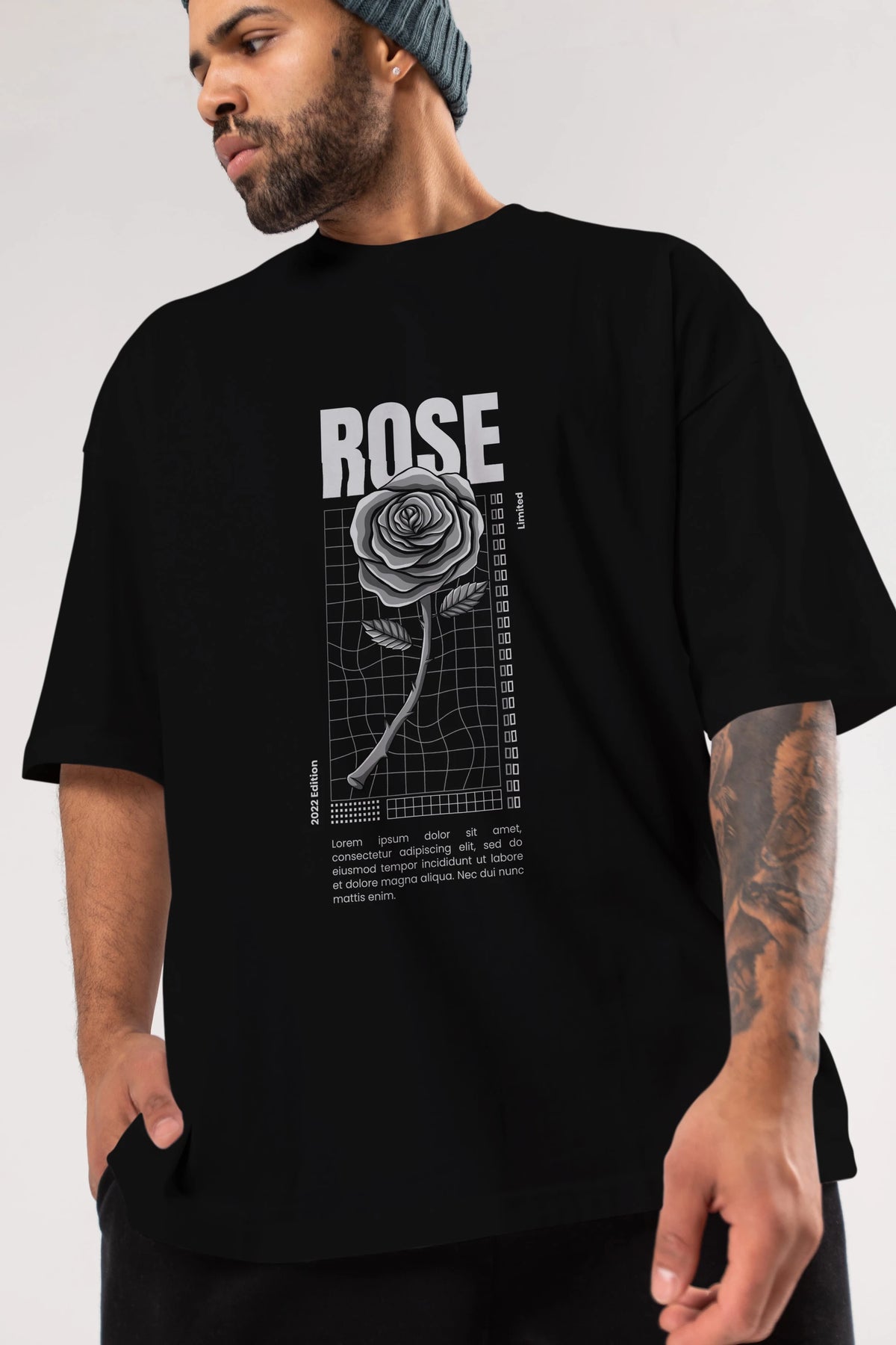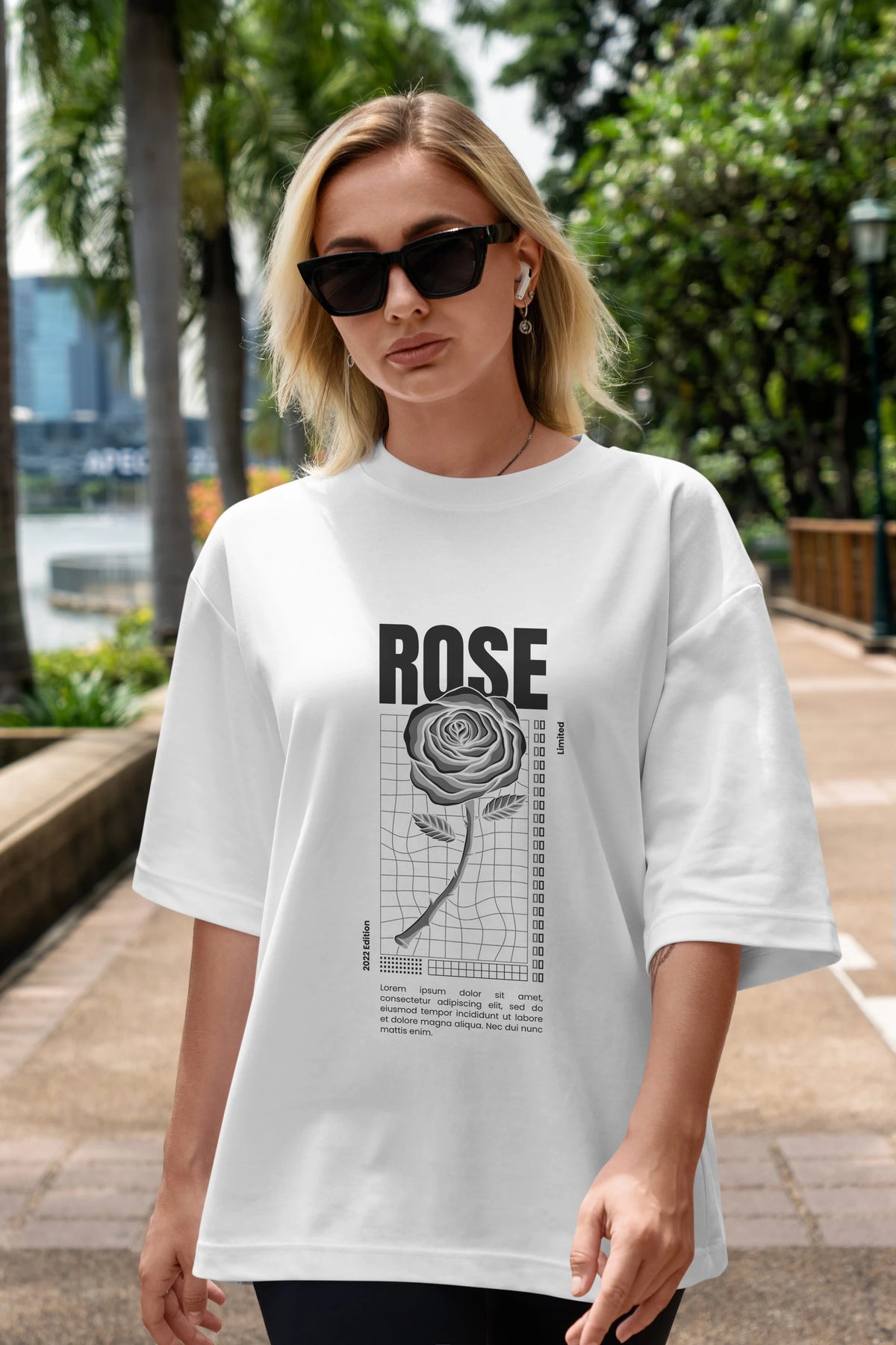 Rose Streetwear Ön Baskılı Oversize t-shirt Erkek Kadın Unisex